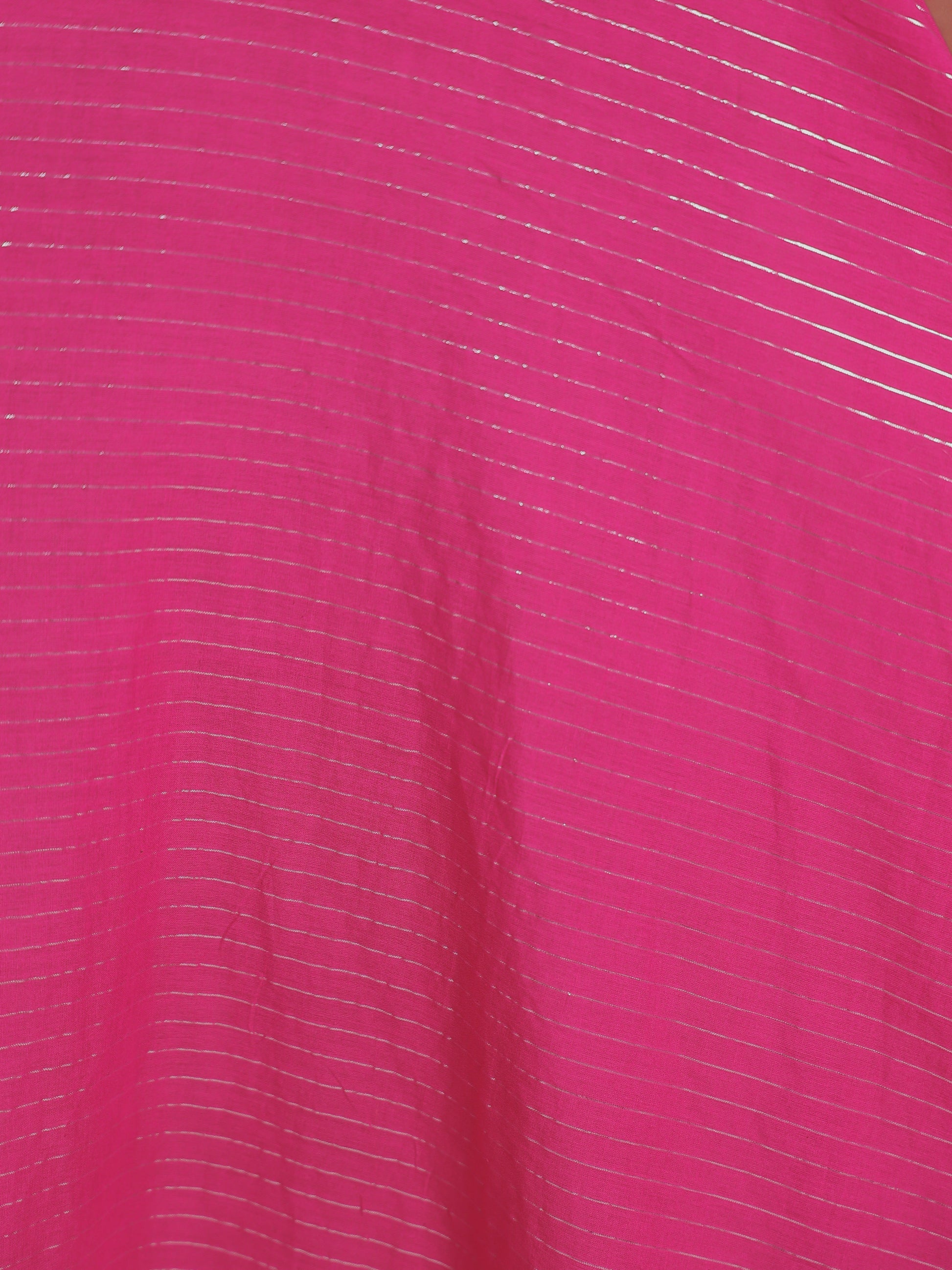This Pink dress crafted from soft Lurex Cotton is designed for comfort and versatility. The Flared cut and Solid patterns add a playful vibe, while work accents make it unique. Perfect for holidays, shopping trips, or relaxed evenings. Style with a sling bag and chic sandals. Care is effortless with simple instructions.