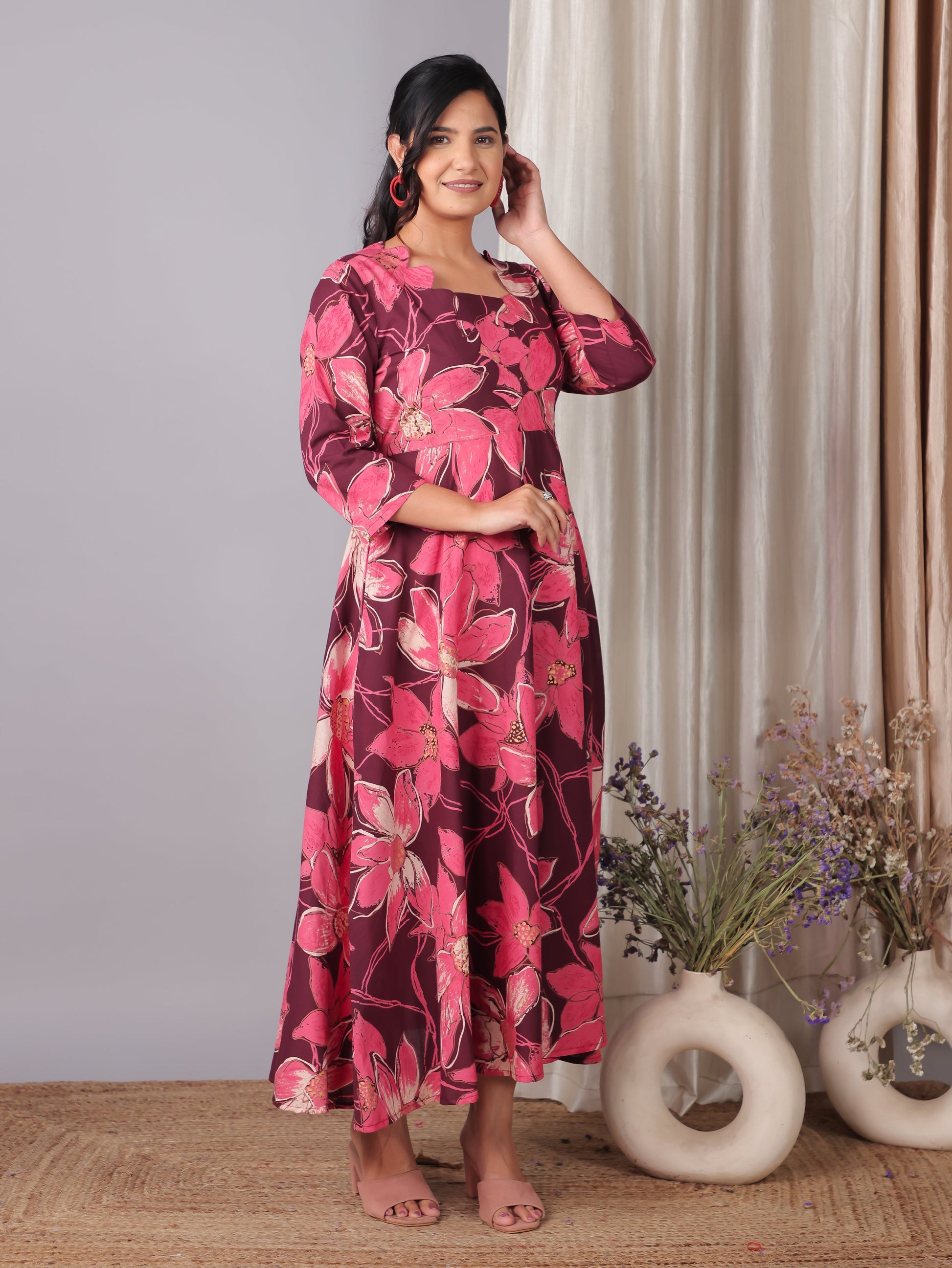 This Purple Flared dress in Soft Cotton is perfect for effortless daily wear. The Floral pattern and delicate work bring a modern yet artisanal touch. Lightweight and breathable, it’s ideal for warm days or casual outings. Pair with sandals or sneakers for a relaxed vibe. Easy to care for ensures hassle-free upkeep.