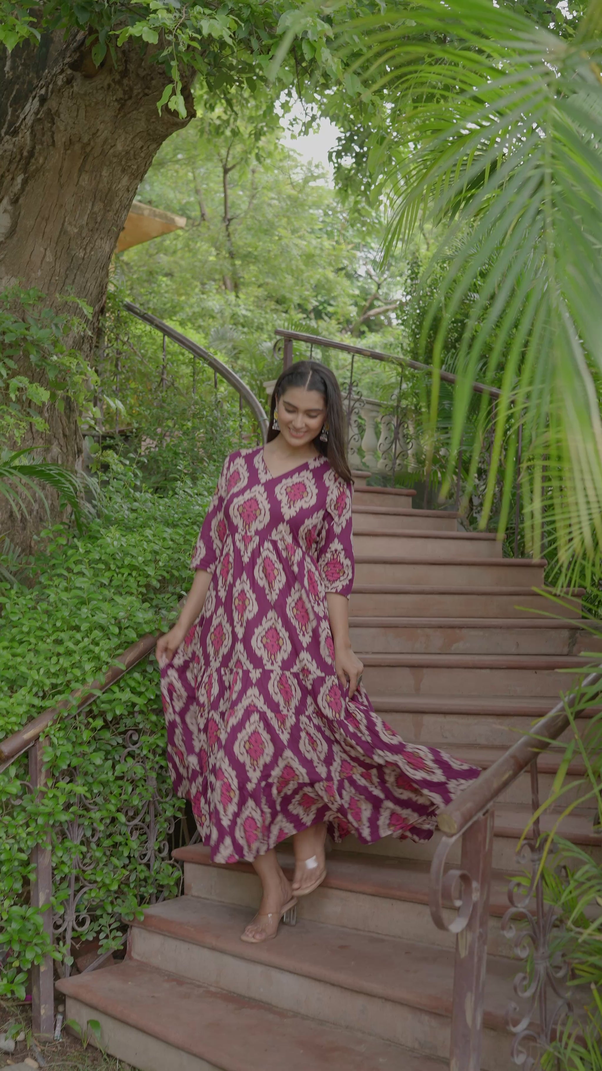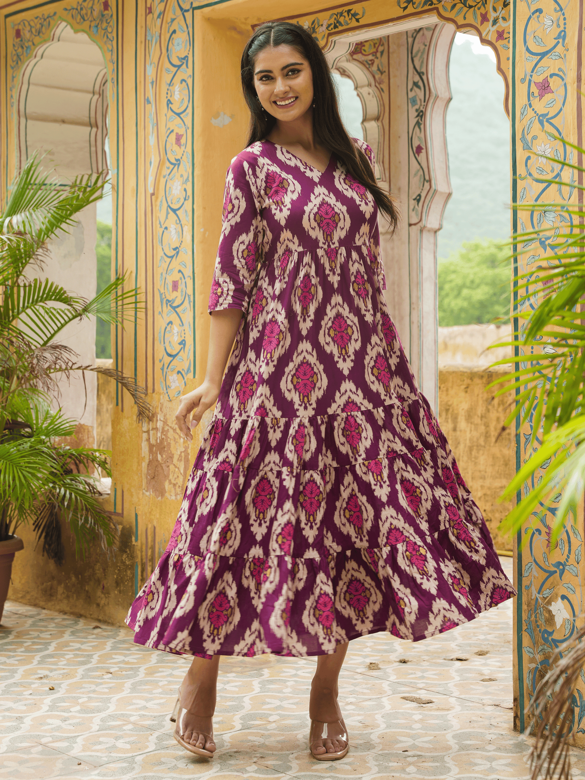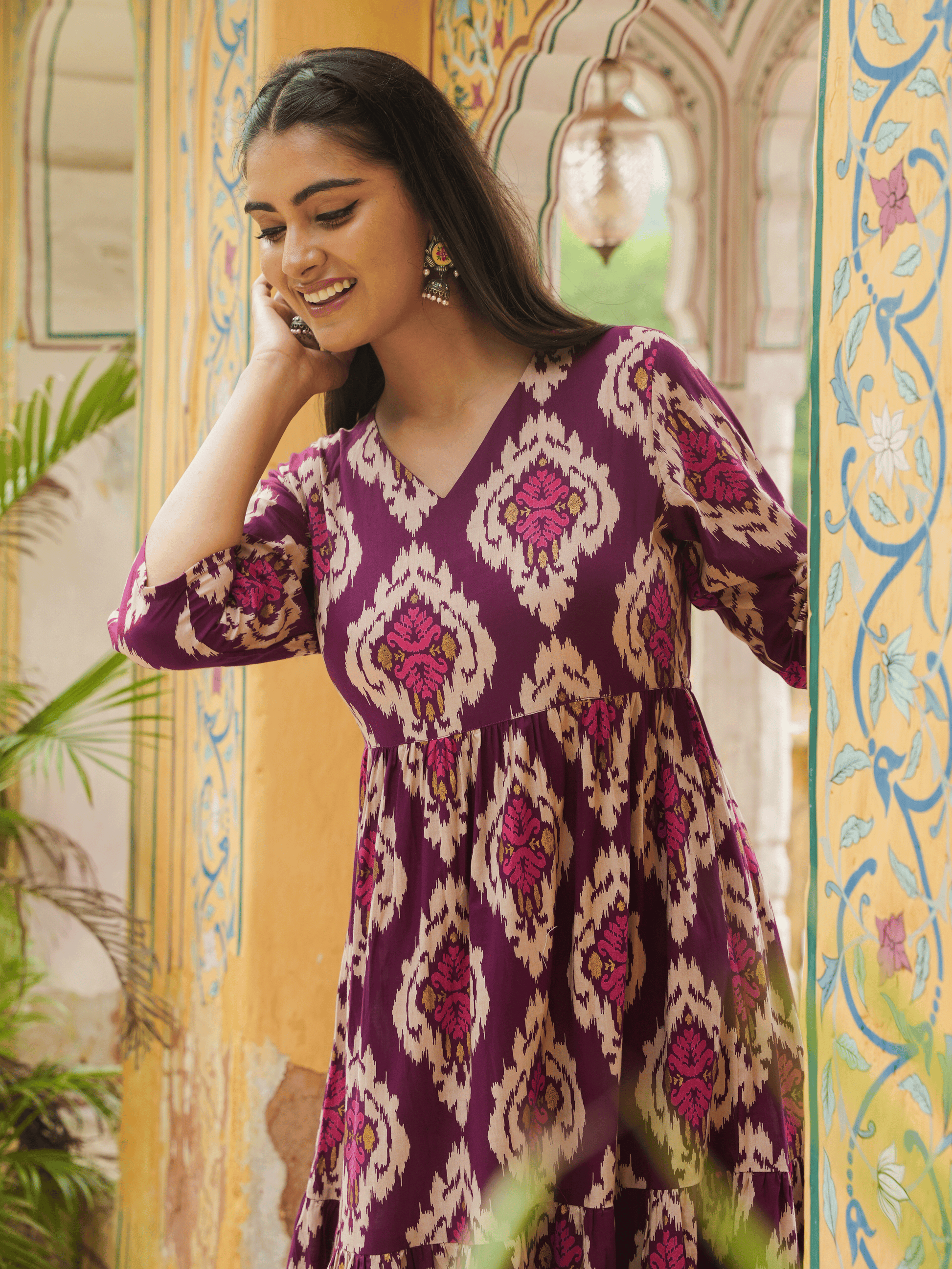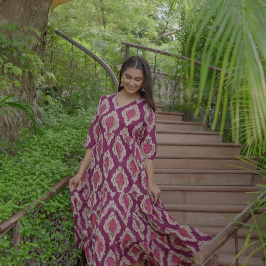 Soft Cotton Ikat Flared Purple Dress