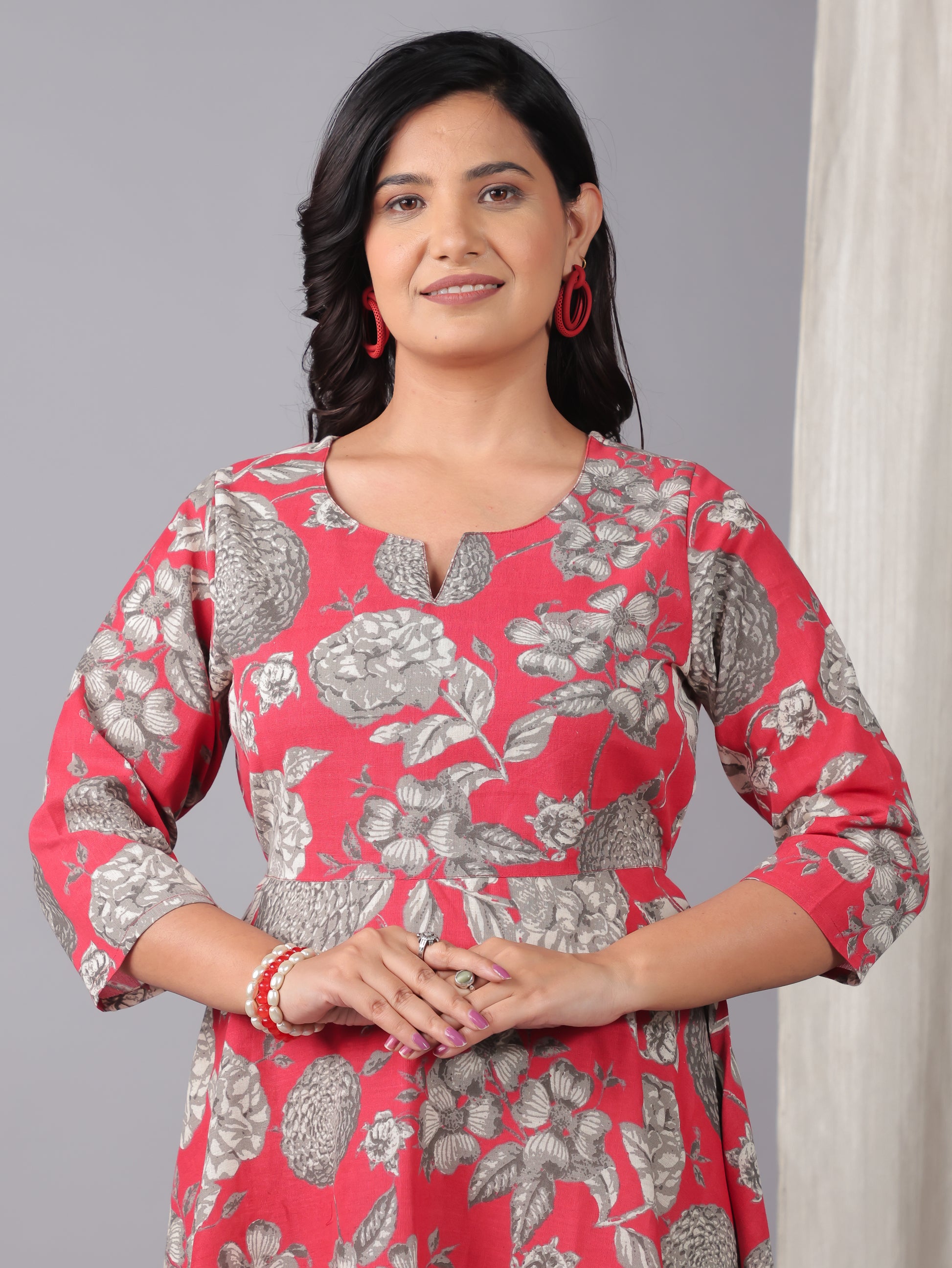 This Red Anarkali dress in Linen Cotton is perfect for effortless daily wear. The Floral pattern and delicate work bring a modern yet artisanal touch. Lightweight and breathable, it’s ideal for warm days or casual outings. Pair with sandals or sneakers for a relaxed vibe. Easy to care for ensures hassle-free upkeep.