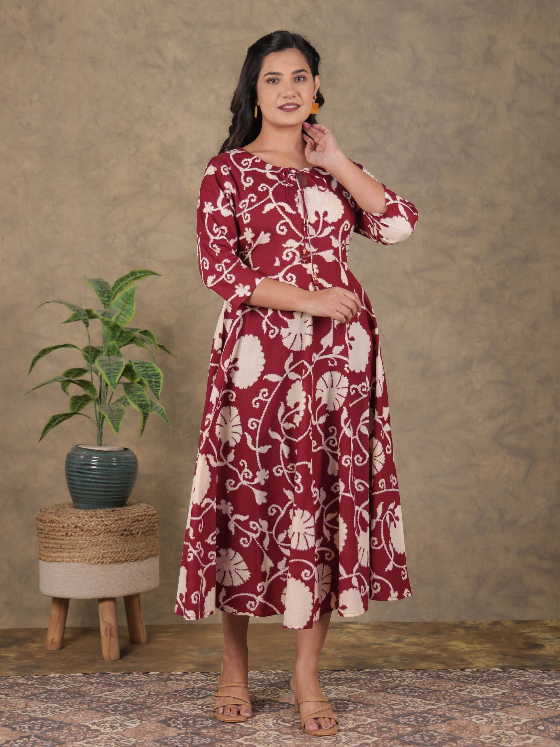 This Rust Flared dress in Soft Cotton is perfect for effortless daily wear. The Floral pattern and delicate work bring a modern yet artisanal touch. Lightweight and breathable, it’s ideal for warm days or casual outings. Pair with sandals or sneakers for a relaxed vibe. Easy to care for ensures hassle-free upkeep.