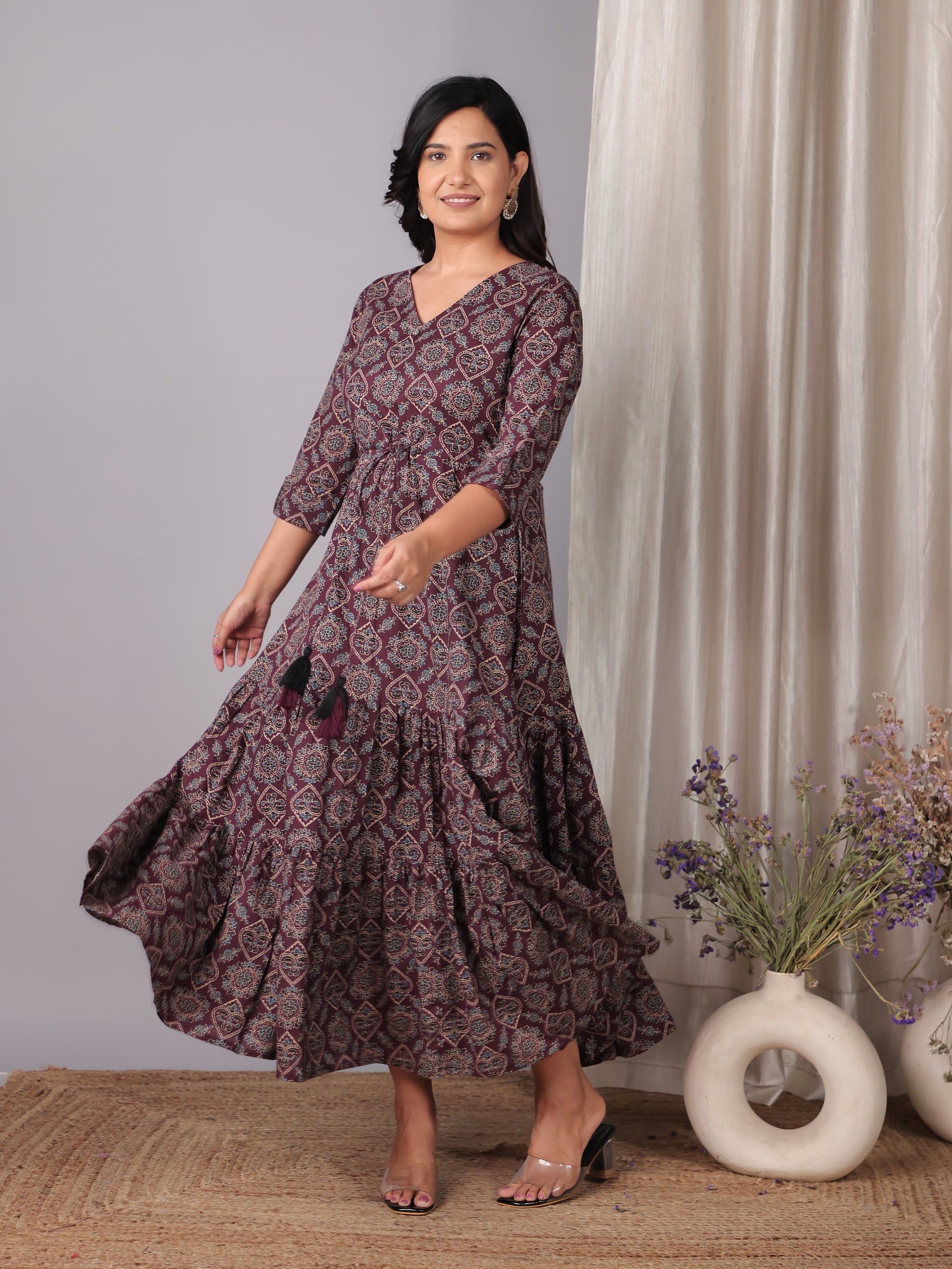 Designed for comfort and confidence, this Soft Cotton dress in Wine features a flattering A-line silhouette and unique Geometric accents. The work detailing adds sophistication, making it perfect for coffee dates, casual evenings, or weekend brunches. Accessorise with minimal jewellery and flats for a polished finish.