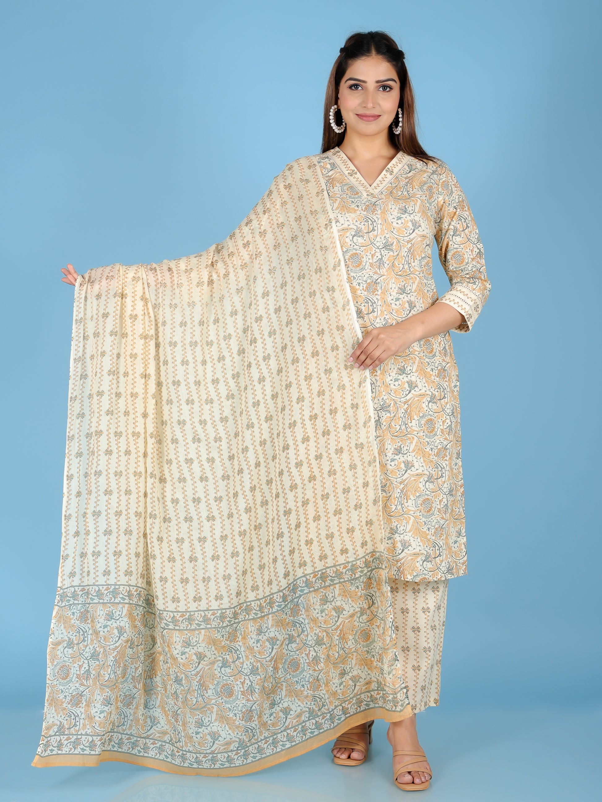 This Voile Cotton dupatta in Beige is a versatile accessory for any wardrobe. Designed with a subtle Floral motif, it adds sophistication to both casual and festive outfits. Its soft, flowy texture ensures comfort, while the vibrant colour brightens any ensemble. Wrap it around your shoulders or drape elegantly for a timeless ethnic appeal.