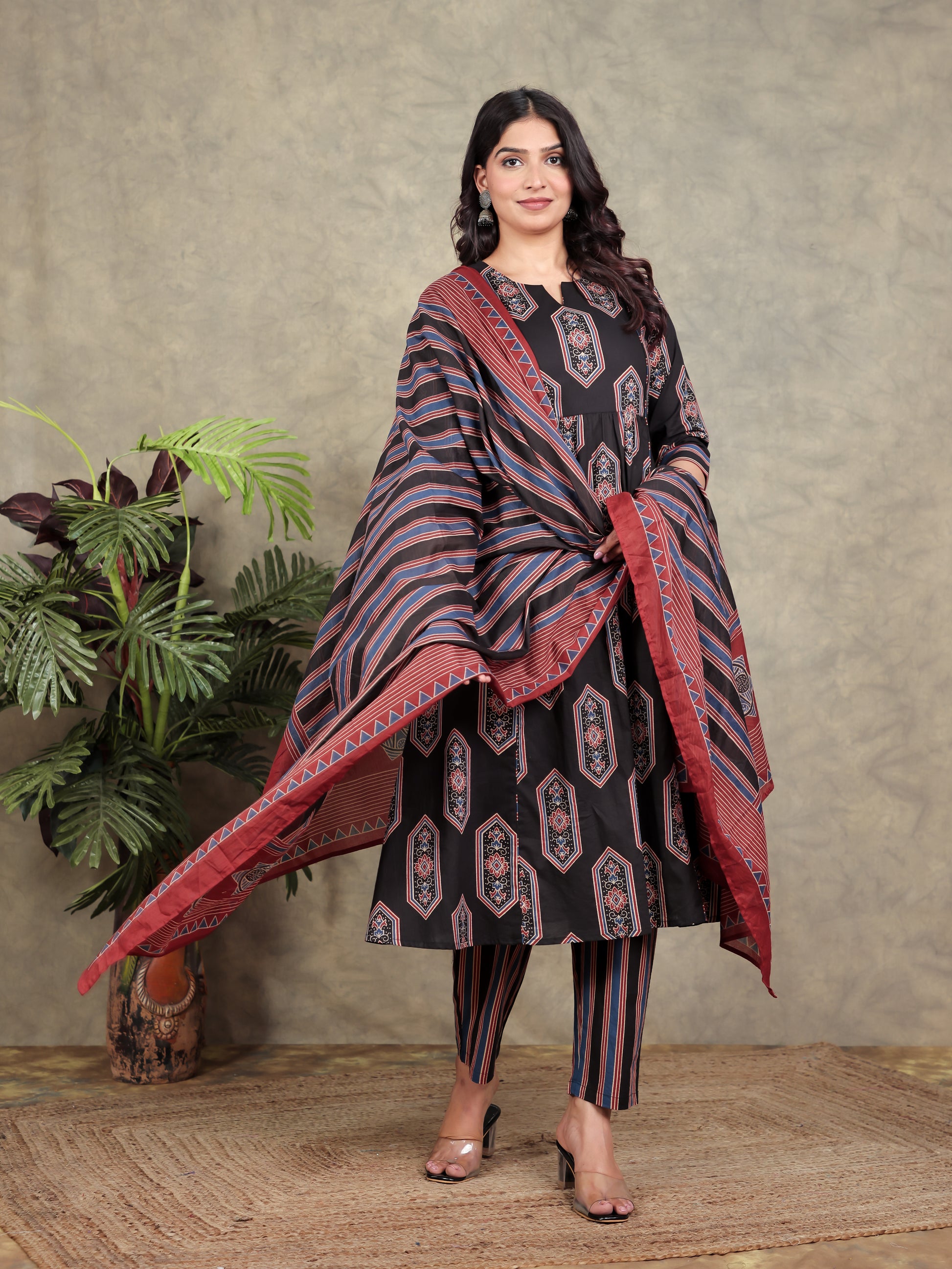 This Soft Cotton dupatta in Black brings a festive touch to any outfit. The intricate Striped patterns showcase artisanal craftsmanship, making it ideal for celebrations, weddings, or cultural events. Its soft, flowy design ensures comfort and an elegant drape. Style it with matching accessories for a sophisticated ethnic ensemble that stands out with timeless charm.