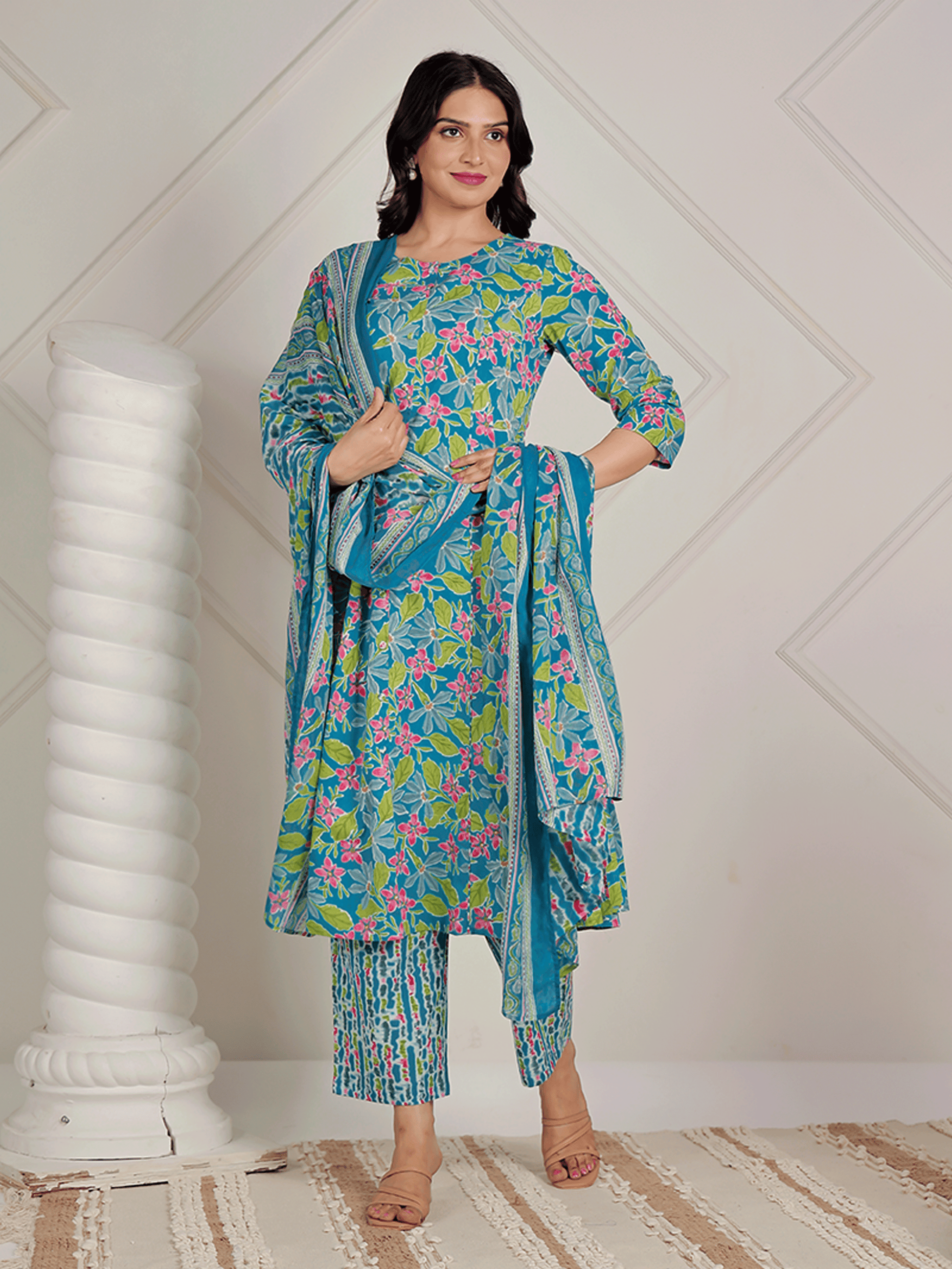 Cotton Voile Abstract Blue Dupatta