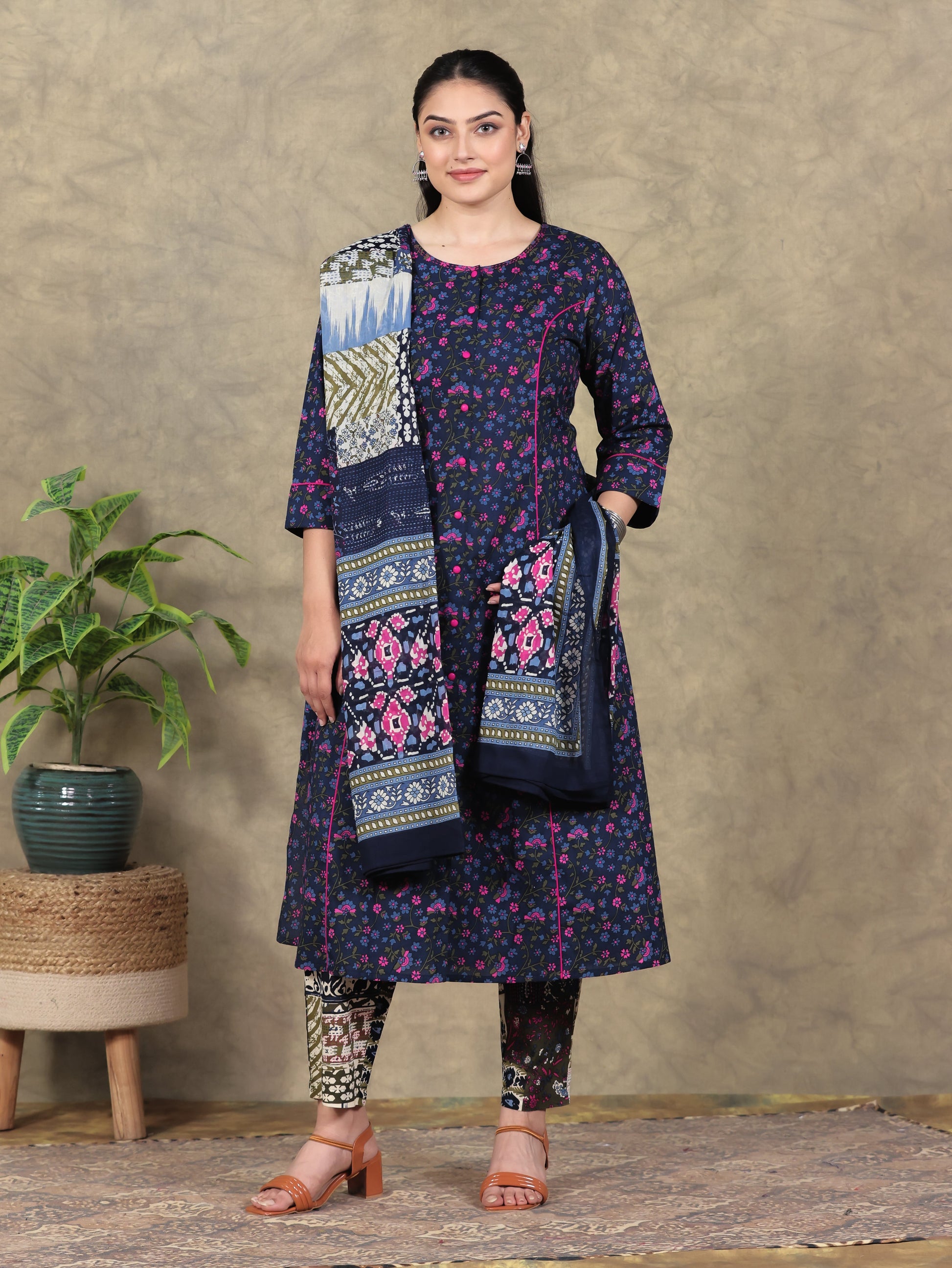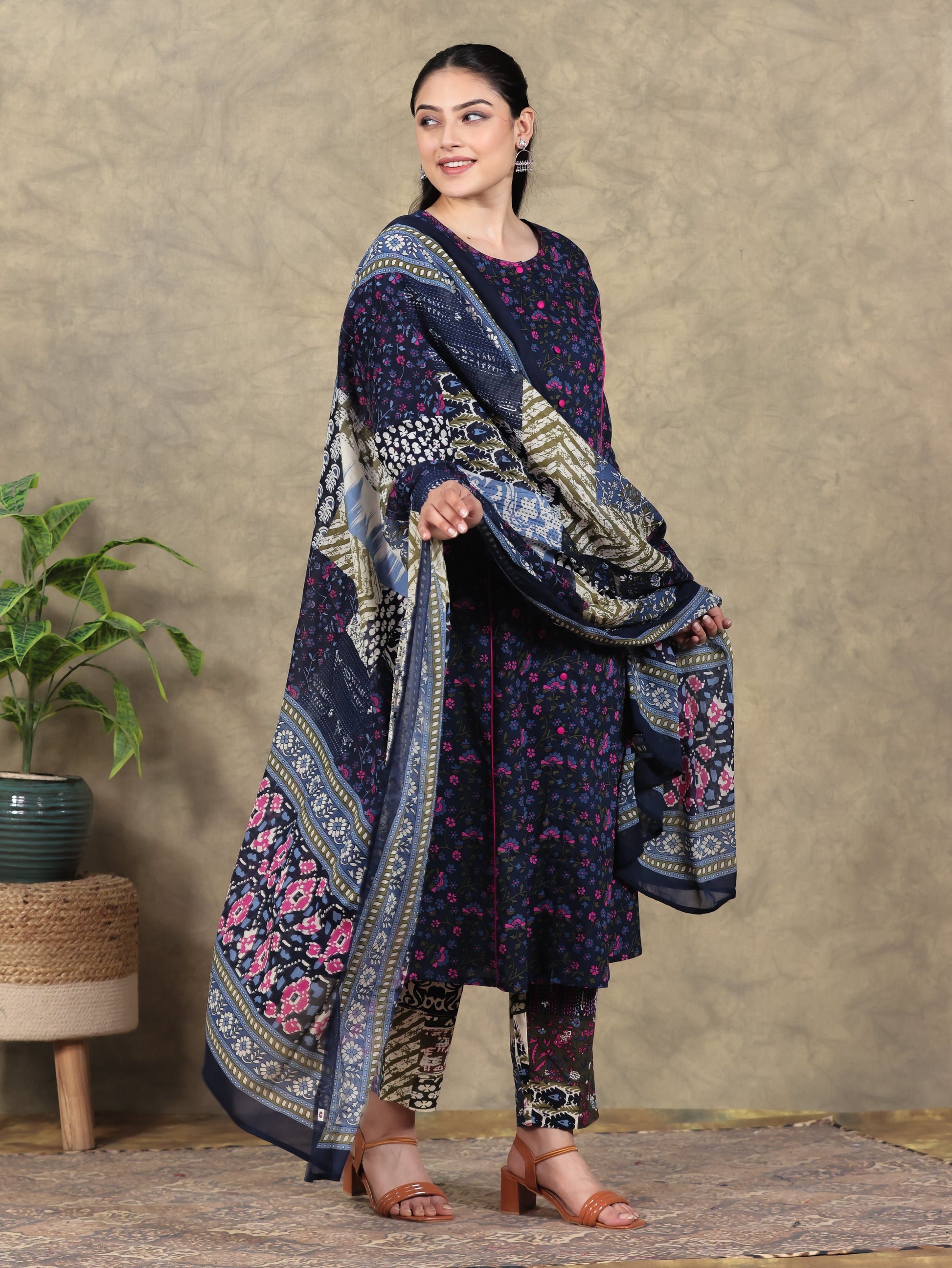 Cotton Voile Patchwork Blue Dupatta
