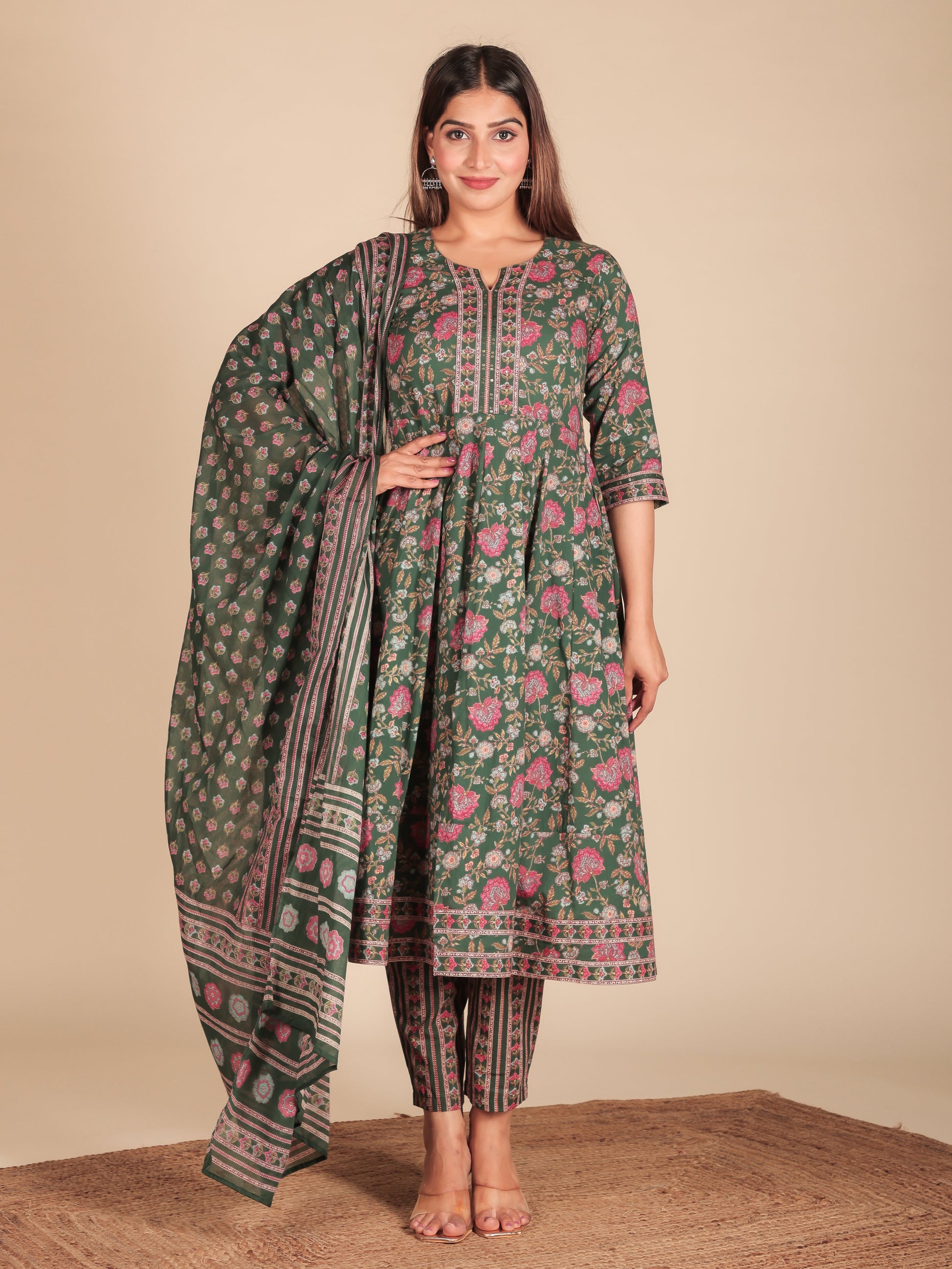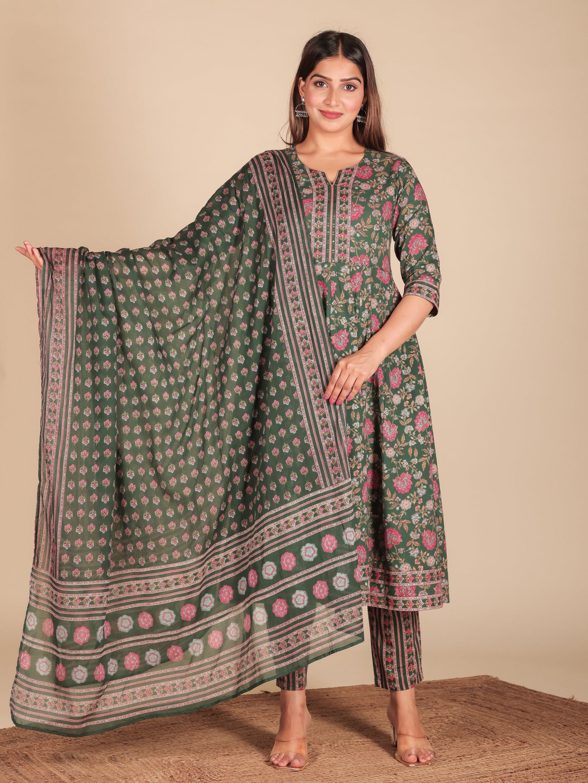 Cotton Voile Block Print Green Dupatta
