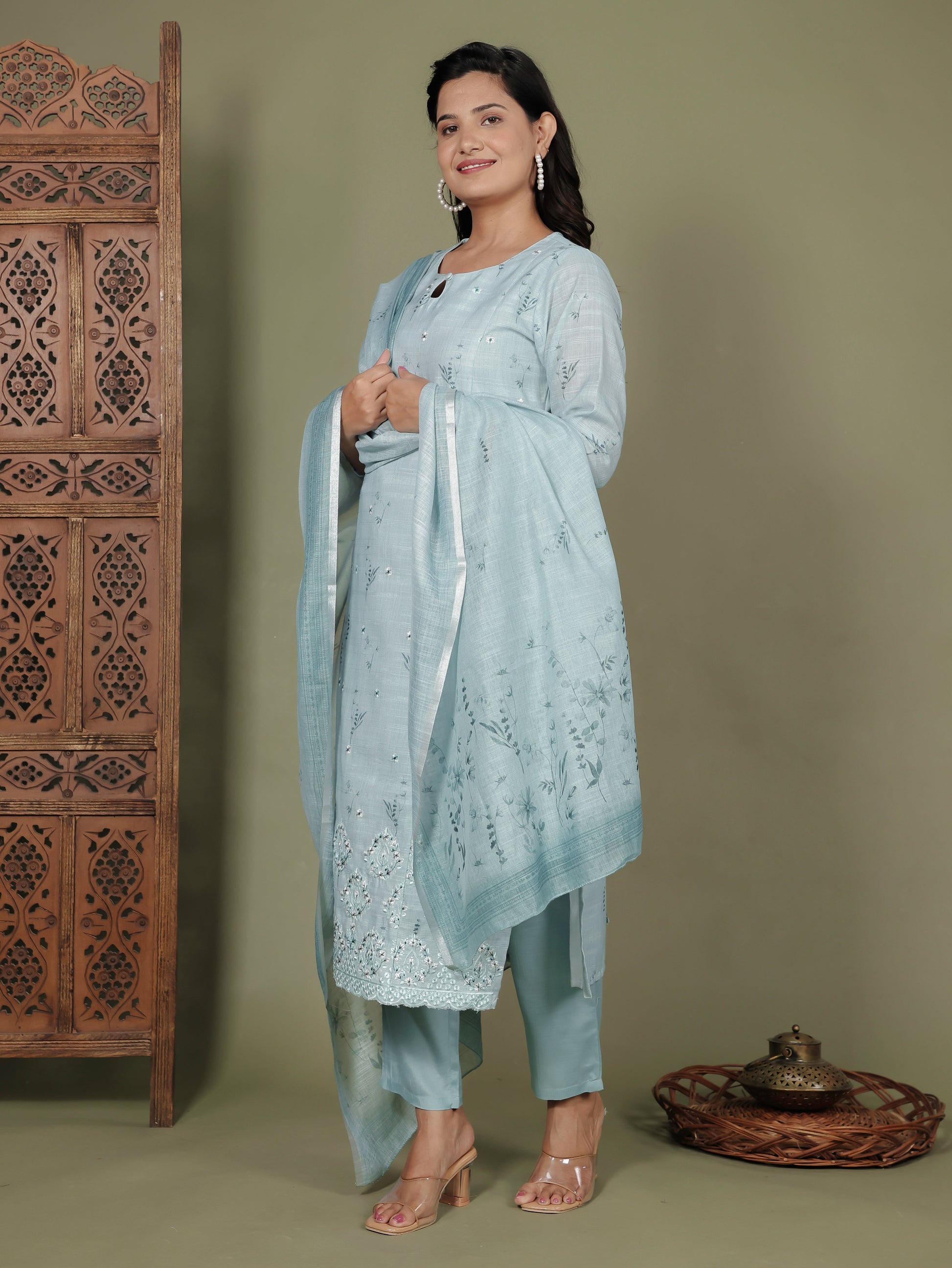 Elevate your ethnic look with this Green dupatta crafted from lightweight Chanderi. The intricate Floral design adds a traditional charm, making it perfect for festive occasions or everyday elegance. Pair it with kurtas, suits, or dresses for a polished touch. Its breathable fabric ensures all-day comfort while maintaining a graceful drape for effortless styling.
