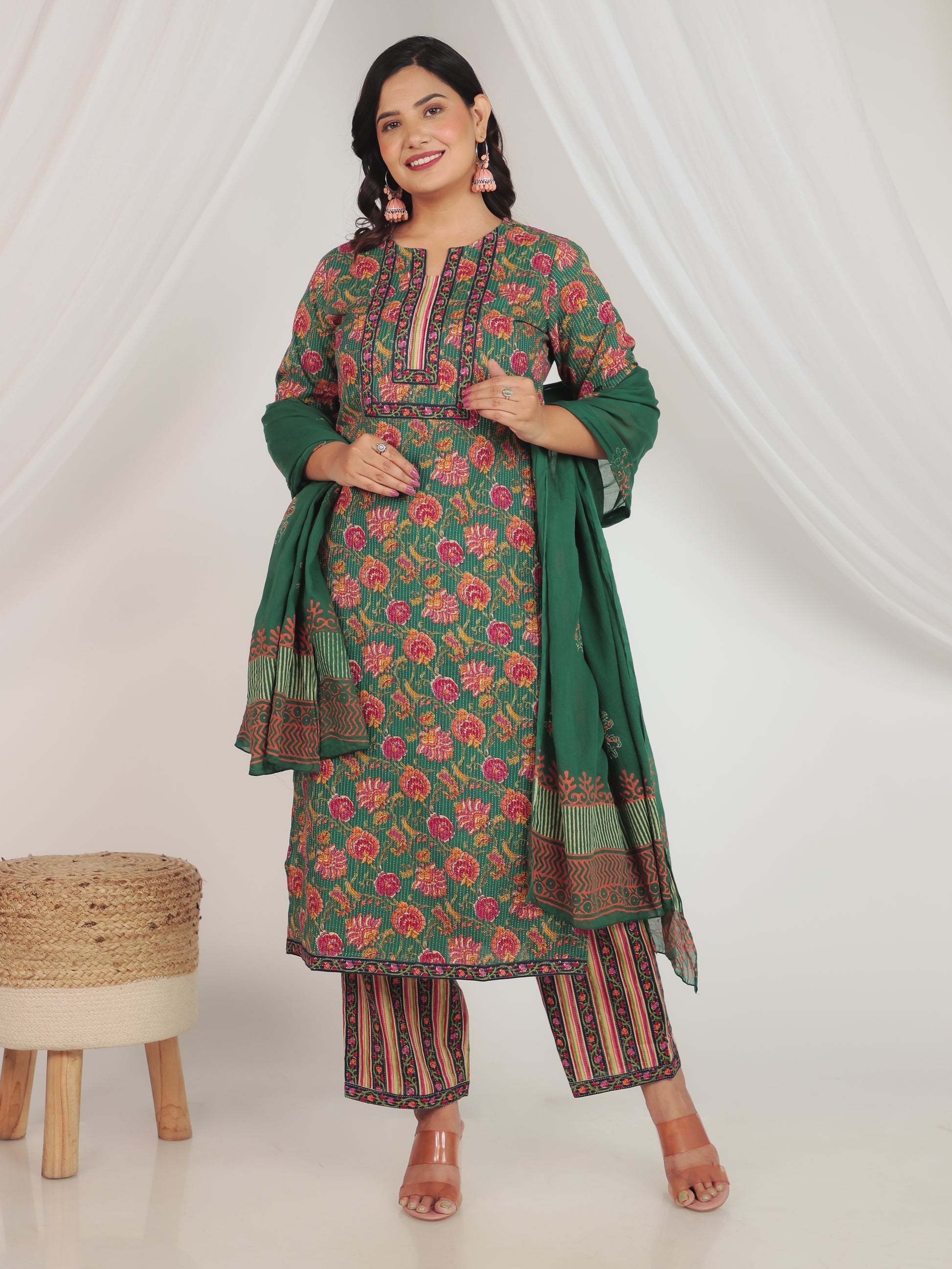 Add a pop of style to your collection with this Green dupatta made of breathable Cotton Voile. The Floral detailing offers a blend of traditional and modern flair, making it perfect for workwear, daily styling, or small gatherings. Lightweight and easy to carry, it pairs beautifully with kurtas and tunics, ensuring effortless grace every day.