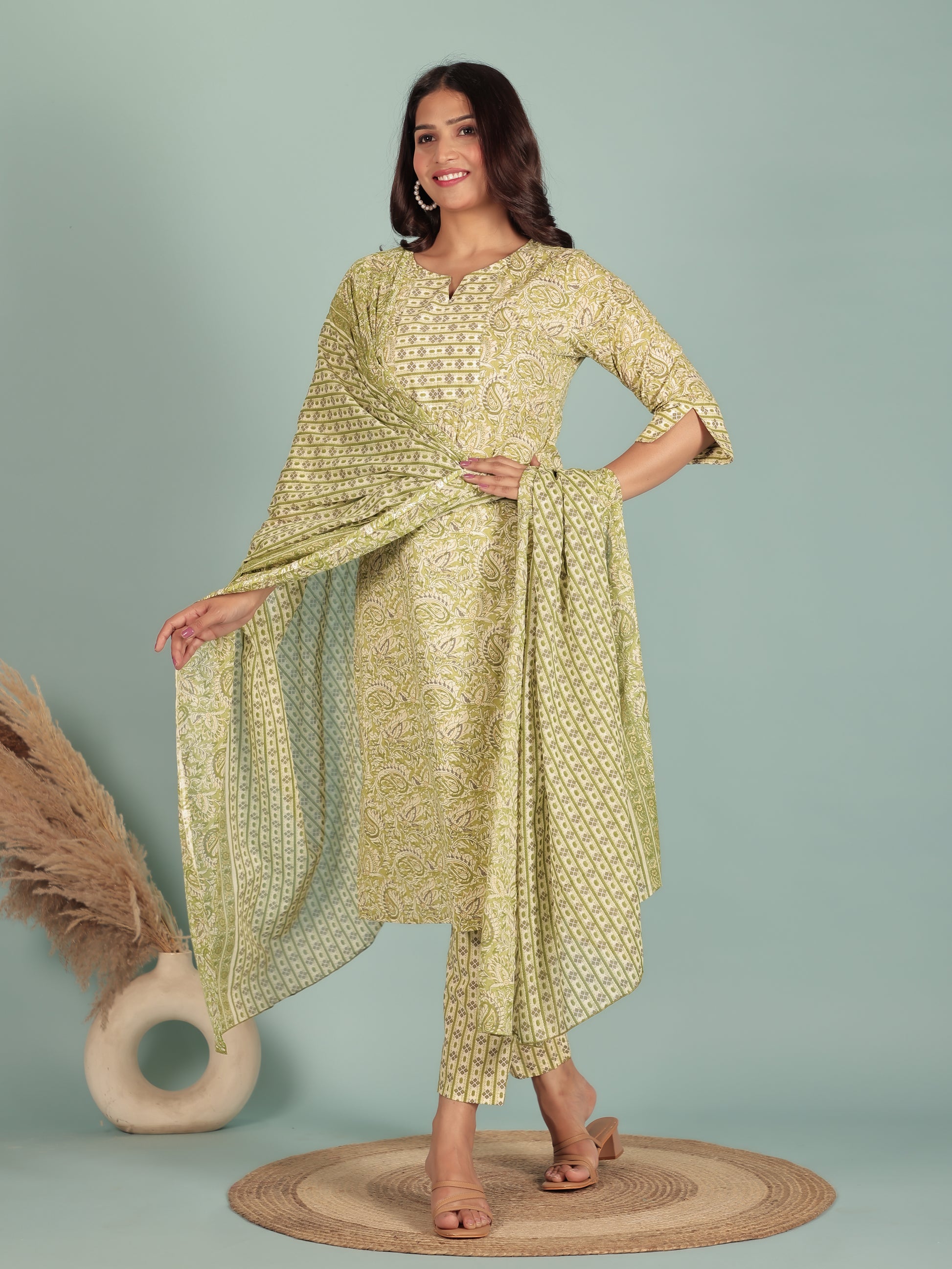 Add a pop of style to your collection with this Green dupatta made of breathable Cotton Voile. The Paisley detailing offers a blend of traditional and modern flair, making it perfect for workwear, daily styling, or small gatherings. Lightweight and easy to carry, it pairs beautifully with kurtas and tunics, ensuring effortless grace every day.