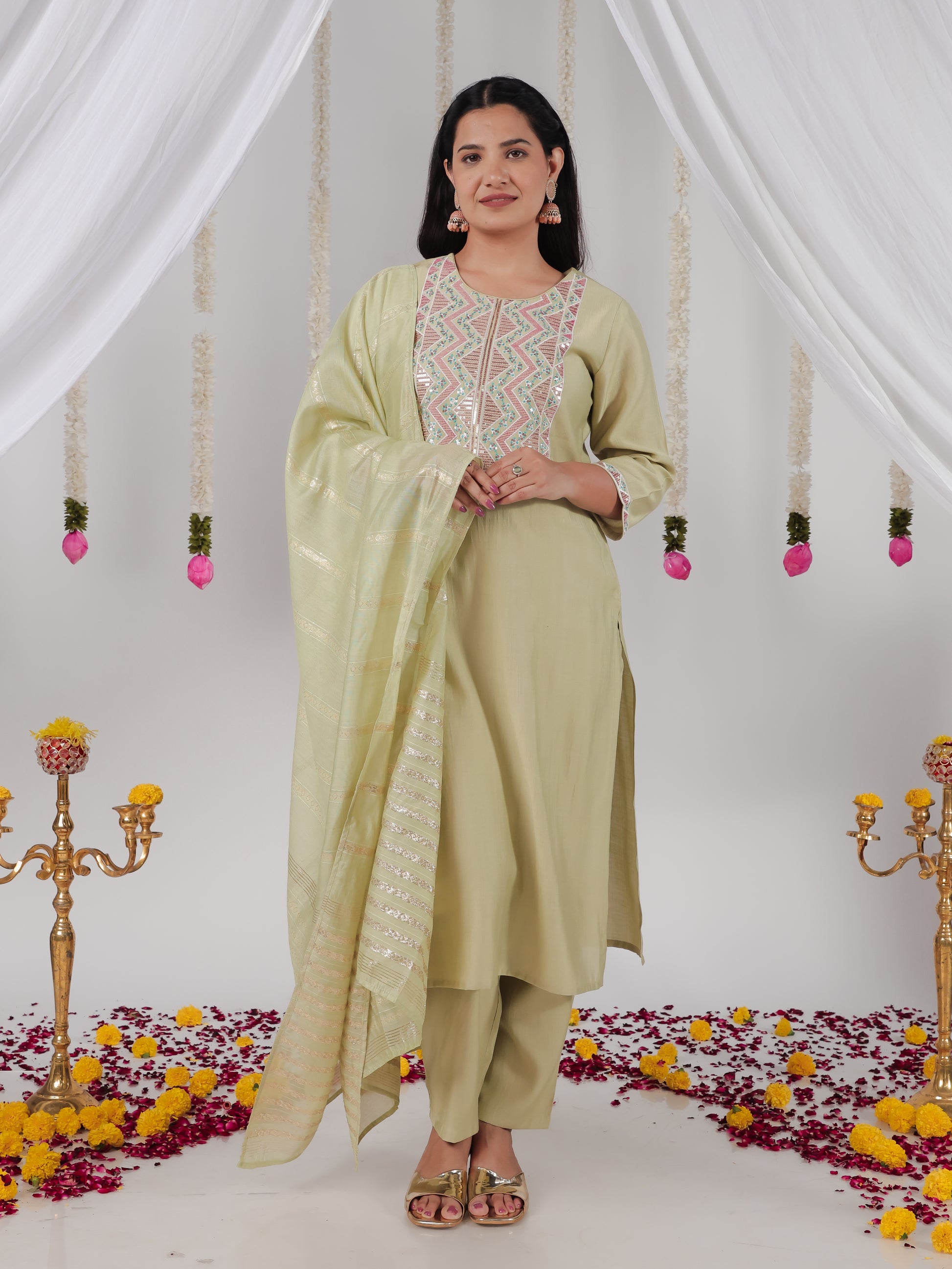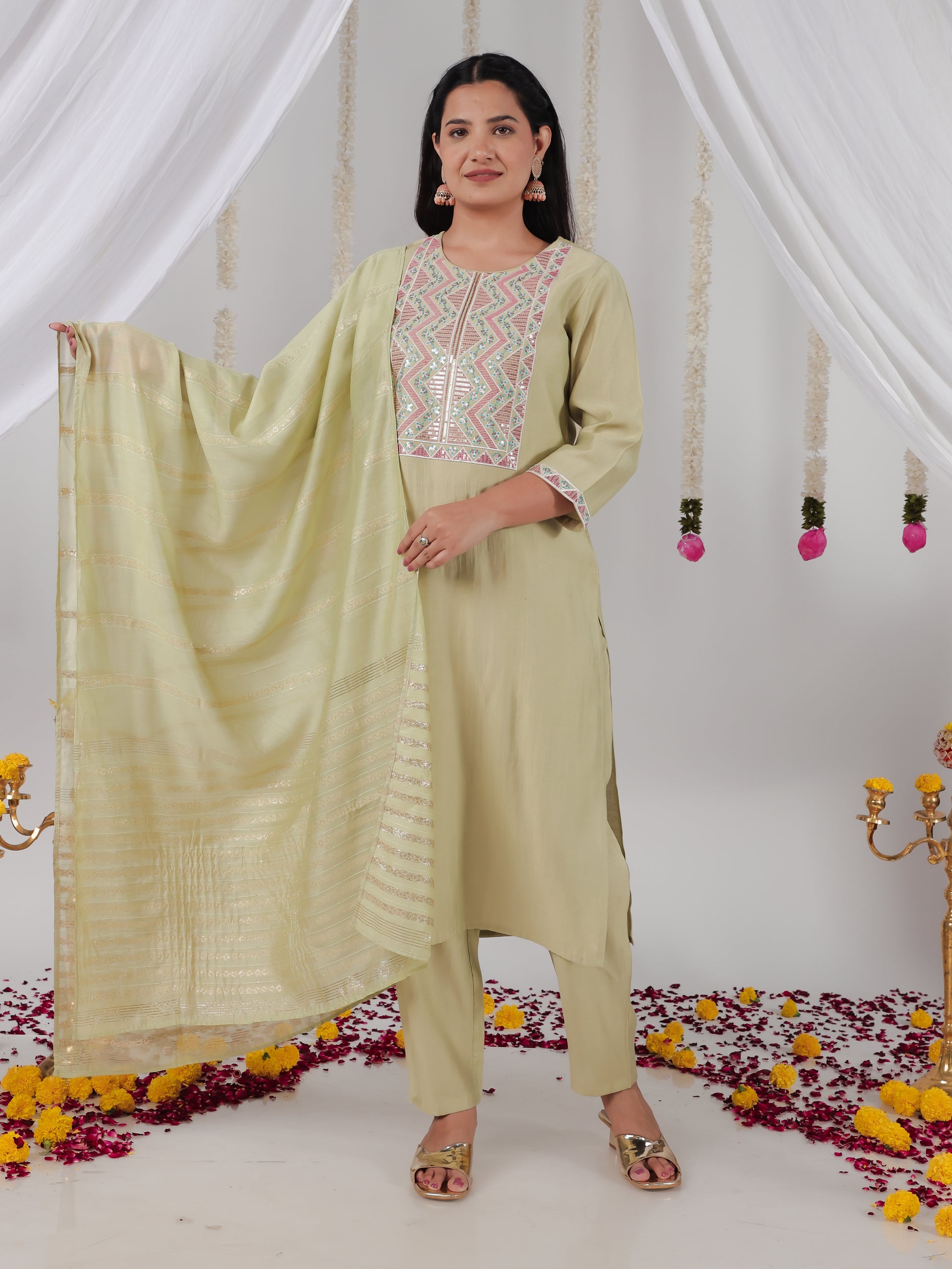 This Georgette dupatta in Green is a versatile accessory for any wardrobe. Designed with a subtle Solid motif, it adds sophistication to both casual and festive outfits. Its soft, flowy texture ensures comfort, while the vibrant colour brightens any ensemble. Wrap it around your shoulders or drape elegantly for a timeless ethnic appeal.