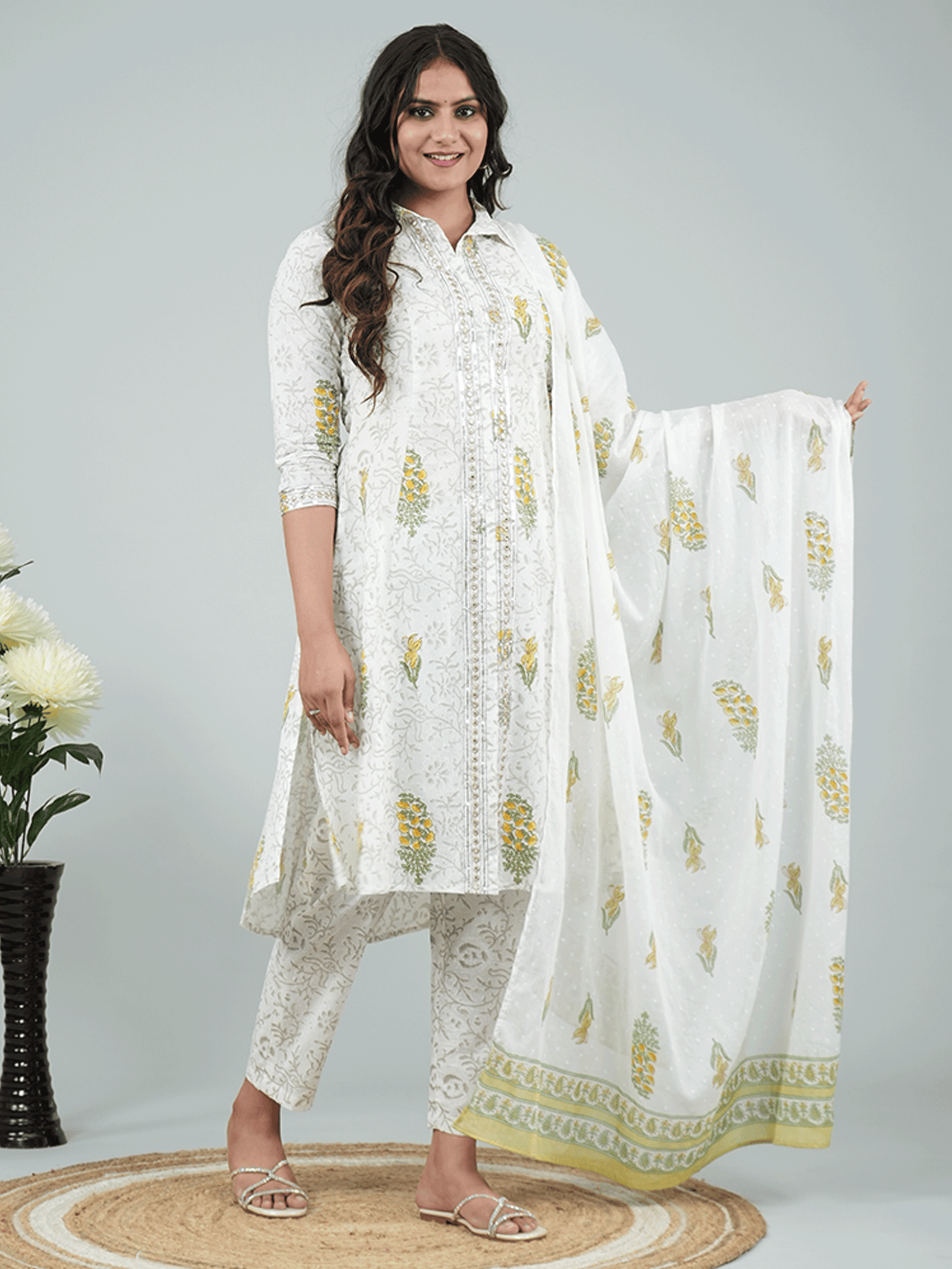 Elevate your ethnic look with this Grey dupatta crafted from lightweight Cotton Voile. The intricate Floral design adds a traditional charm, making it perfect for festive occasions or everyday elegance. Pair it with kurtas, suits, or dresses for a polished touch. Its breathable fabric ensures all-day comfort while maintaining a graceful drape for effortless styling.