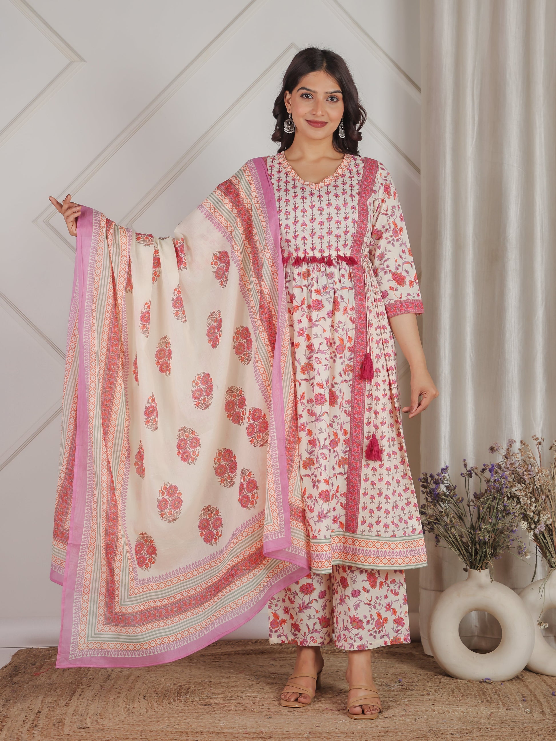 Cotton Voile Floral Off White Dupatta