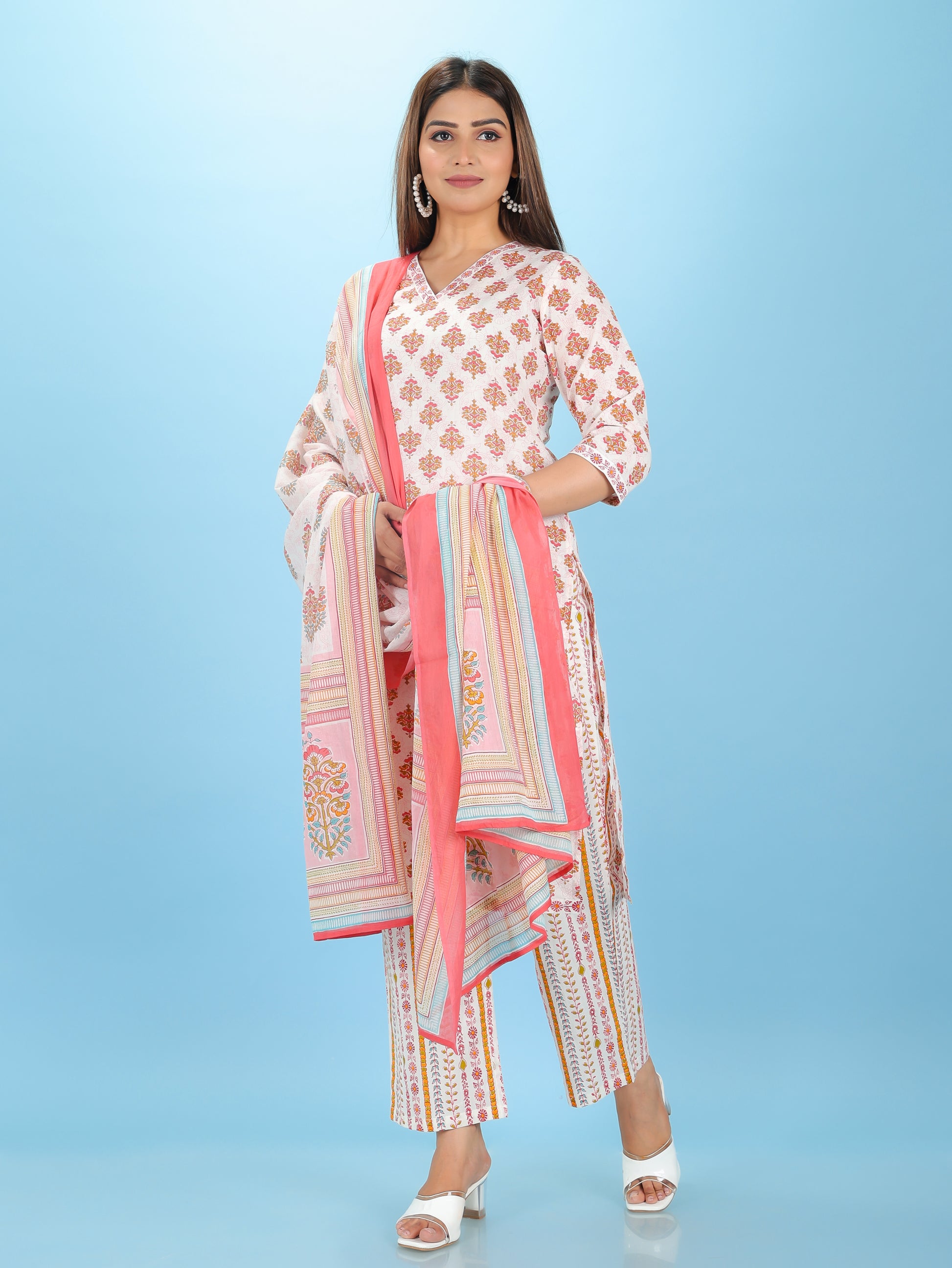 This Voile Cotton dupatta in Off-White is a versatile accessory for any wardrobe. Designed with a subtle Floral motif, it adds sophistication to both casual and festive outfits. Its soft, flowy texture ensures comfort, while the vibrant colour brightens any ensemble. Wrap it around your shoulders or drape elegantly for a timeless ethnic appeal.