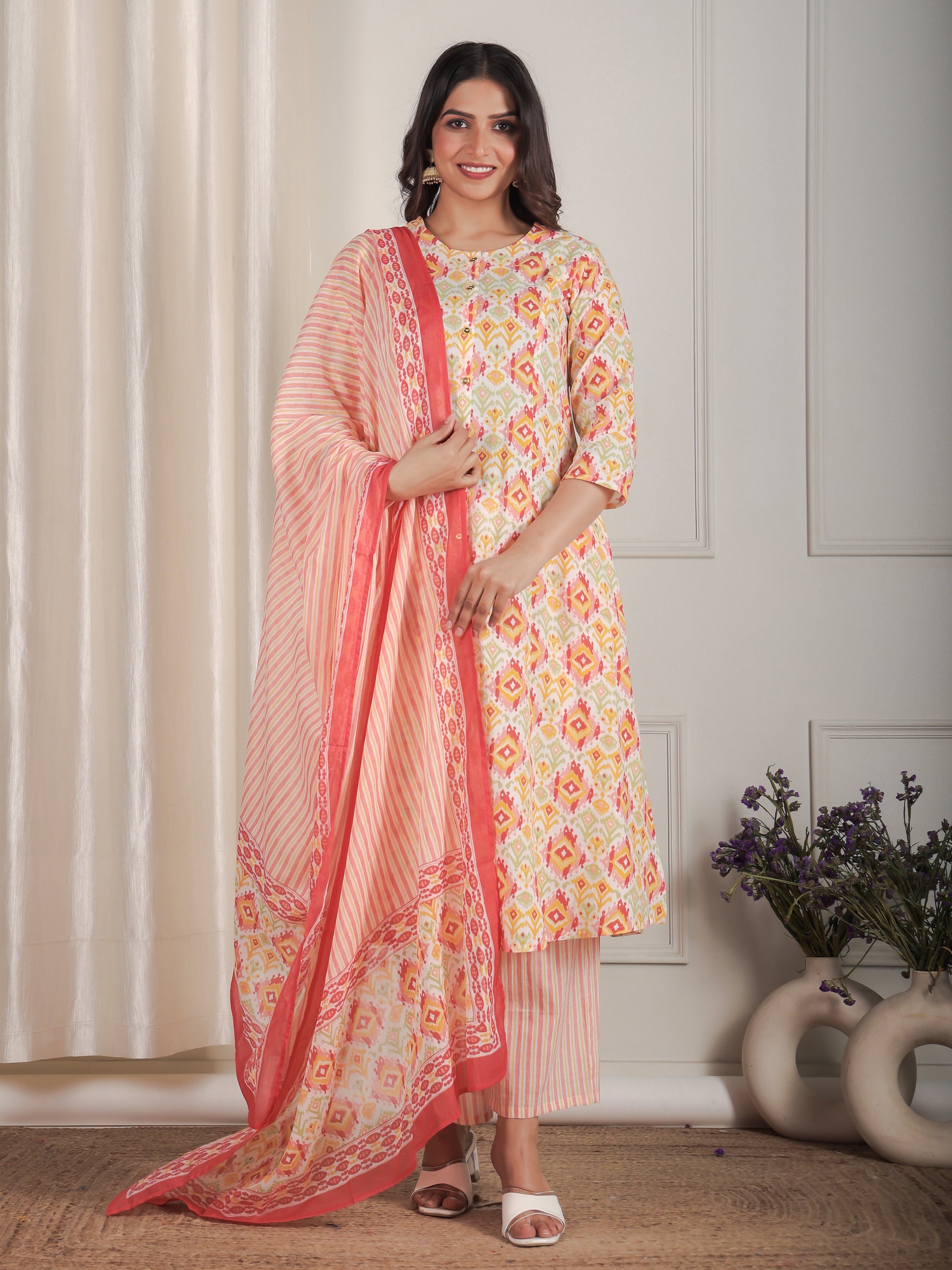 Elevate your ethnic look with this Peach dupatta crafted from lightweight Cotton Voile. The intricate Striped design adds a traditional charm, making it perfect for festive occasions or everyday elegance. Pair it with kurtas, suits, or dresses for a polished touch. Its breathable fabric ensures all-day comfort while maintaining a graceful drape for effortless styling.