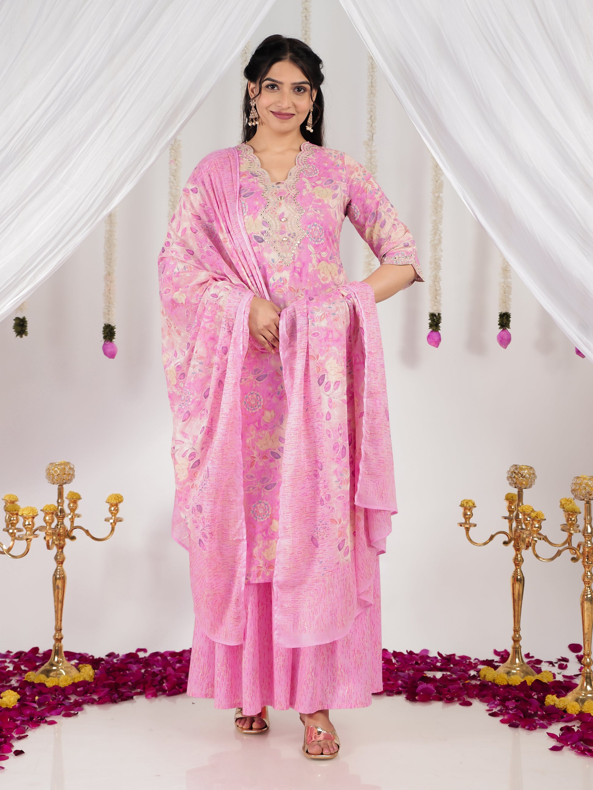 Elevate your ethnic look with this Pink dupatta crafted from lightweight Cotton Voile. The intricate Floral design adds a traditional charm, making it perfect for festive occasions or everyday elegance. Pair it with kurtas, suits, or dresses for a polished touch. Its breathable fabric ensures all-day comfort while maintaining a graceful drape for effortless styling.