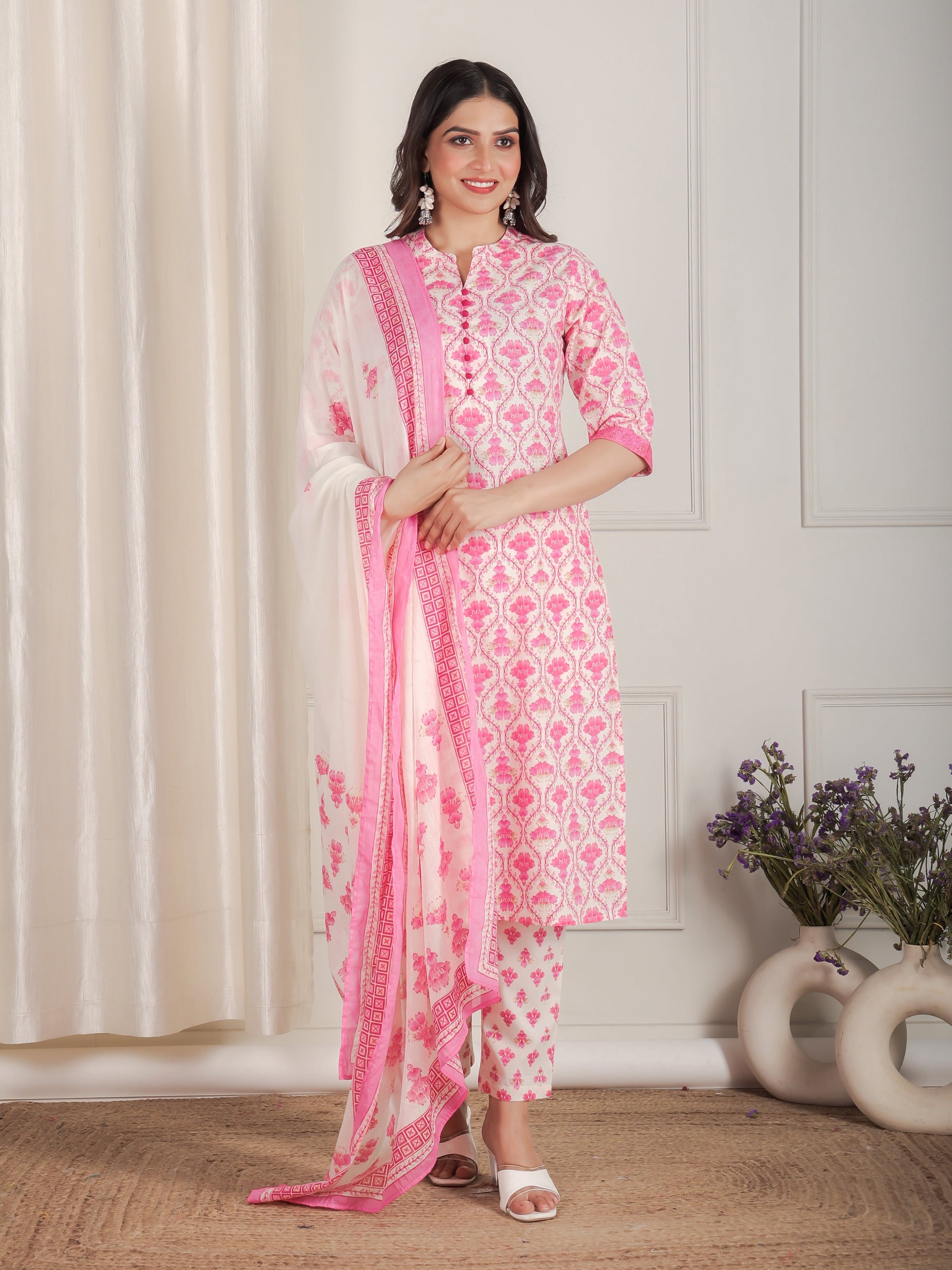 Add a pop of style to your collection with this Pink dupatta made of breathable Cotton Voile. The Floral detailing offers a blend of traditional and modern flair, making it perfect for workwear, daily styling, or small gatherings. Lightweight and easy to carry, it pairs beautifully with kurtas and tunics, ensuring effortless grace every day.