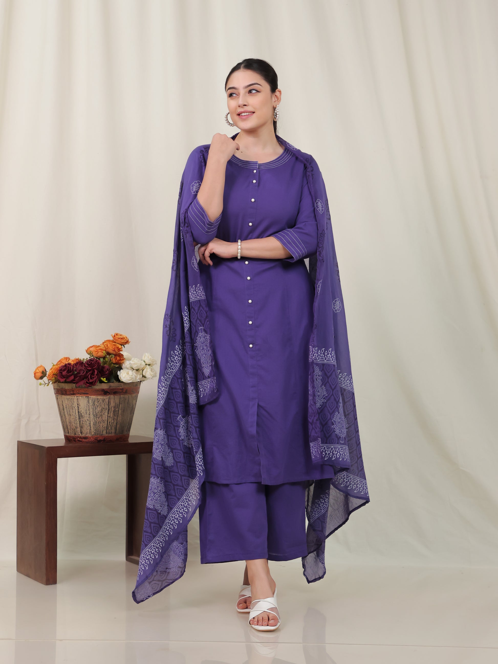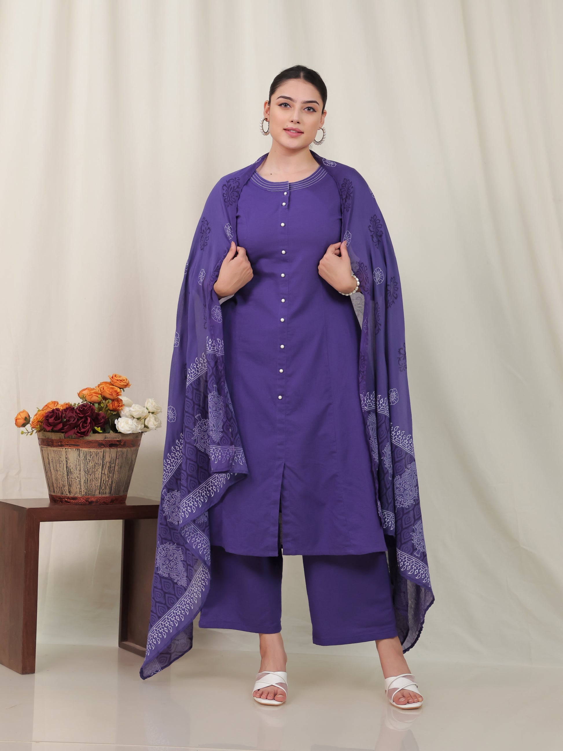 Elevate your ethnic look with this Purple dupatta crafted from lightweight Cotton Voile. The intricate Block Print design adds a traditional charm, making it perfect for festive occasions or everyday elegance. Pair it with kurtas, suits, or dresses for a polished touch. Its breathable fabric ensures all-day comfort while maintaining a graceful drape for effortless styling.