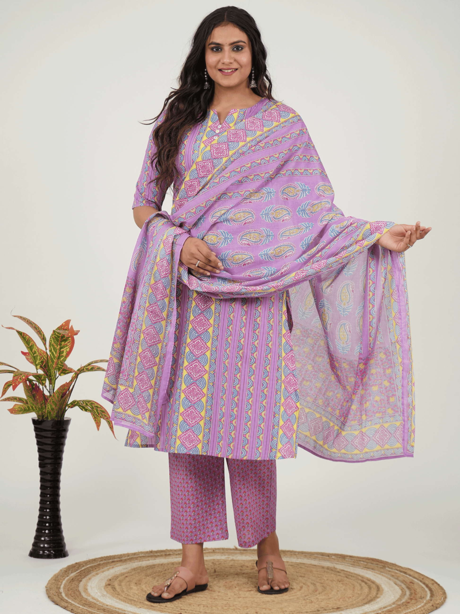 Elevate your ethnic look with this Purple dupatta crafted from lightweight Cotton Voile. The intricate Geometric design adds a traditional charm, making it perfect for festive occasions or everyday elegance. Pair it with kurtas, suits, or dresses for a polished touch. Its breathable fabric ensures all-day comfort while maintaining a graceful drape for effortless styling.