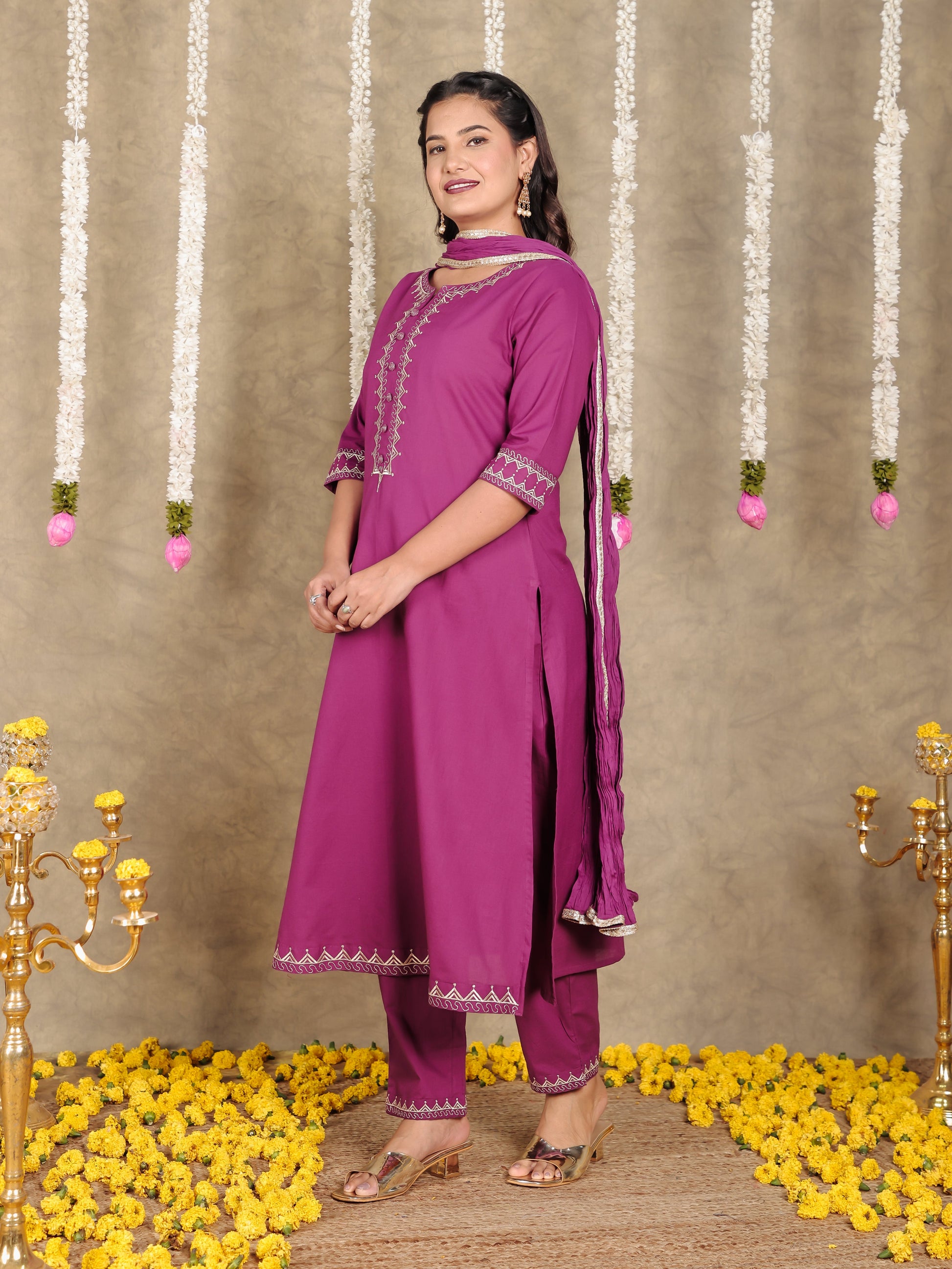 This Cotton Voile dupatta in Purple brings a festive touch to any outfit. The intricate Solid patterns showcase artisanal craftsmanship, making it ideal for celebrations, weddings, or cultural events. Its soft, flowy design ensures comfort and an elegant drape. Style it with matching accessories for a sophisticated ethnic ensemble that stands out with timeless charm.