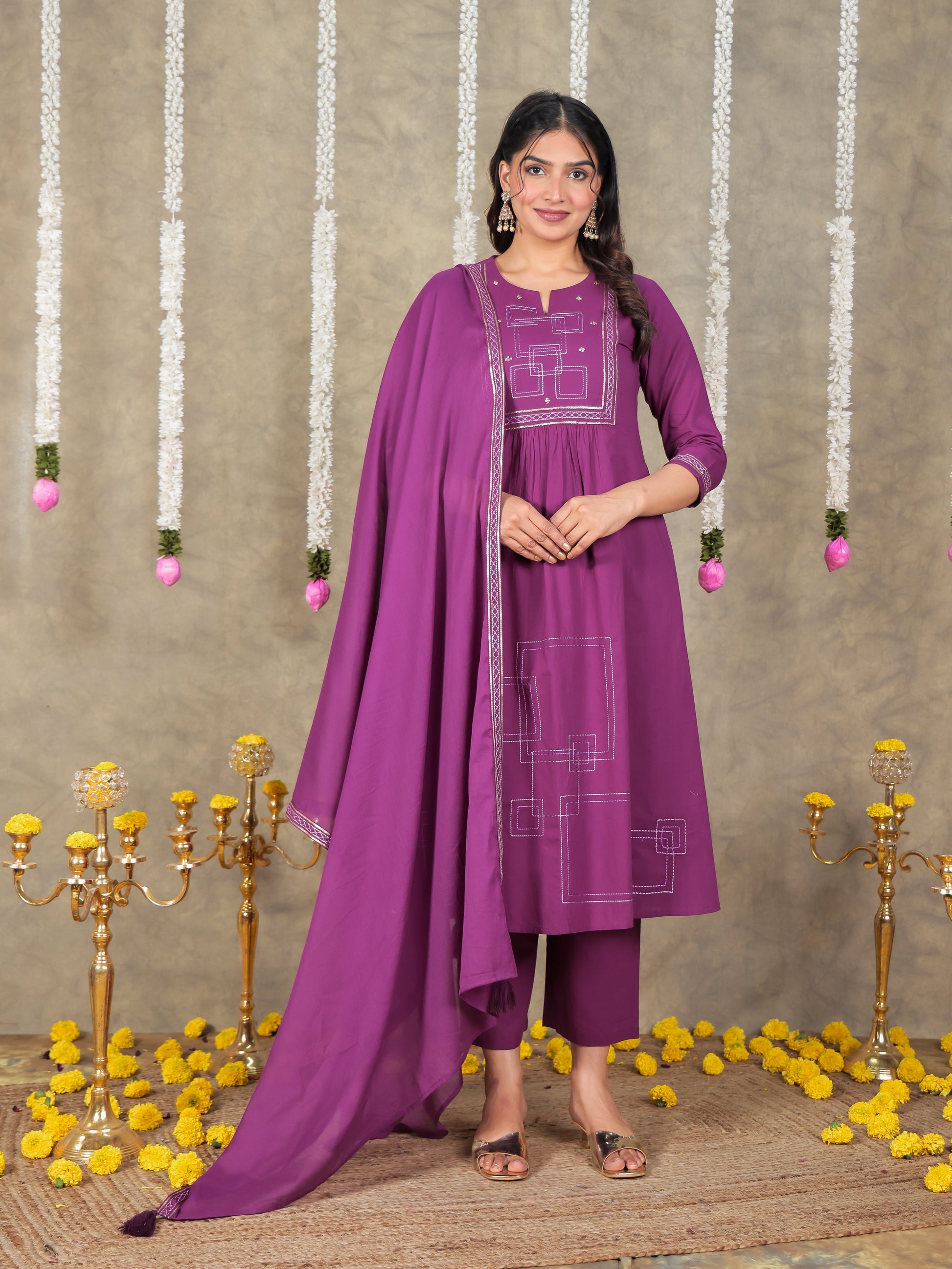 This Cotton Voile dupatta in Purple brings a festive touch to any outfit. The intricate Solid patterns showcase artisanal craftsmanship, making it ideal for celebrations, weddings, or cultural events. Its soft, flowy design ensures comfort and an elegant drape. Style it with matching accessories for a sophisticated ethnic ensemble that stands out with timeless charm.