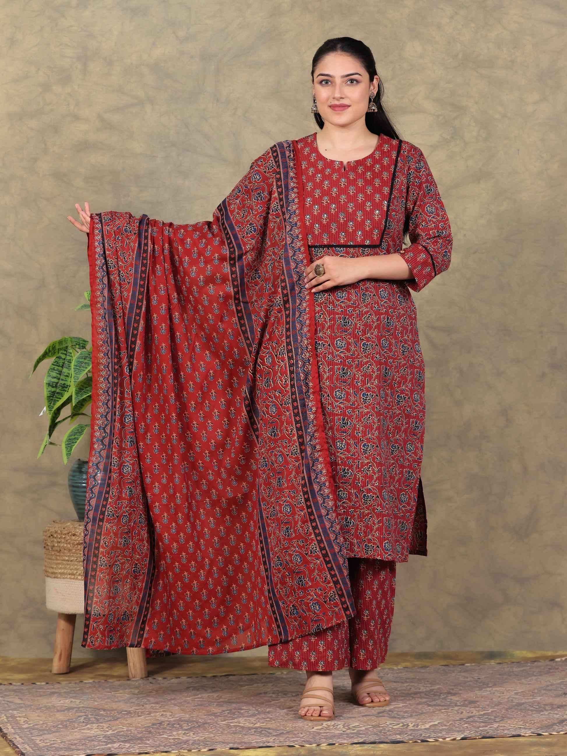 Cotton Voile Butti Rust Dupatta