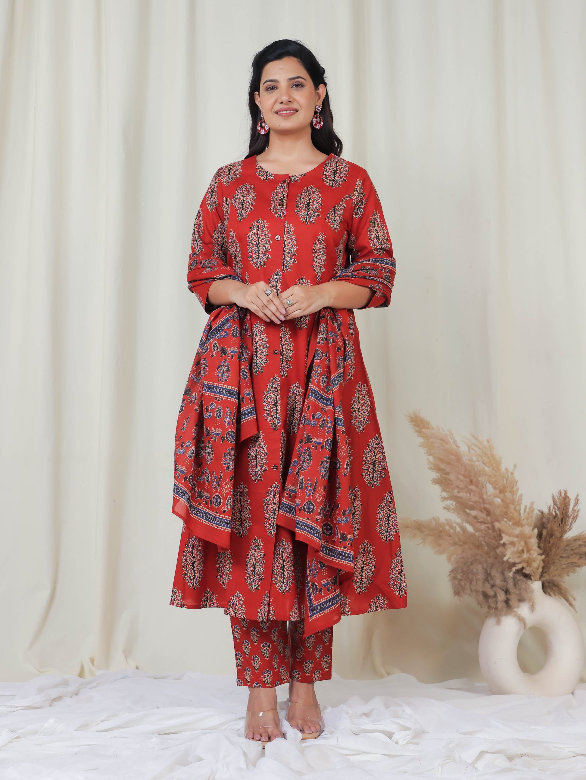 Add a pop of style to your collection with this Rust dupatta made of breathable Cotton Voile. The Floral detailing offers a blend of traditional and modern flair, making it perfect for workwear, daily styling, or small gatherings. Lightweight and easy to carry, it pairs beautifully with kurtas and tunics, ensuring effortless grace every day.