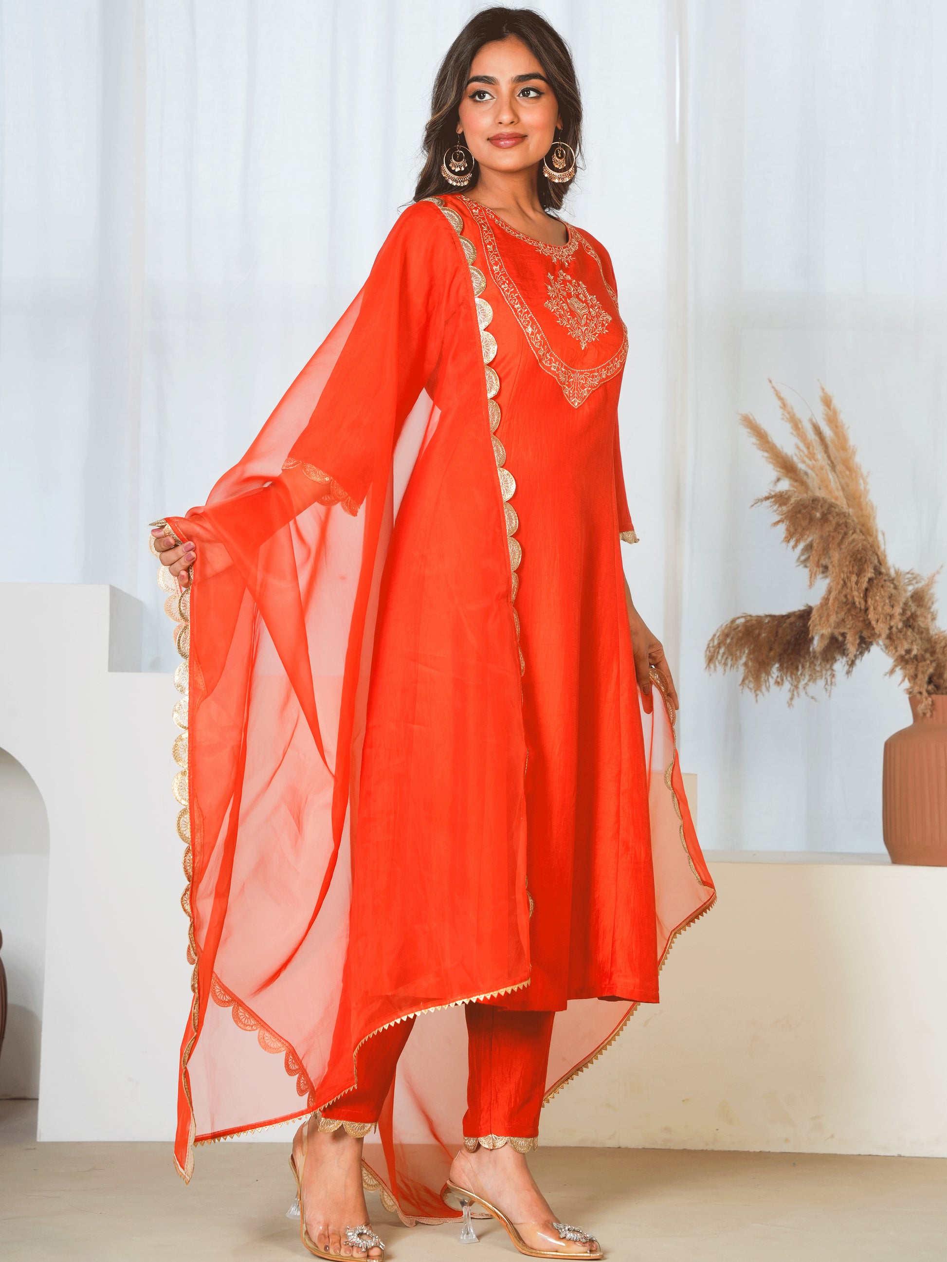 Organza Solid Rust Orange Dupatta