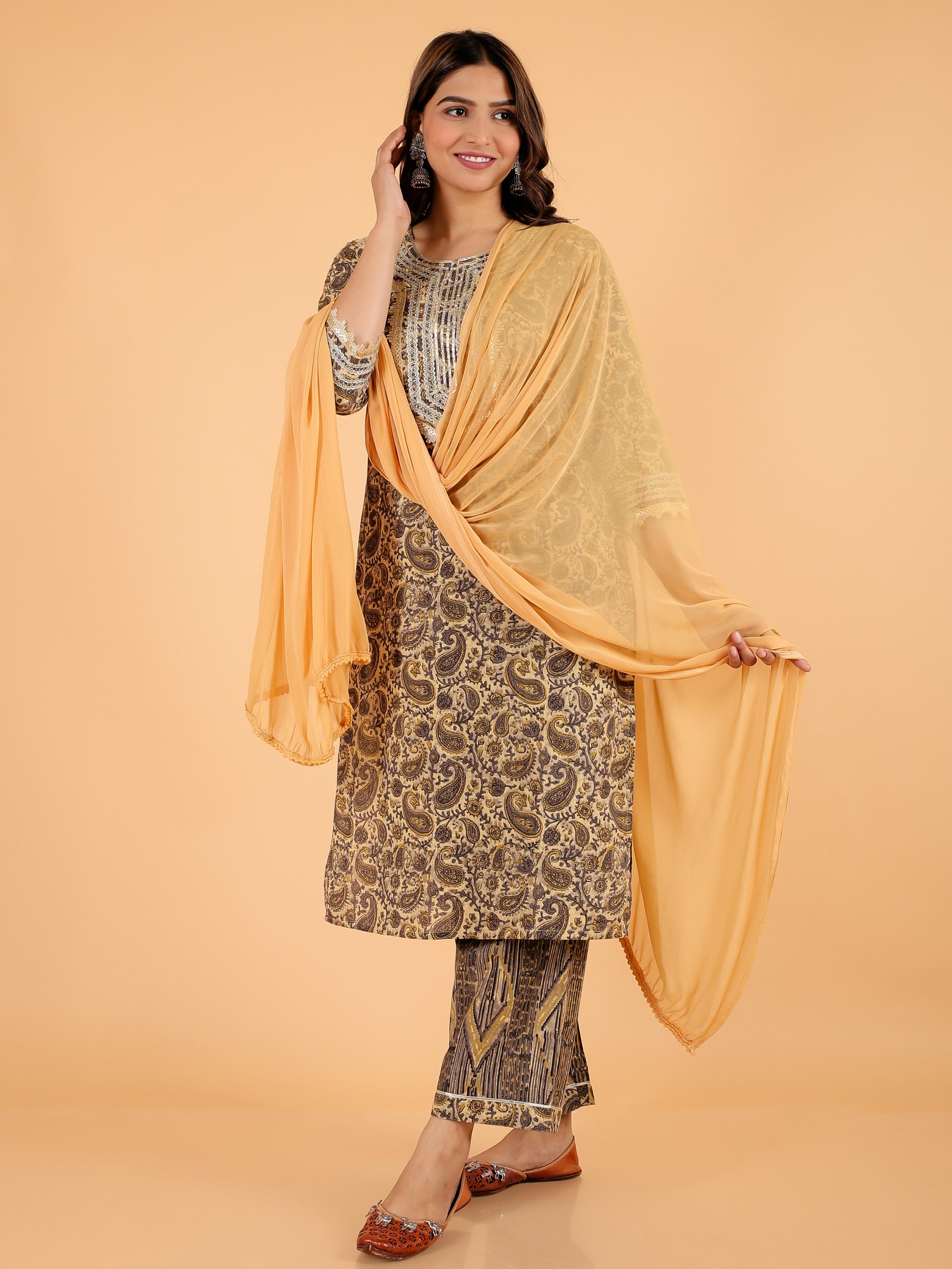 This Chiffon dupatta in Beige is a versatile accessory for any wardrobe. Designed with a subtle Solid motif, it adds sophistication to both casual and festive outfits. Its soft, flowy texture ensures comfort, while the vibrant colour brightens any ensemble. Wrap it around your shoulders or drape elegantly for a timeless ethnic appeal.