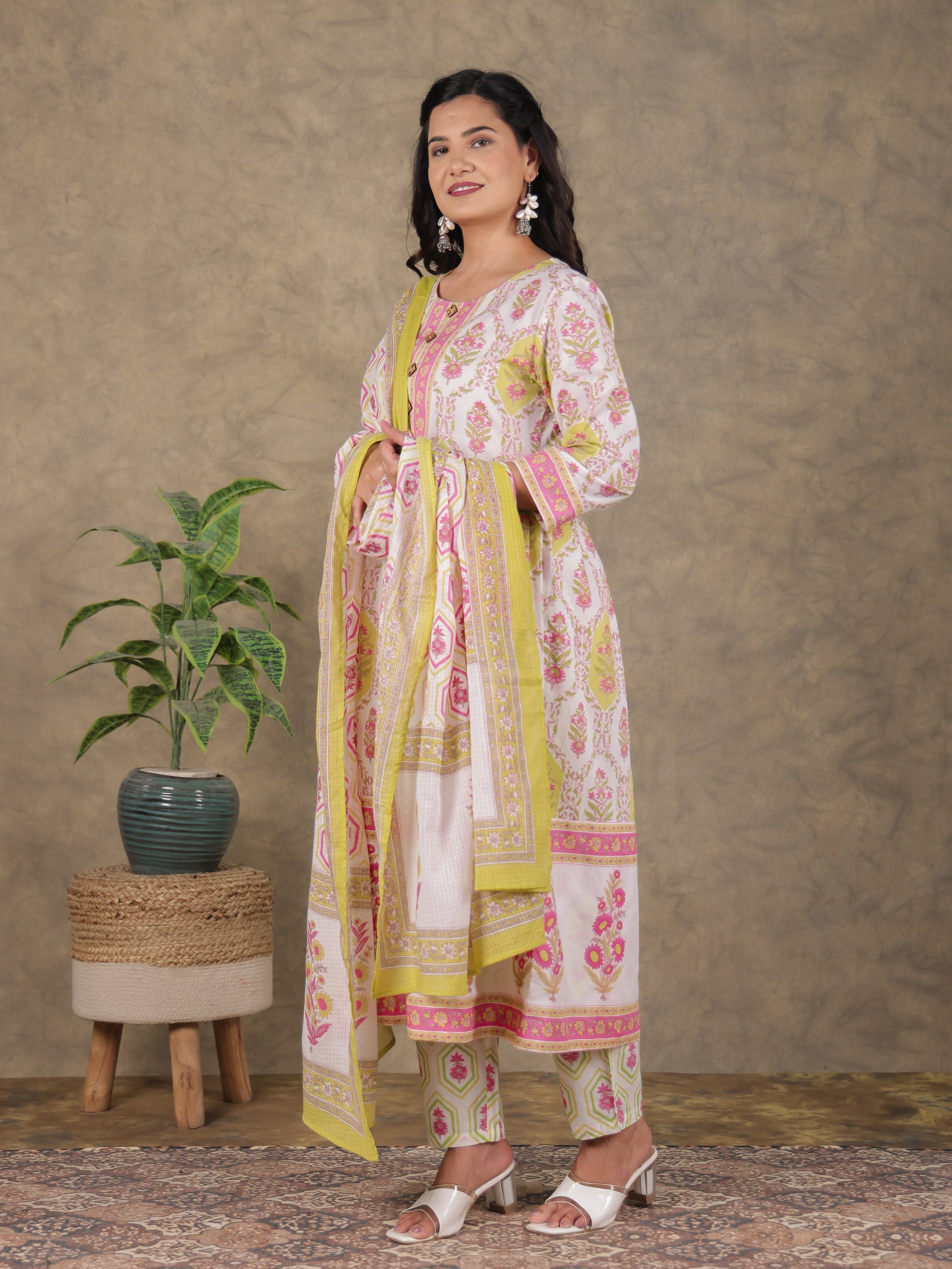 Add a pop of style to your collection with this White dupatta made of breathable Kota Doria. The Floral detailing offers a blend of traditional and modern flair, making it perfect for workwear, daily styling, or small gatherings. Lightweight and easy to carry, it pairs beautifully with kurtas and tunics, ensuring effortless grace every day.