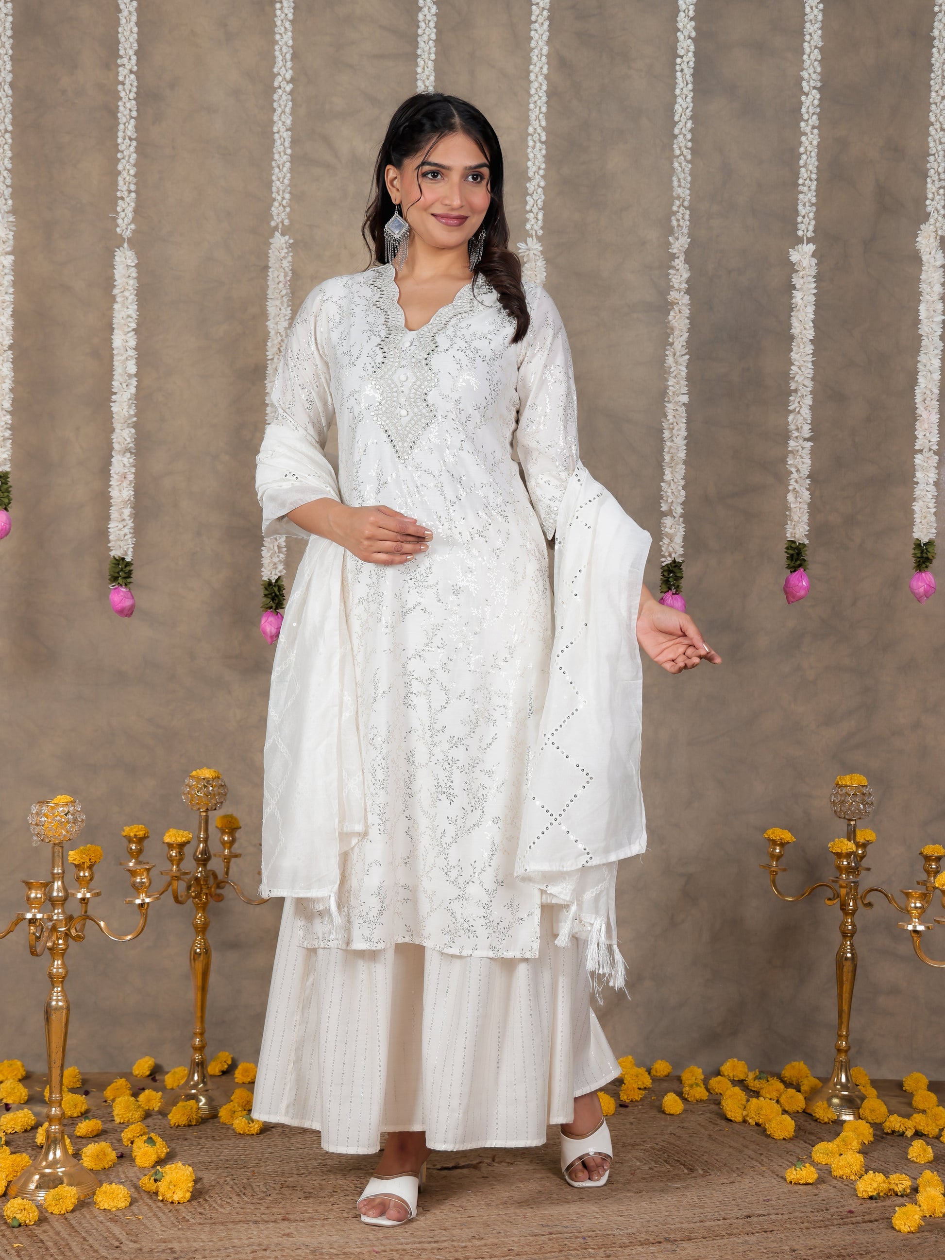 Elevate your ethnic look with this White dupatta crafted from lightweight Chanderi. The intricate Solid design adds a traditional charm, making it perfect for festive occasions or everyday elegance. Pair it with kurtas, suits, or dresses for a polished touch. Its breathable fabric ensures all-day comfort while maintaining a graceful drape for effortless styling.