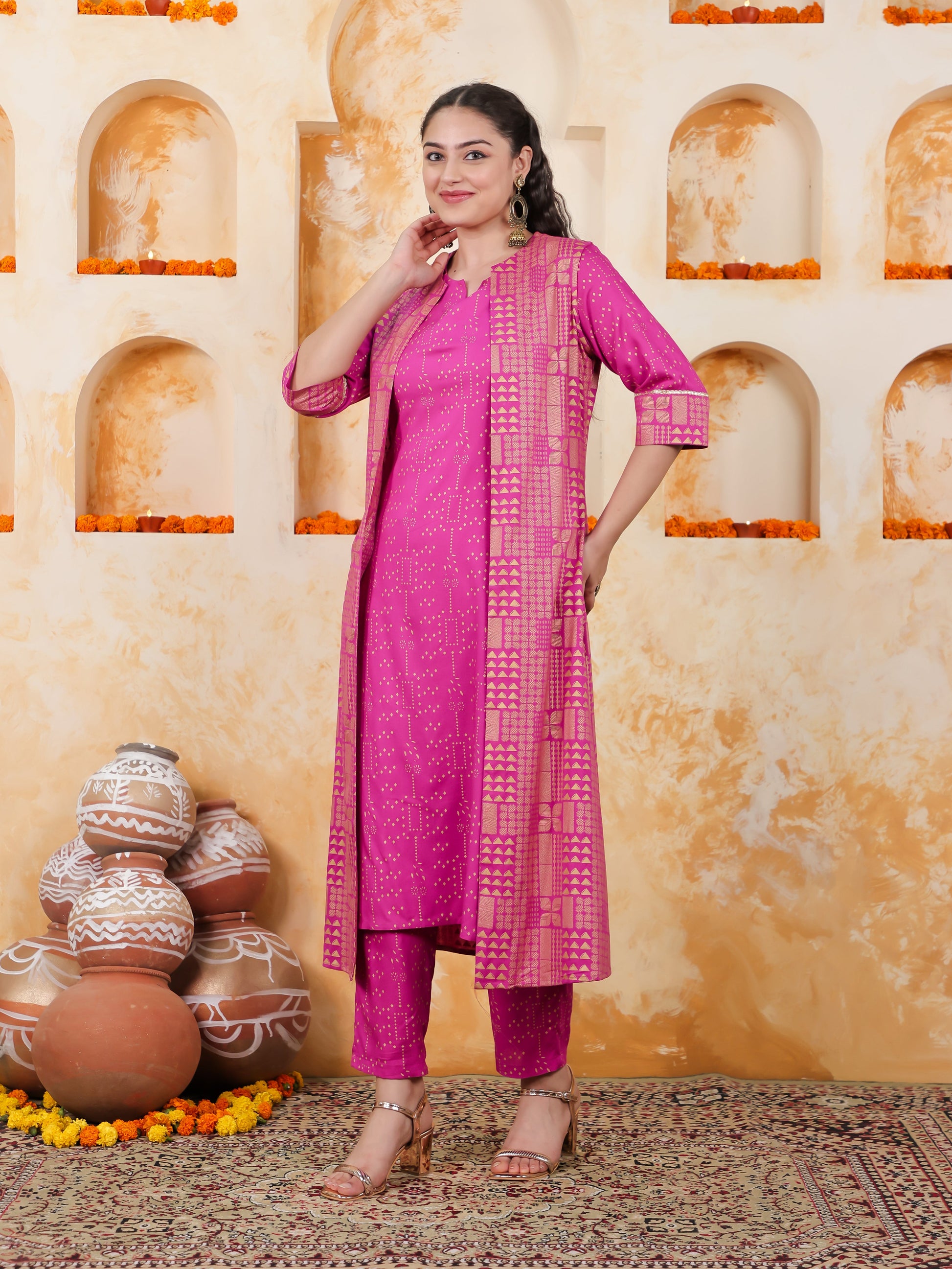 Viscose Gold foil Pink Jacket