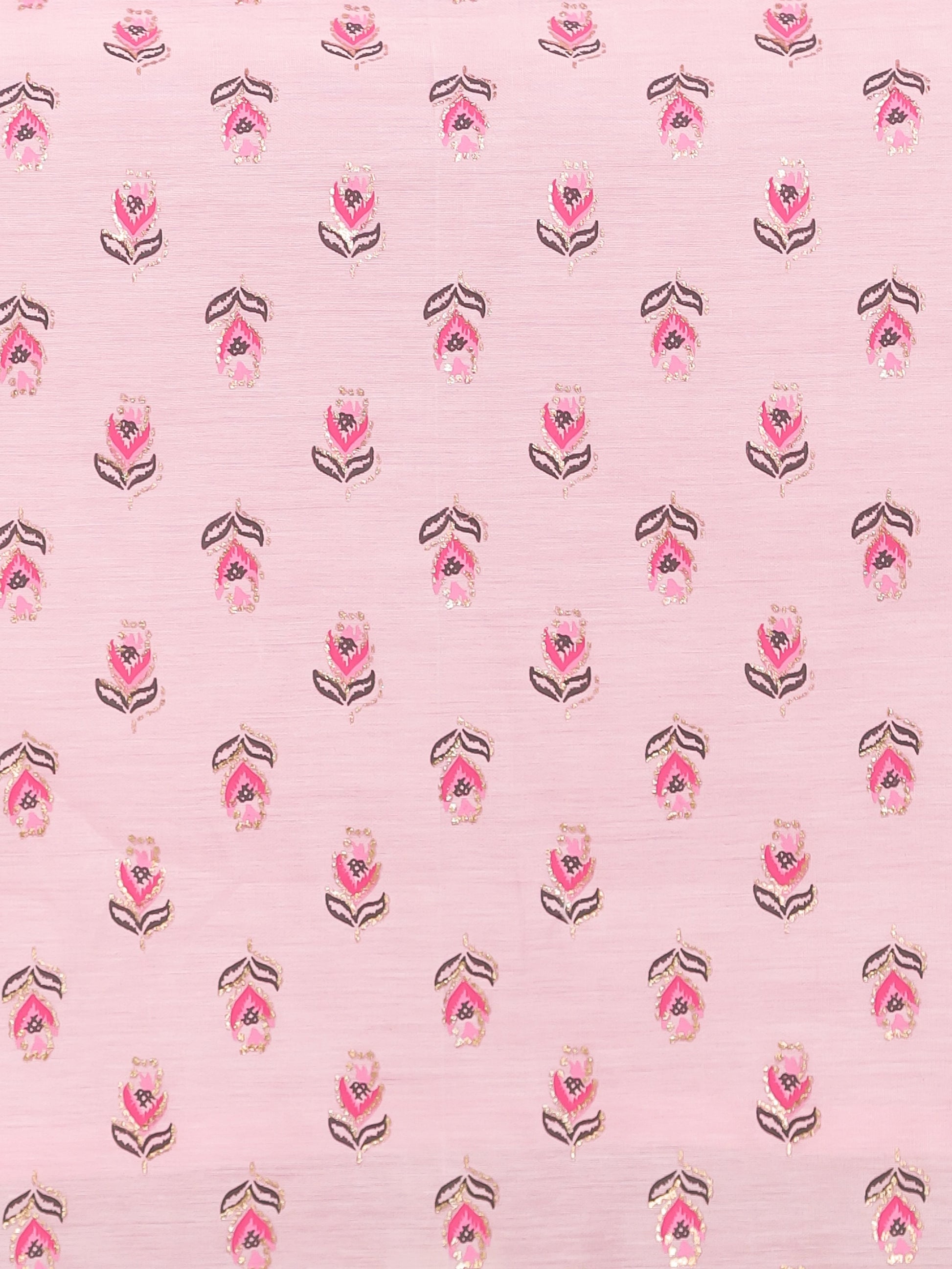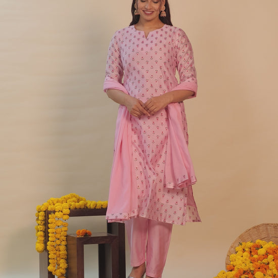 Chanderi Floral Straight Baby Pink Kurta
