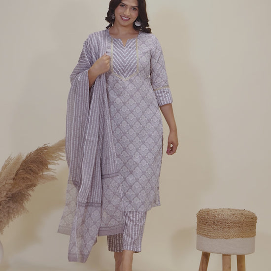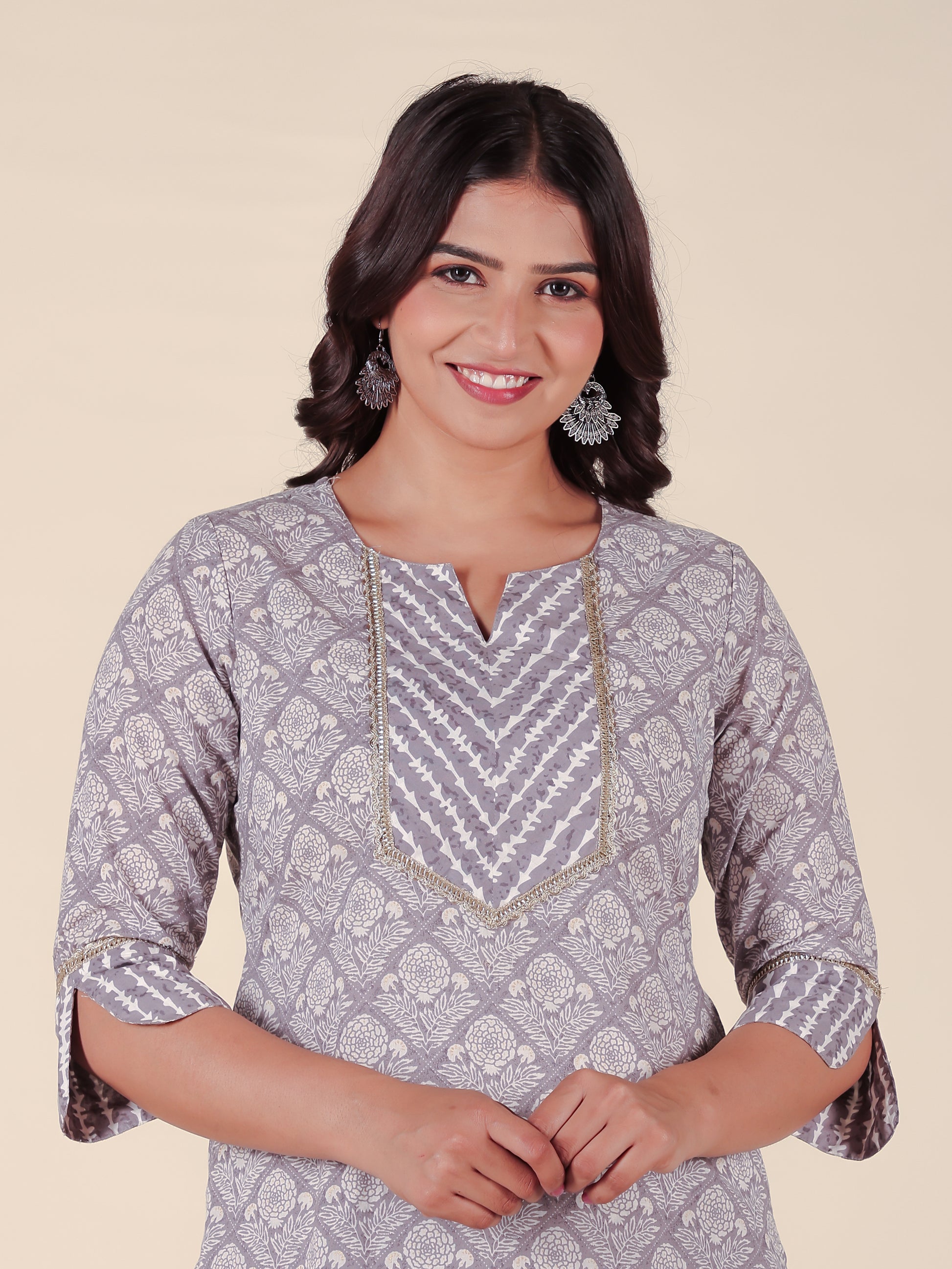 Crafted from breathable Soft Cotton, this Straight kurta in Grey blends traditional design with everyday comfort. The Hand Block finish adds artisanal charm, while the Calf Length silhouette ensures effortless elegance. Style with palazzos or leggings for versatile looks, from workdays to weekend outings. Designed for easy care, this kurta stays beautiful with simple care instructions.