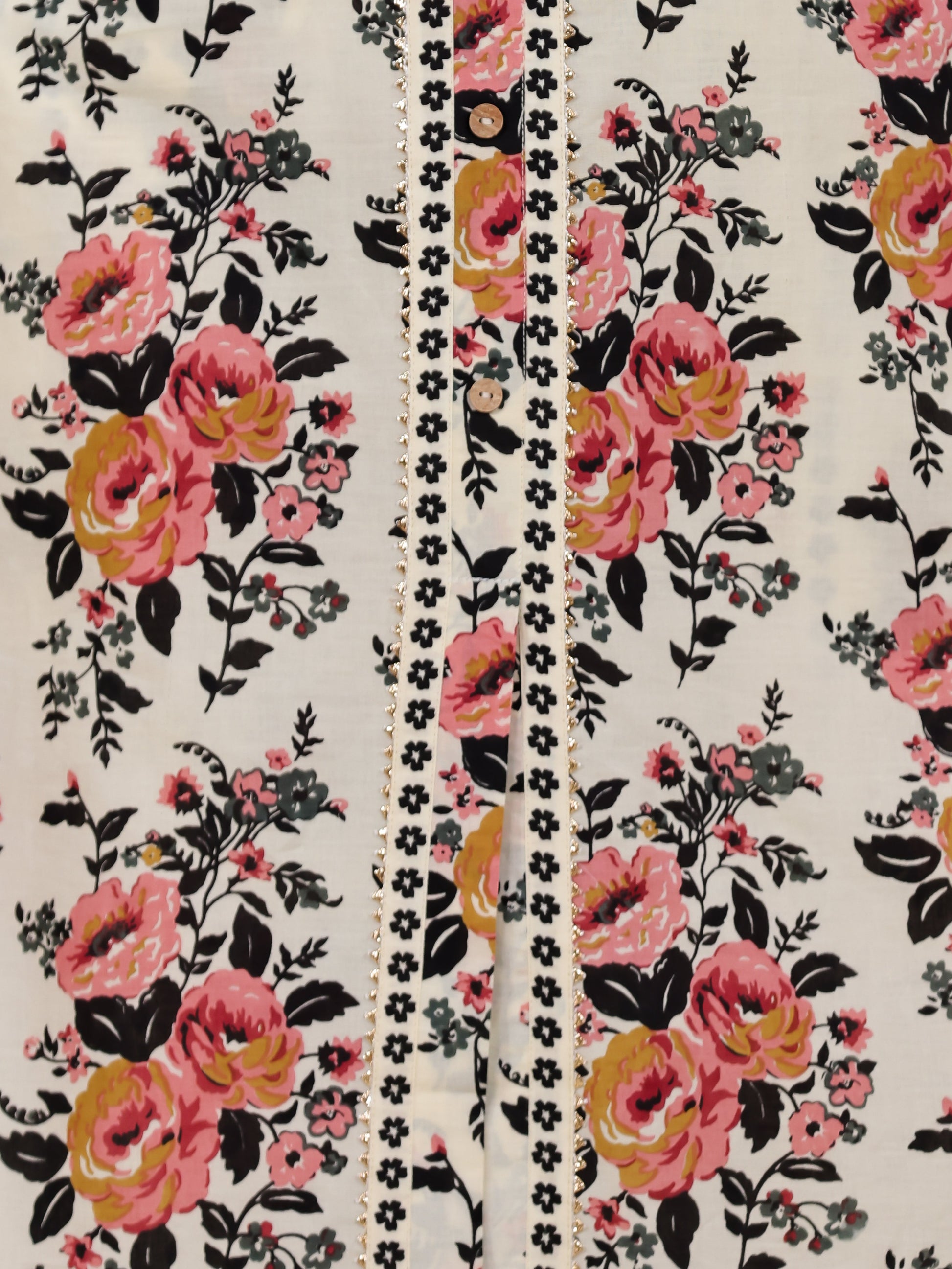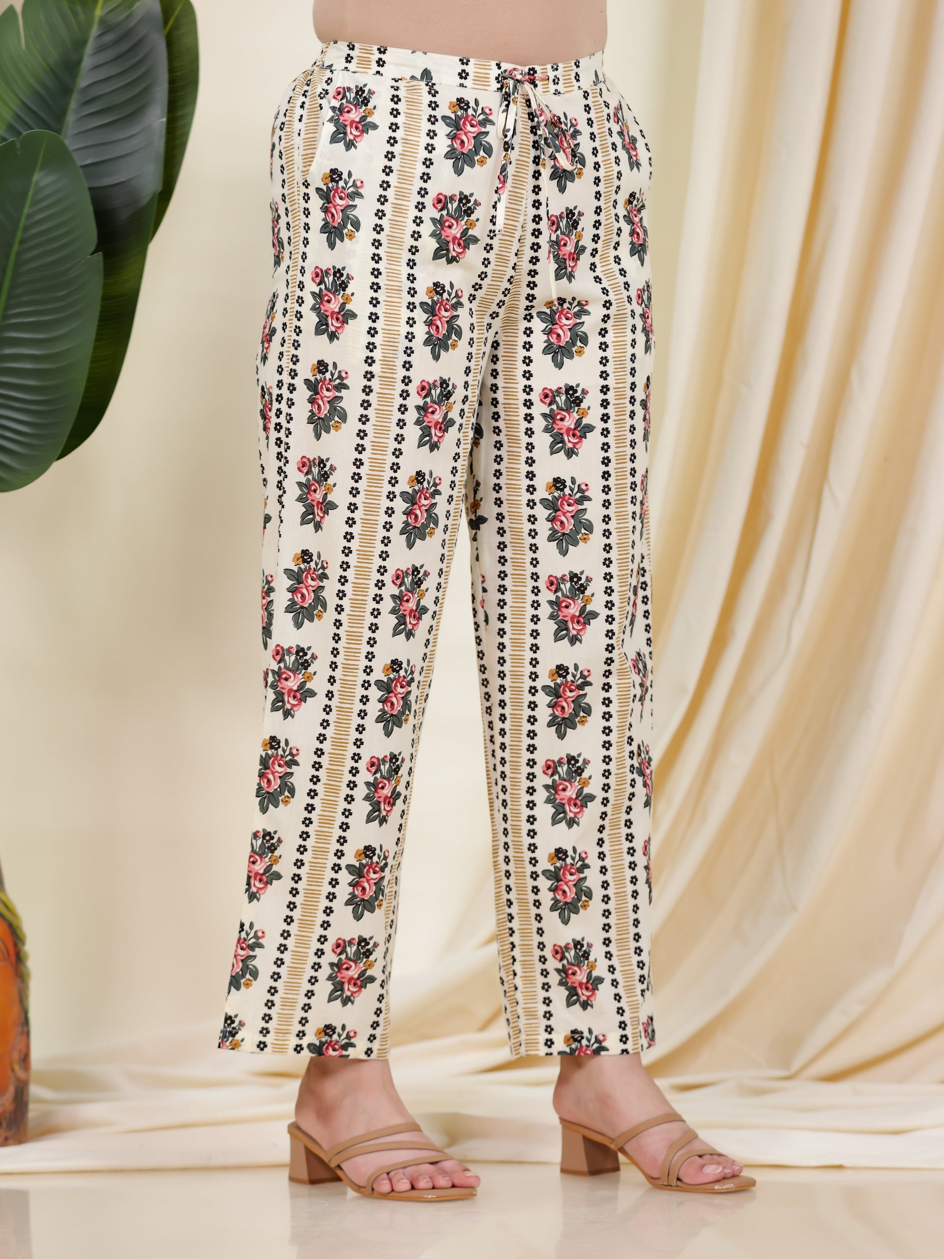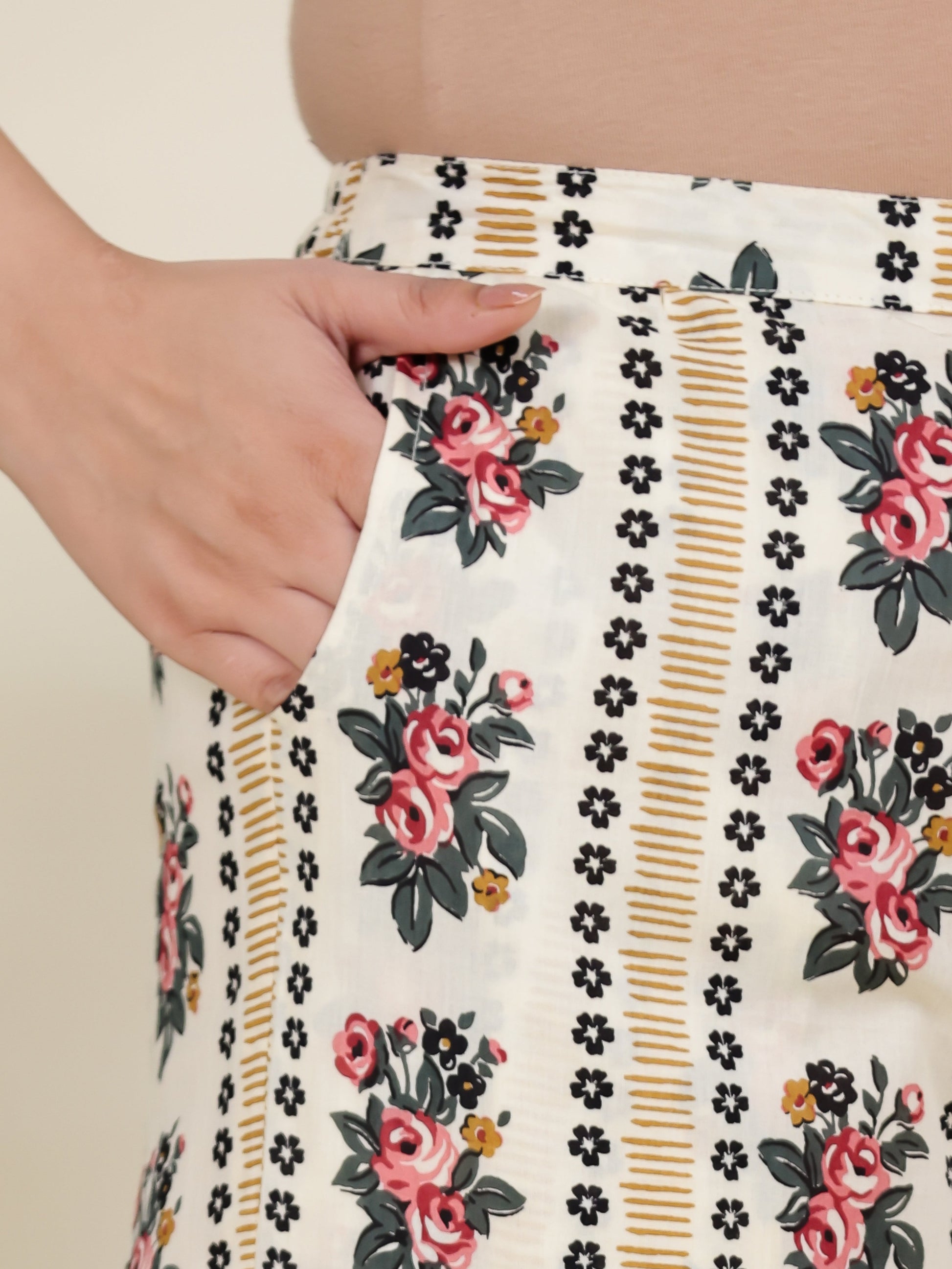 Soft Cotton Floral High Low Beige Kurta