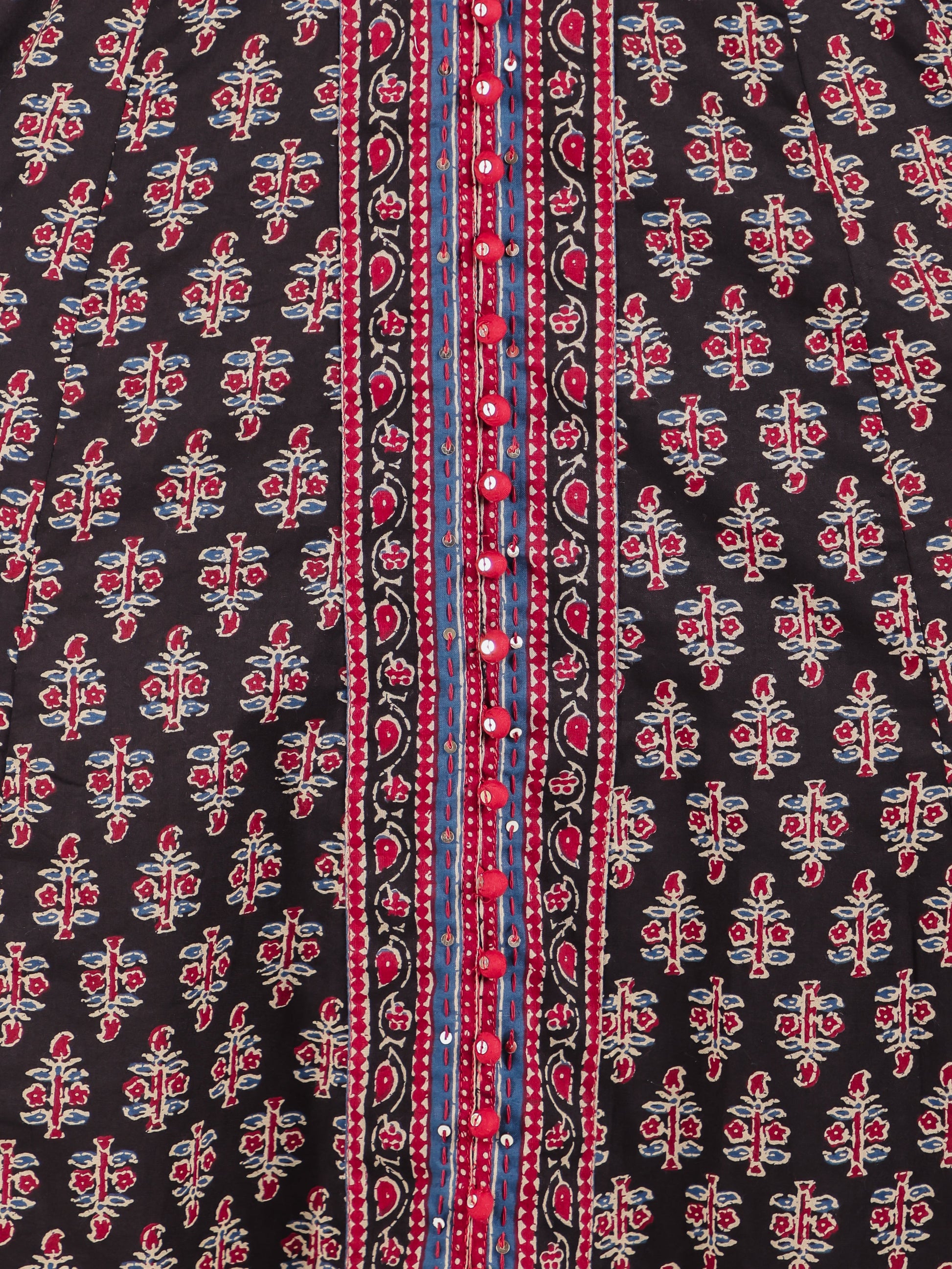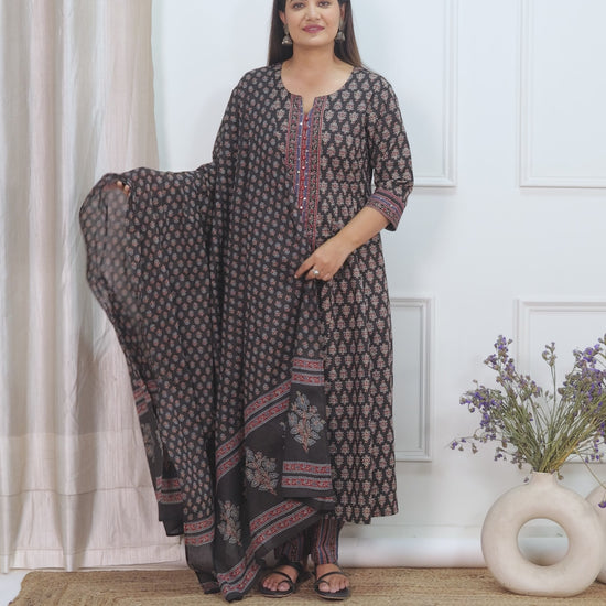 Embroidered Soft Cotton Ajrakh Anarkali Black Kurta