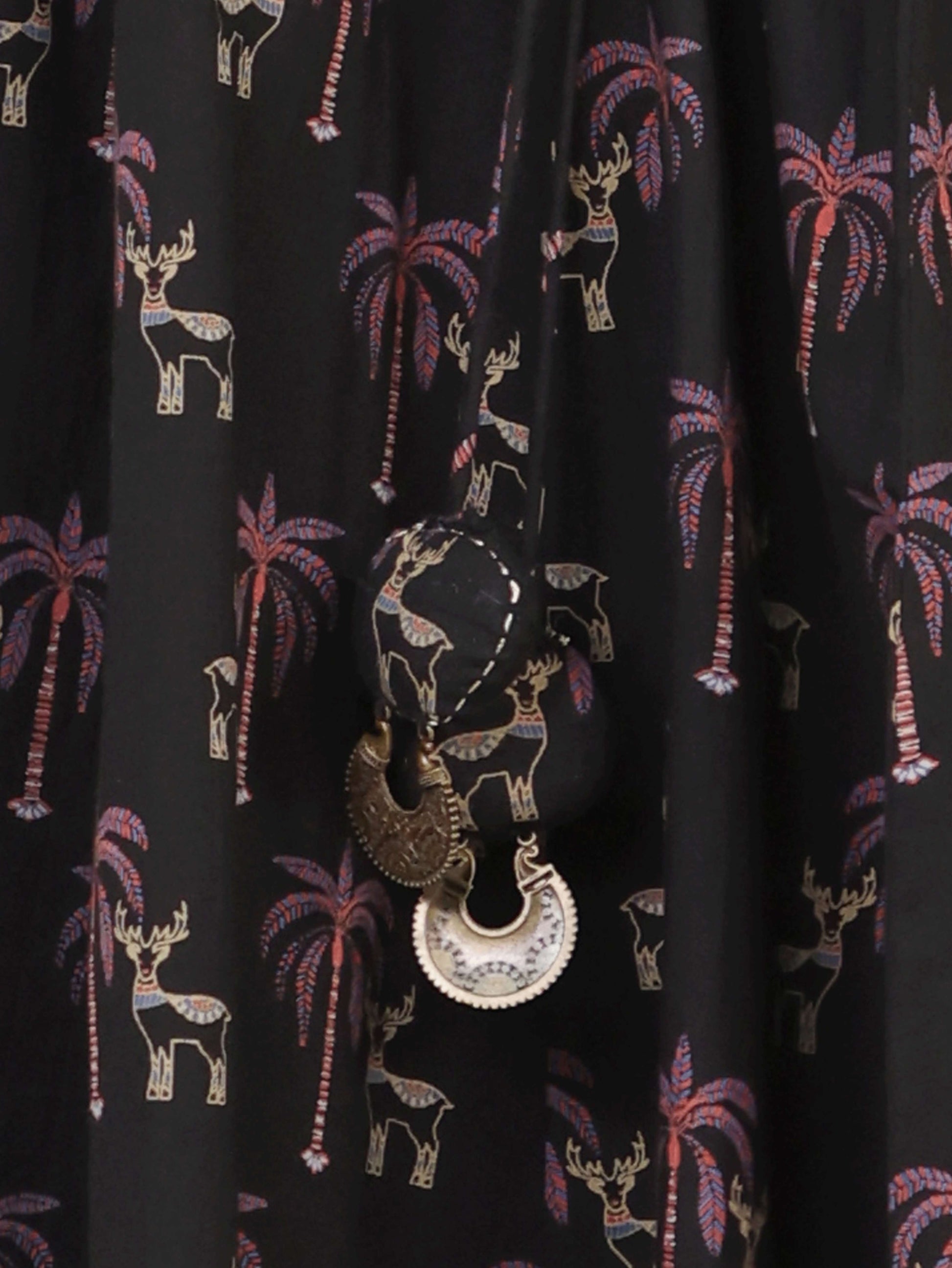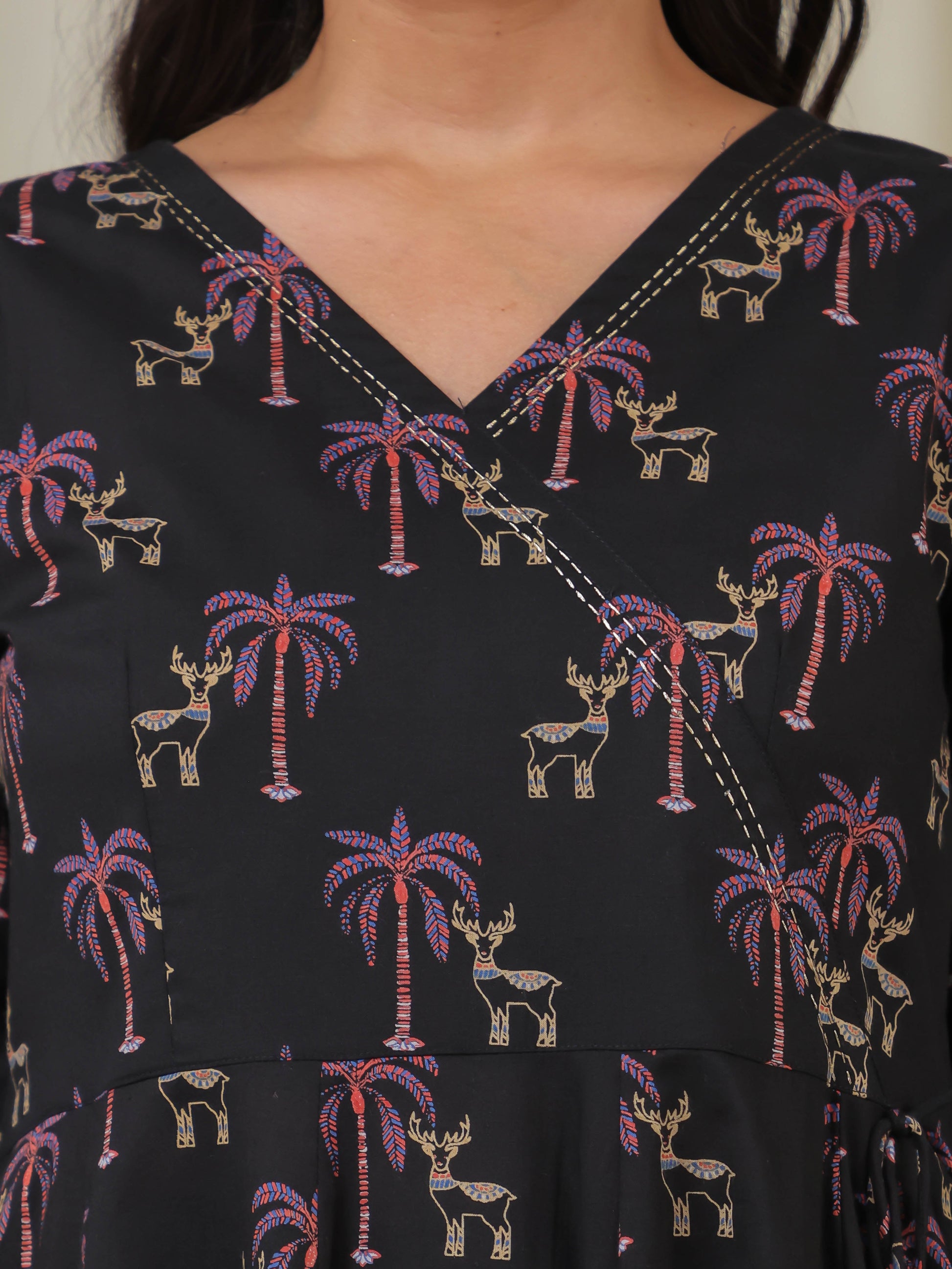 Embroidered Soft Cotton Animal Angrakha Black Kurta