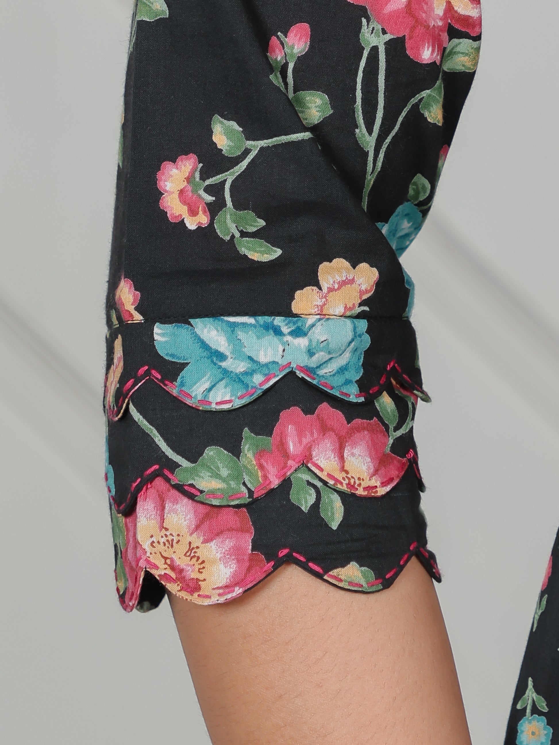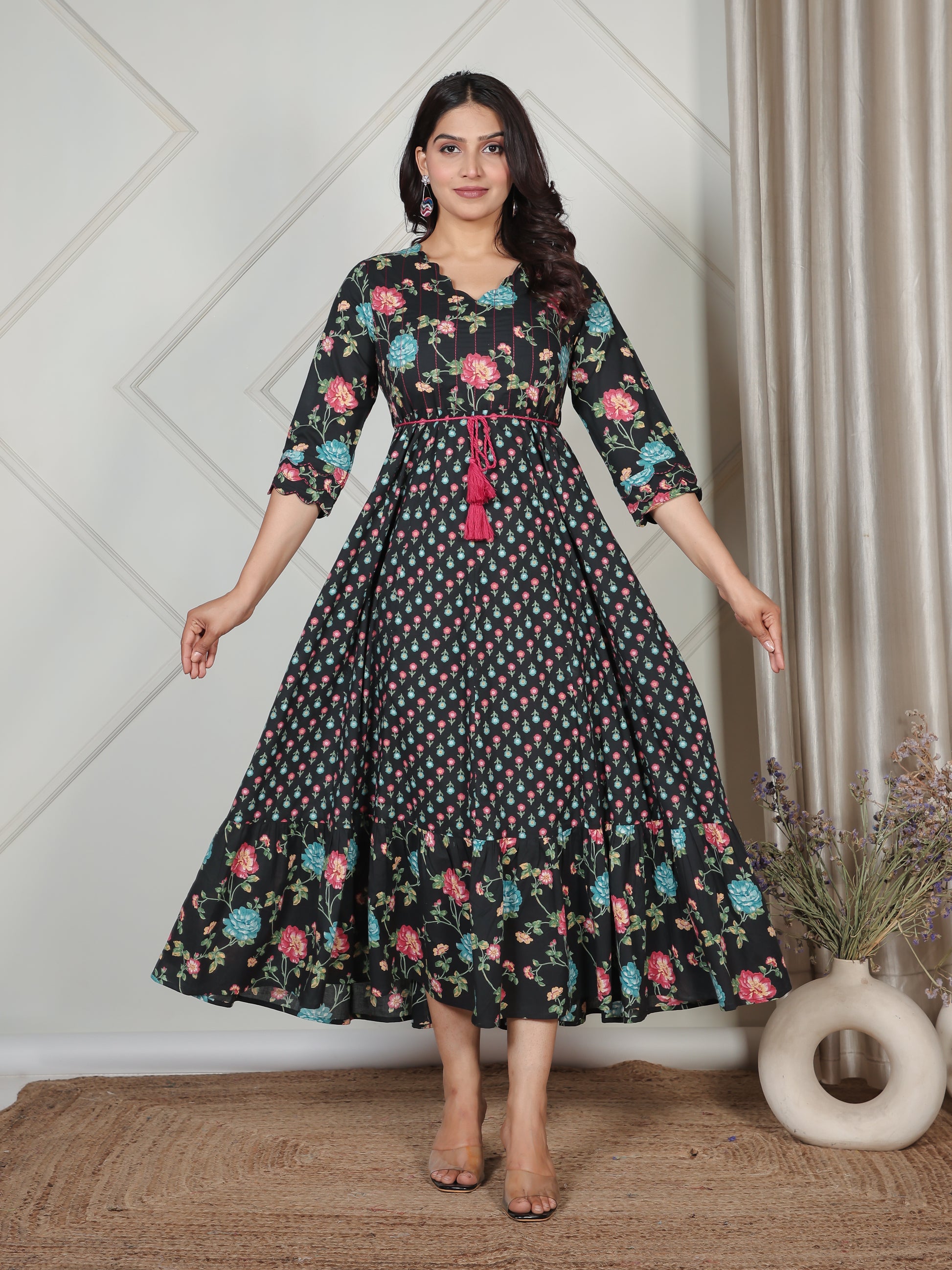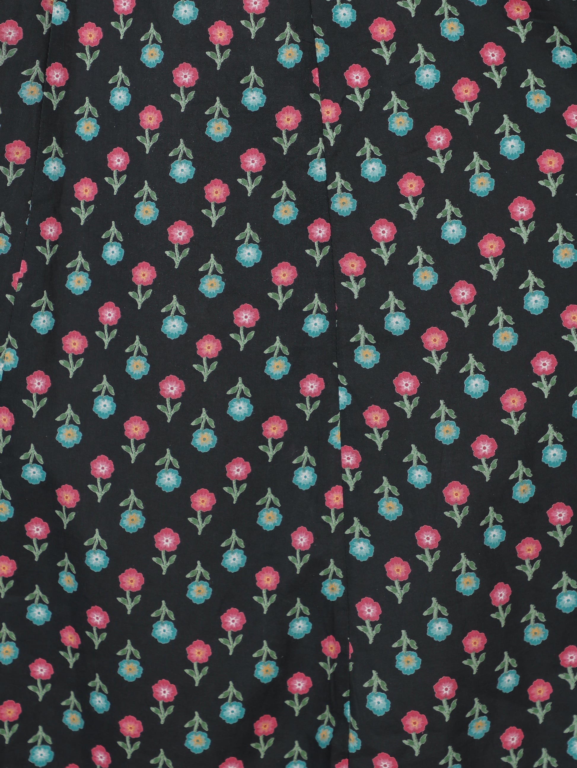 Embroidered Soft Cotton Floral Anarkali Black Kurta