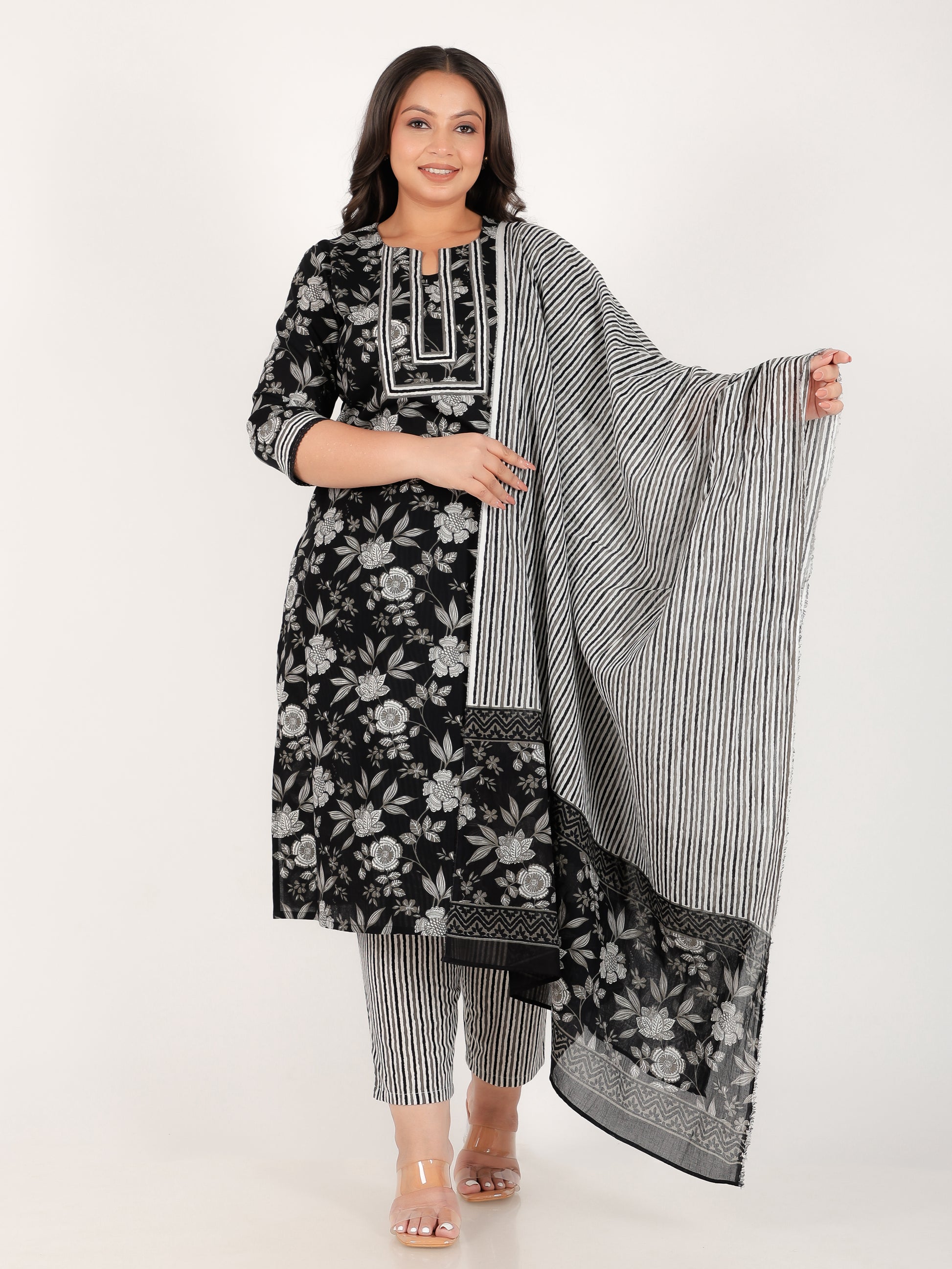 Elevate your ethnic wardrobe with this Soft Cotton kurta in a stunning Black hue. Featuring an elegant Straight fit and striking Floral accents, it’s perfect for festive celebrations or family gatherings. The Round neckline and 3/4 Sleeve provide all-day comfort. Team with gold-toned accessories for an effortlessly chic vibe. Maintain its charm by following proper care instructions.