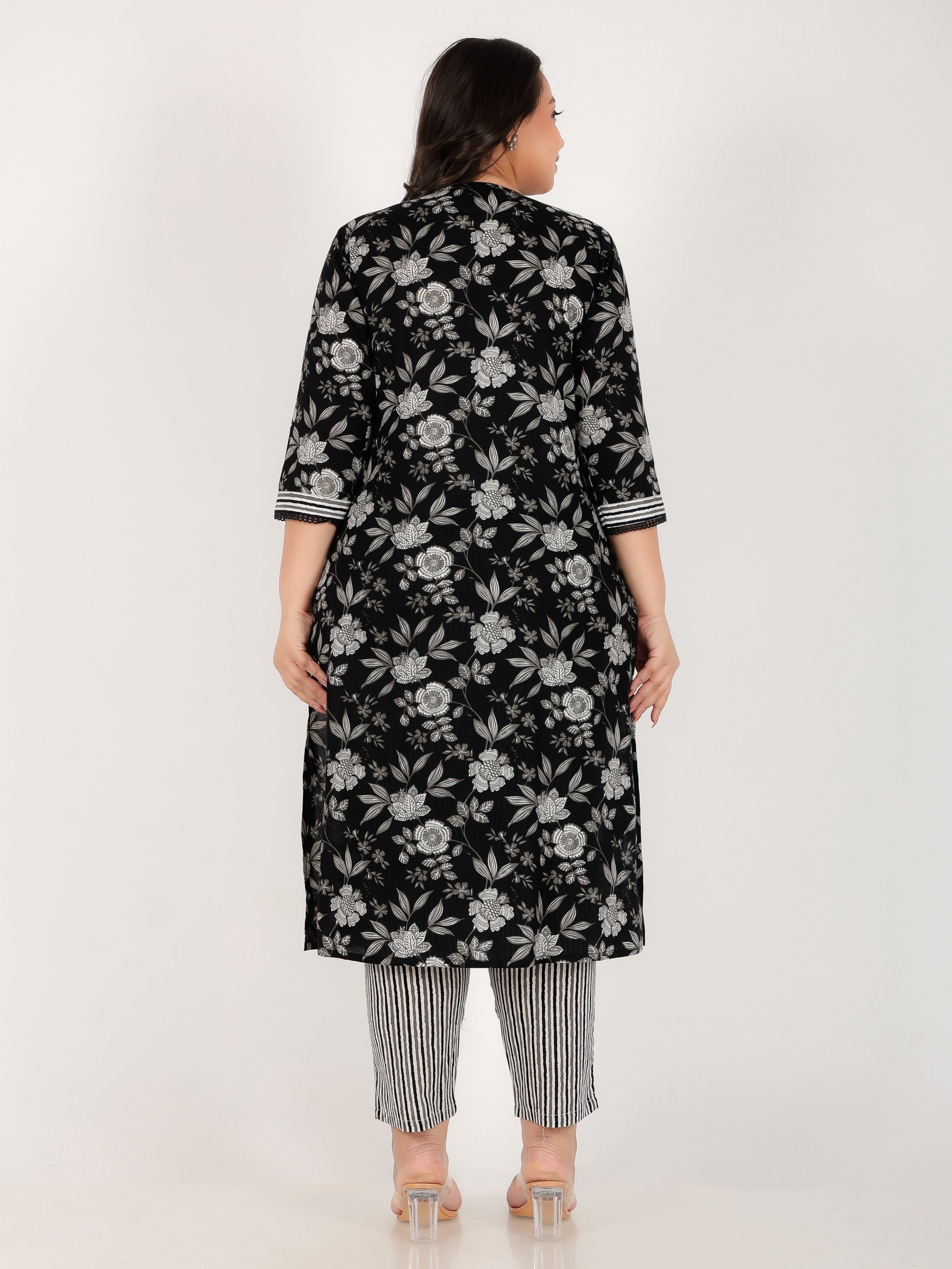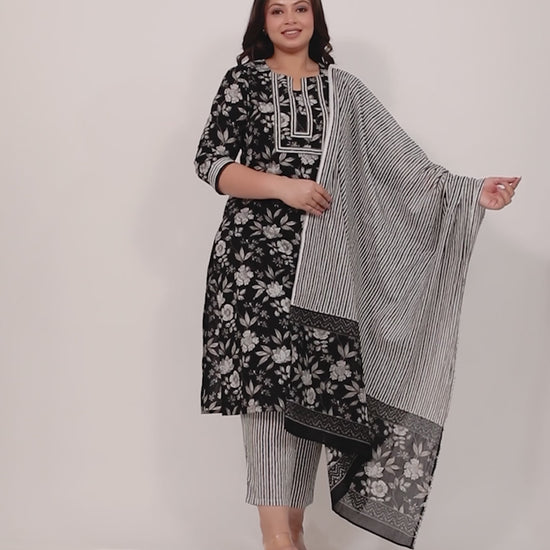 Elevate your ethnic wardrobe with this Soft Cotton kurta in a stunning Black hue. Featuring an elegant Straight fit and striking Floral accents, it’s perfect for festive celebrations or family gatherings. The Round neckline and 3/4 Sleeve provide all-day comfort. Team with gold-toned accessories for an effortlessly chic vibe. Maintain its charm by following proper care instructions.