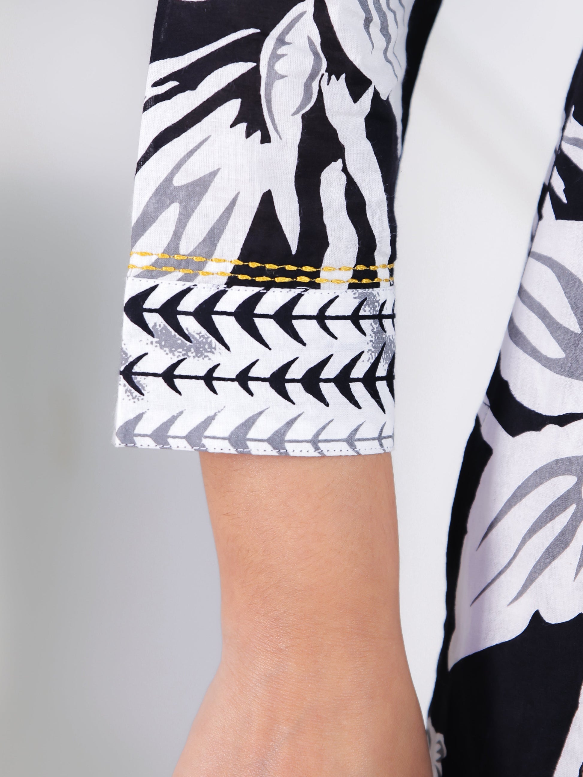 This Black High Low kurta in soft Soft Cotton is a timeless pick for festive and casual wear. Designed with a Collared neckline and 3/4 Sleeve sleeves, its graceful Calf Length cut flatters all body types. The delicate Floral detailing adds a touch of sophistication. Pair it with statement earrings and juttis for a polished look. Maintain its pristine look by following proper care instructions.