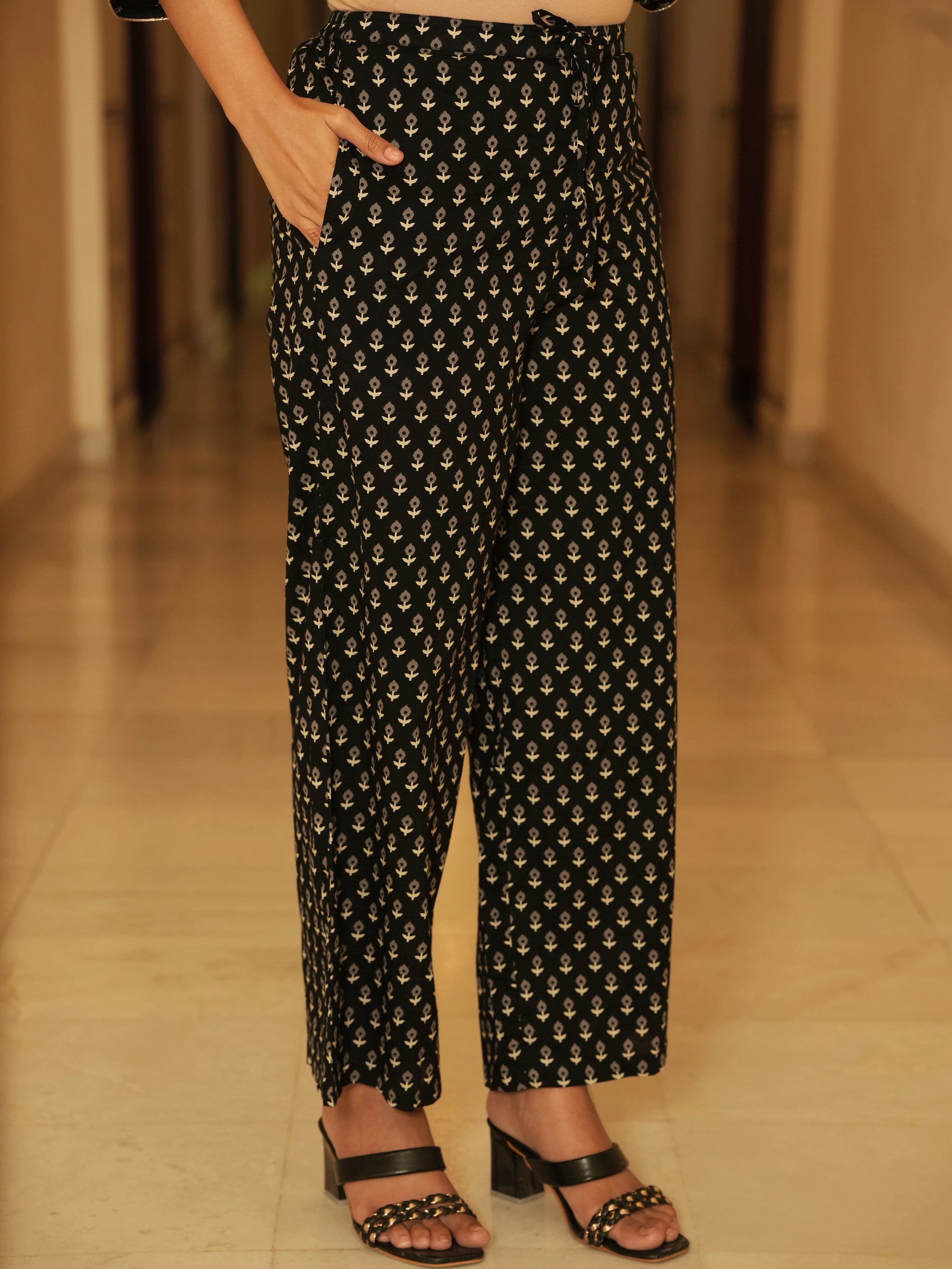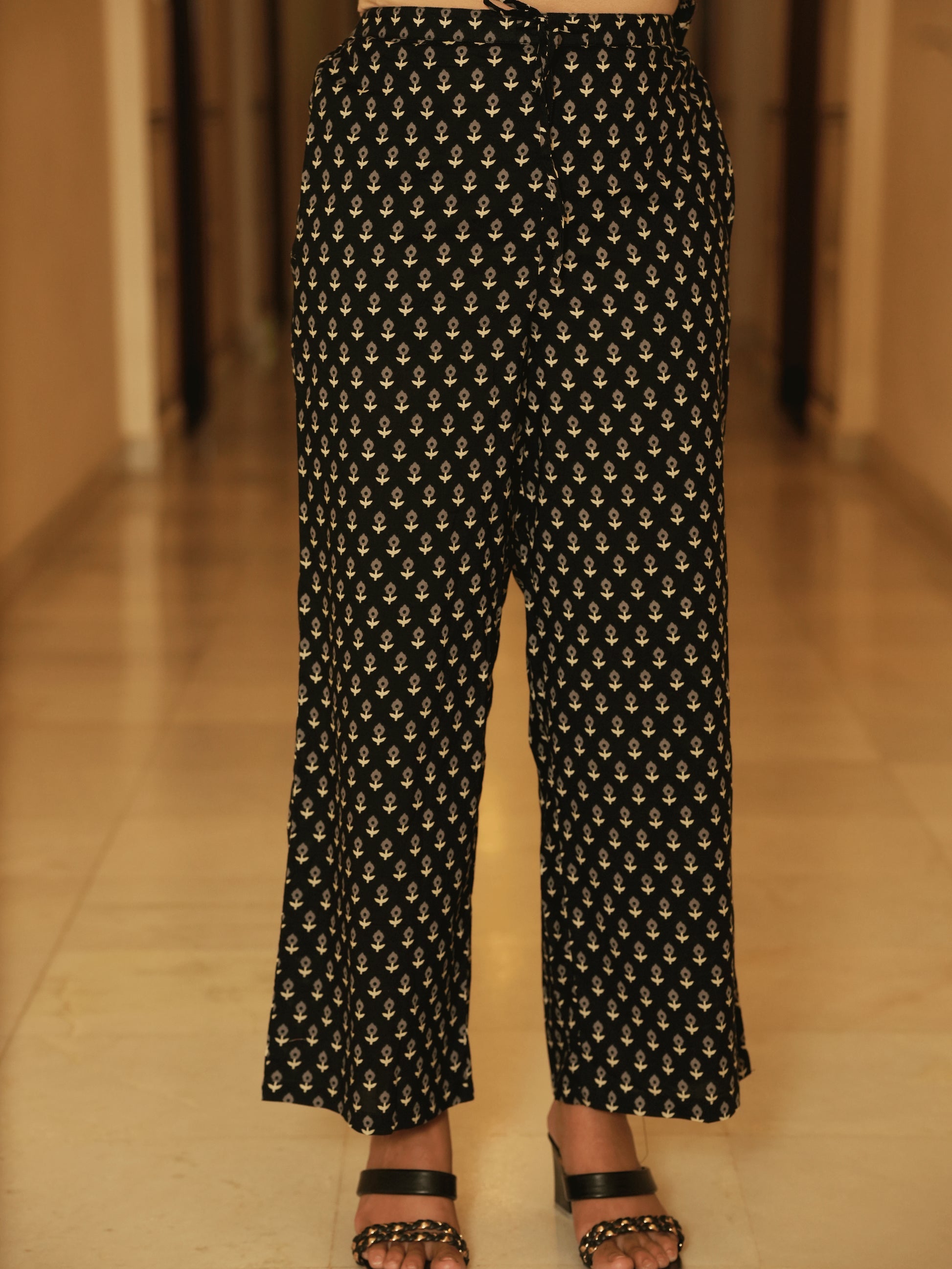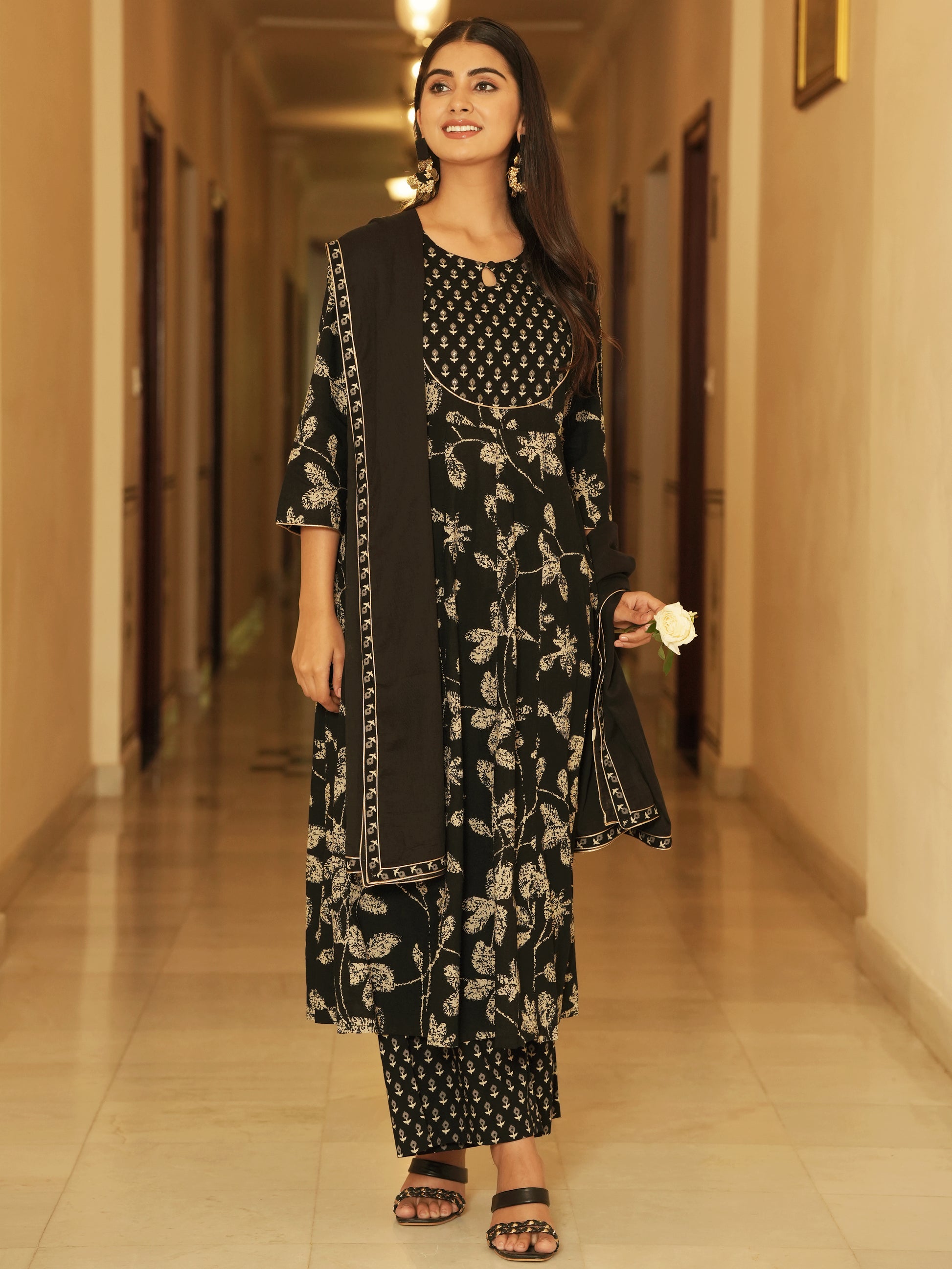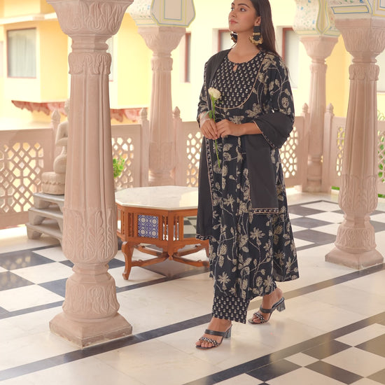 Embroidered Soft Cotton Floral Anarkali Black Kurta