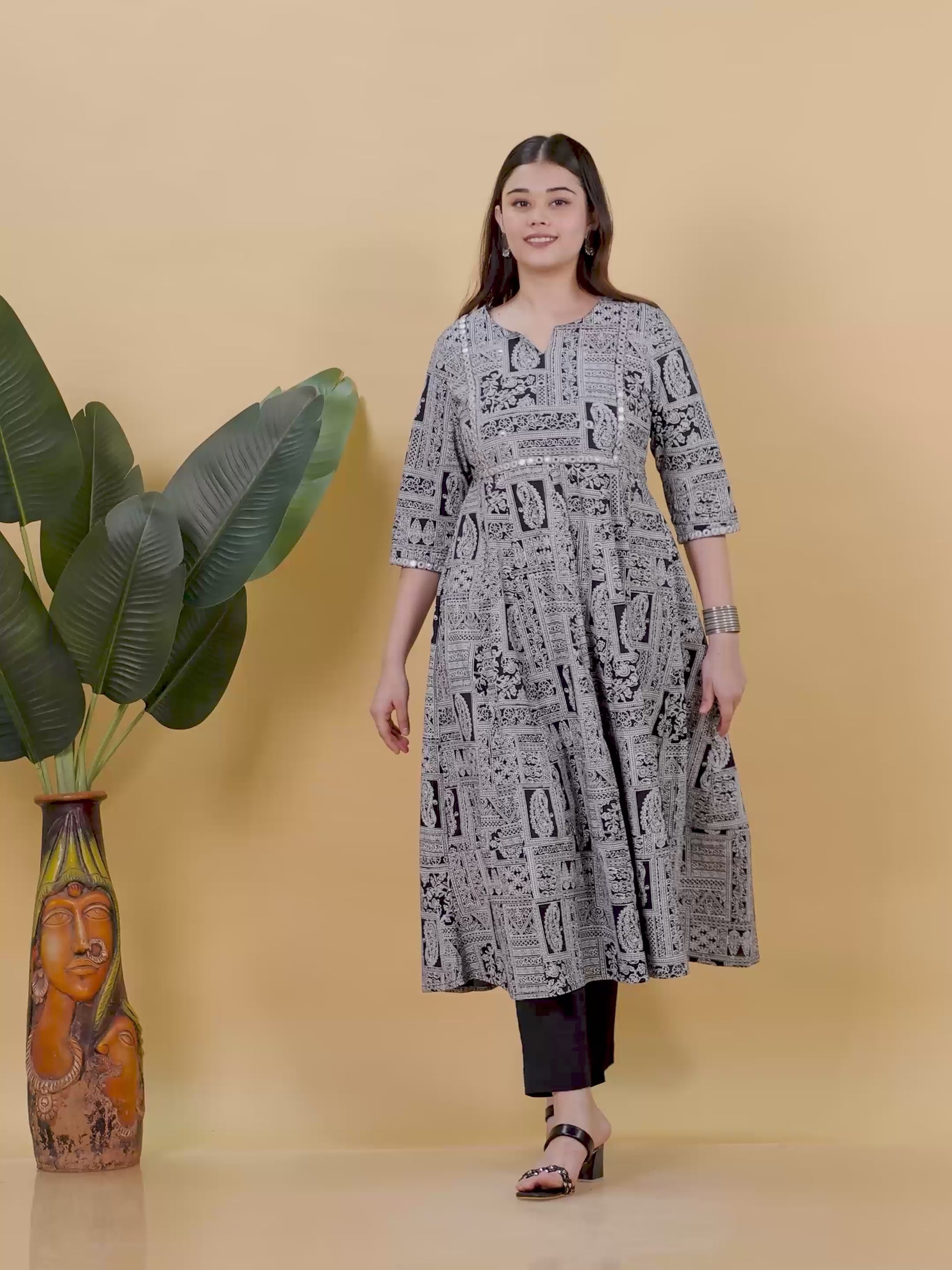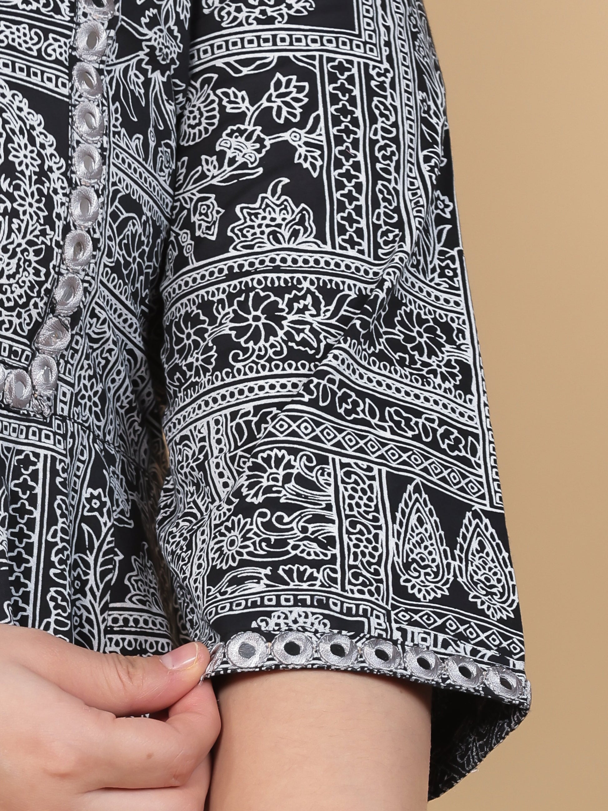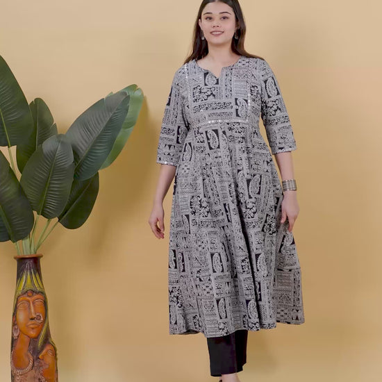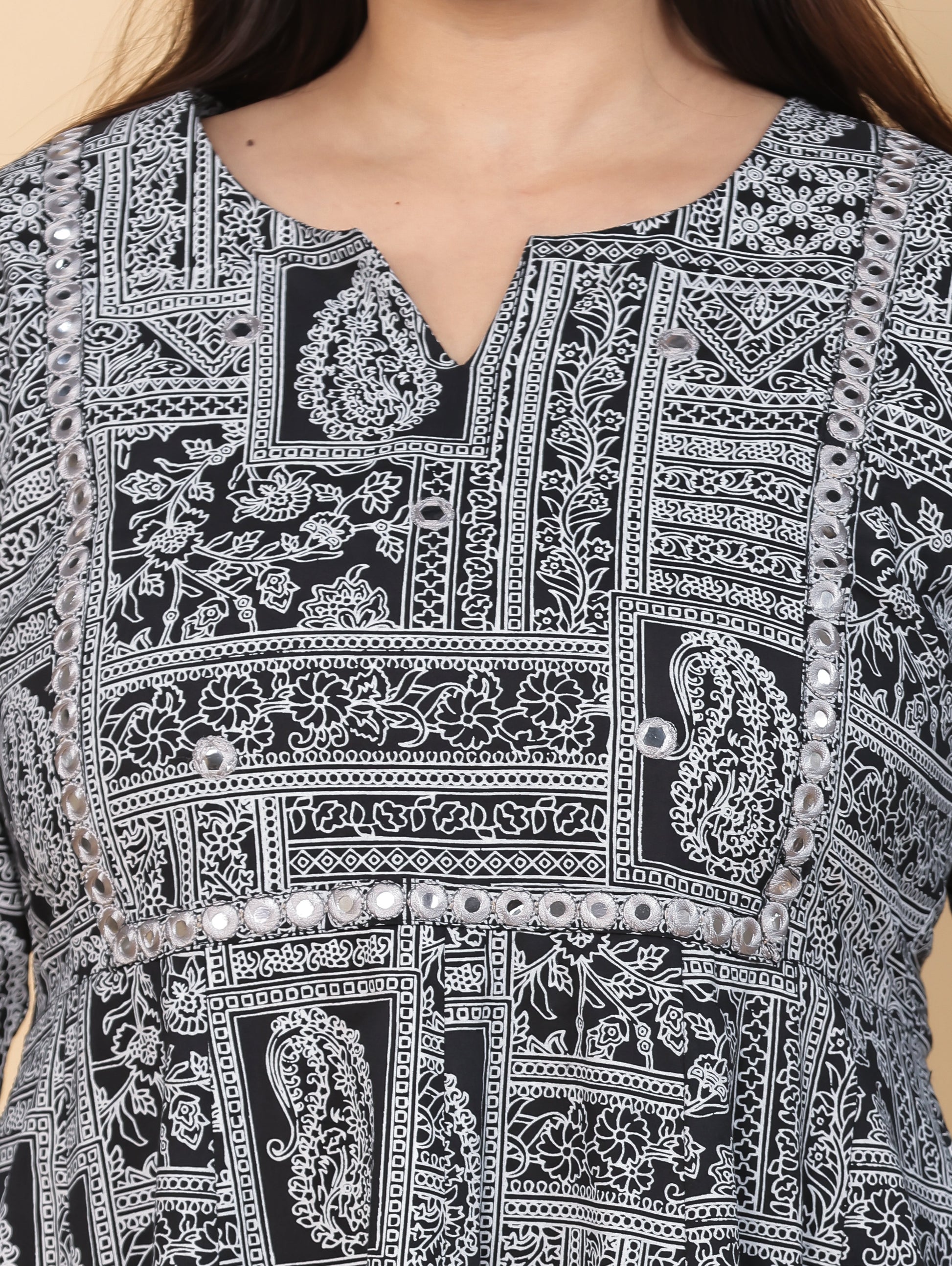 Embroidered Soft Cotton Patchwork Anarkali Black Kurta