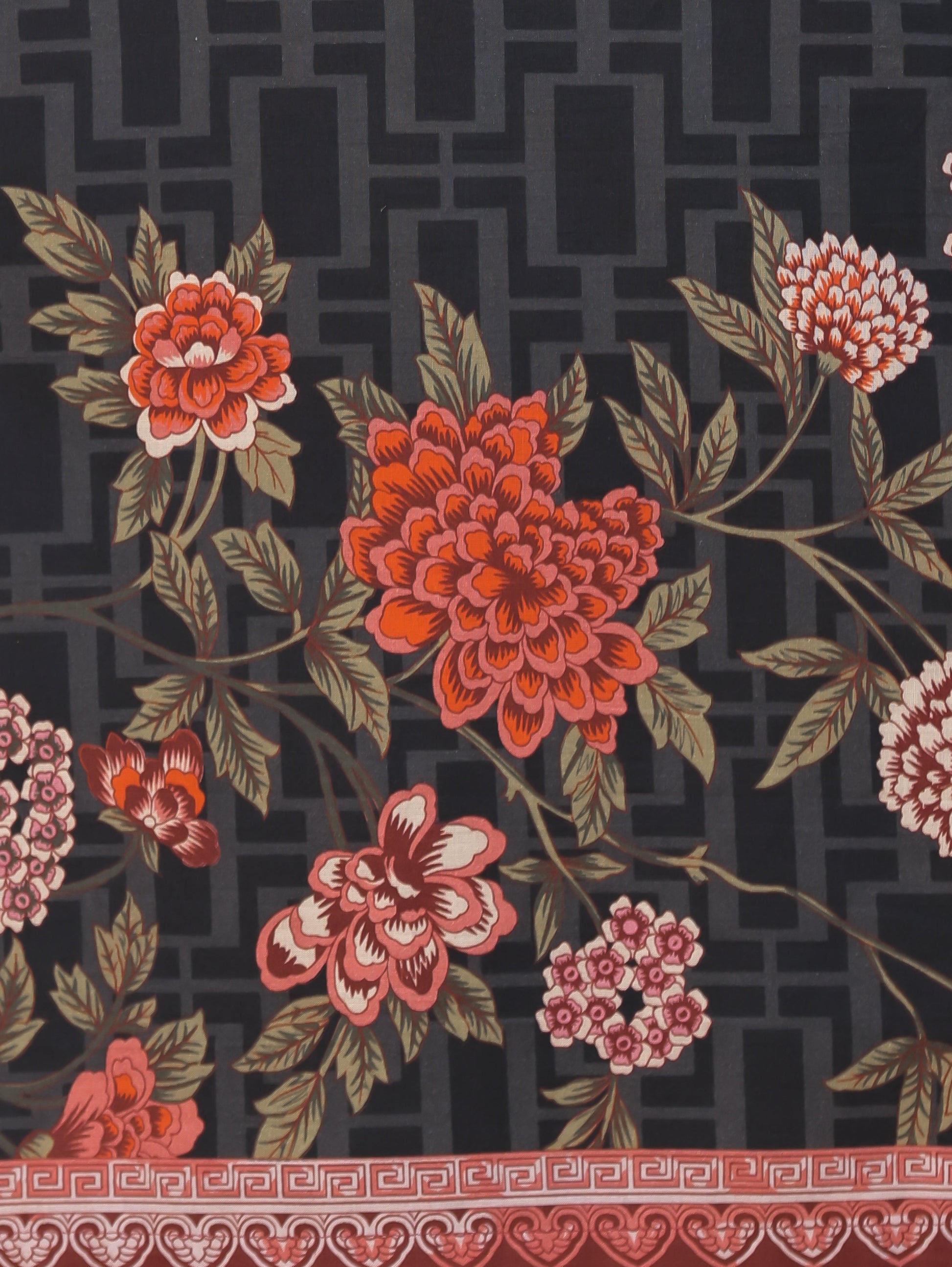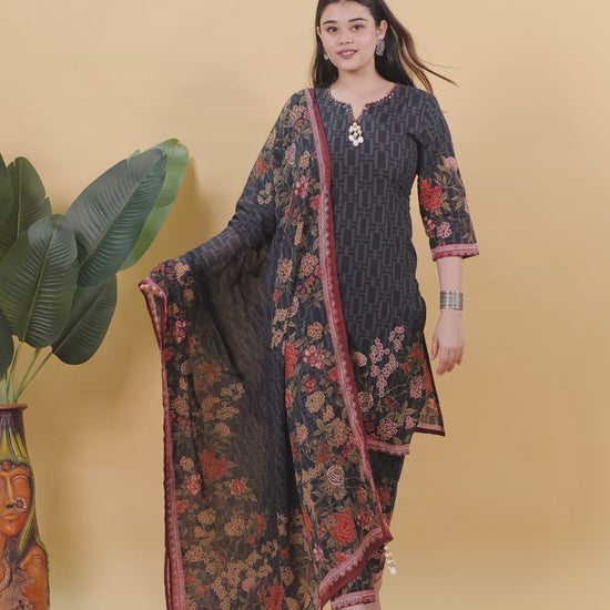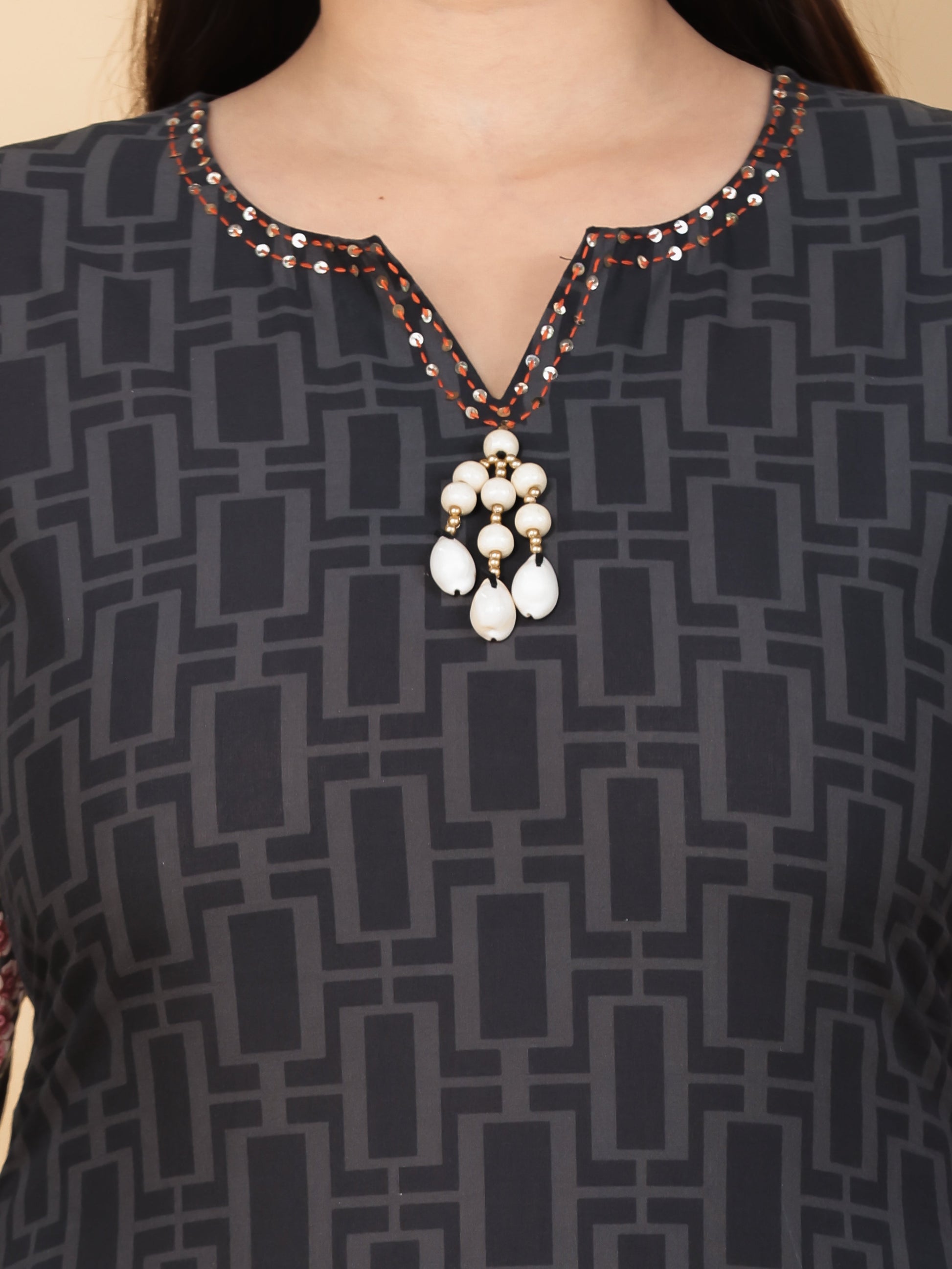 Embroidered Soft Cotton Placement Print Straight Black Kurta