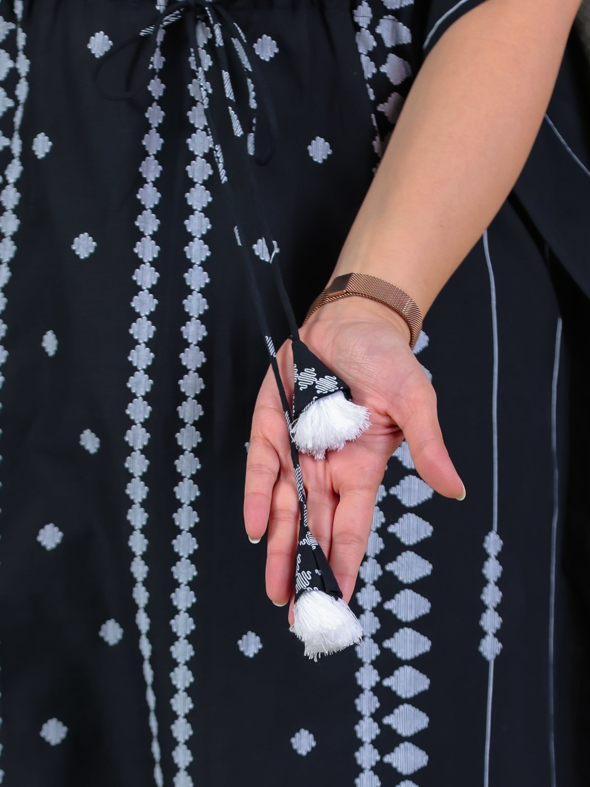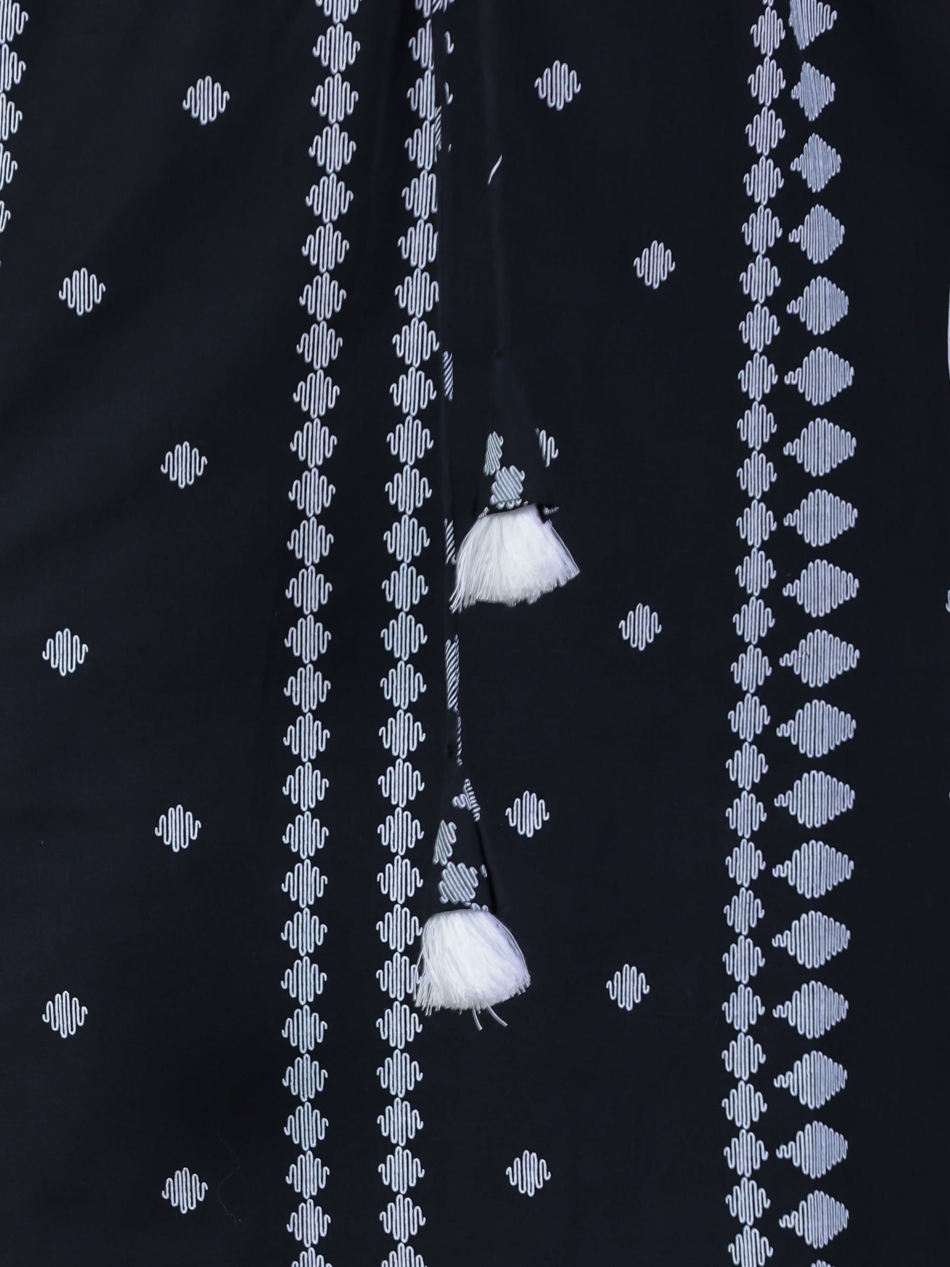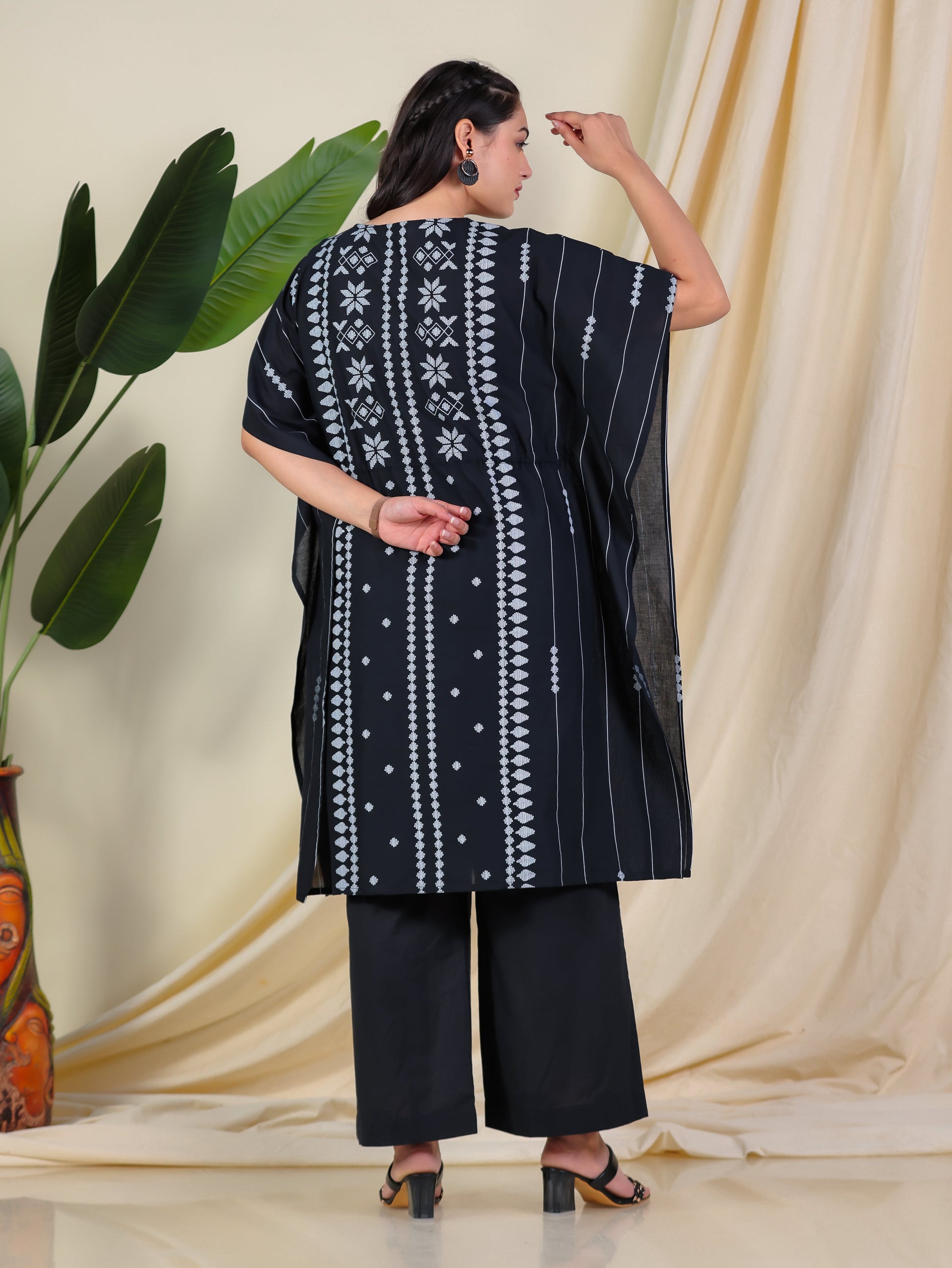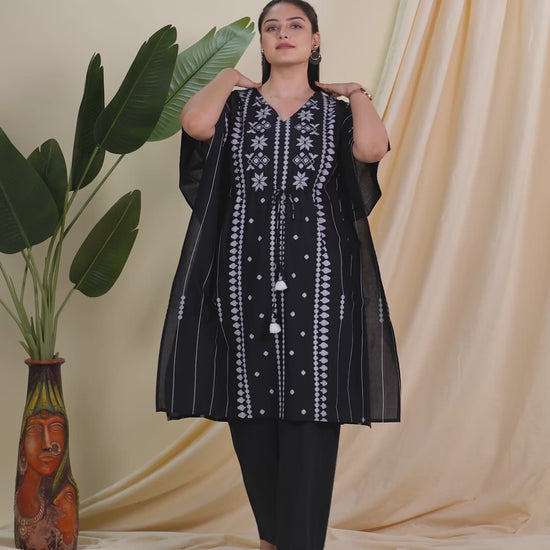 Soft Cotton Placement Print Kaftan Black Kurta (With Necklace)