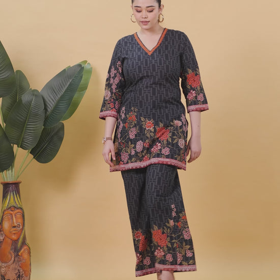 Embroidered Soft Cotton Placement Print Straight Black Kurta