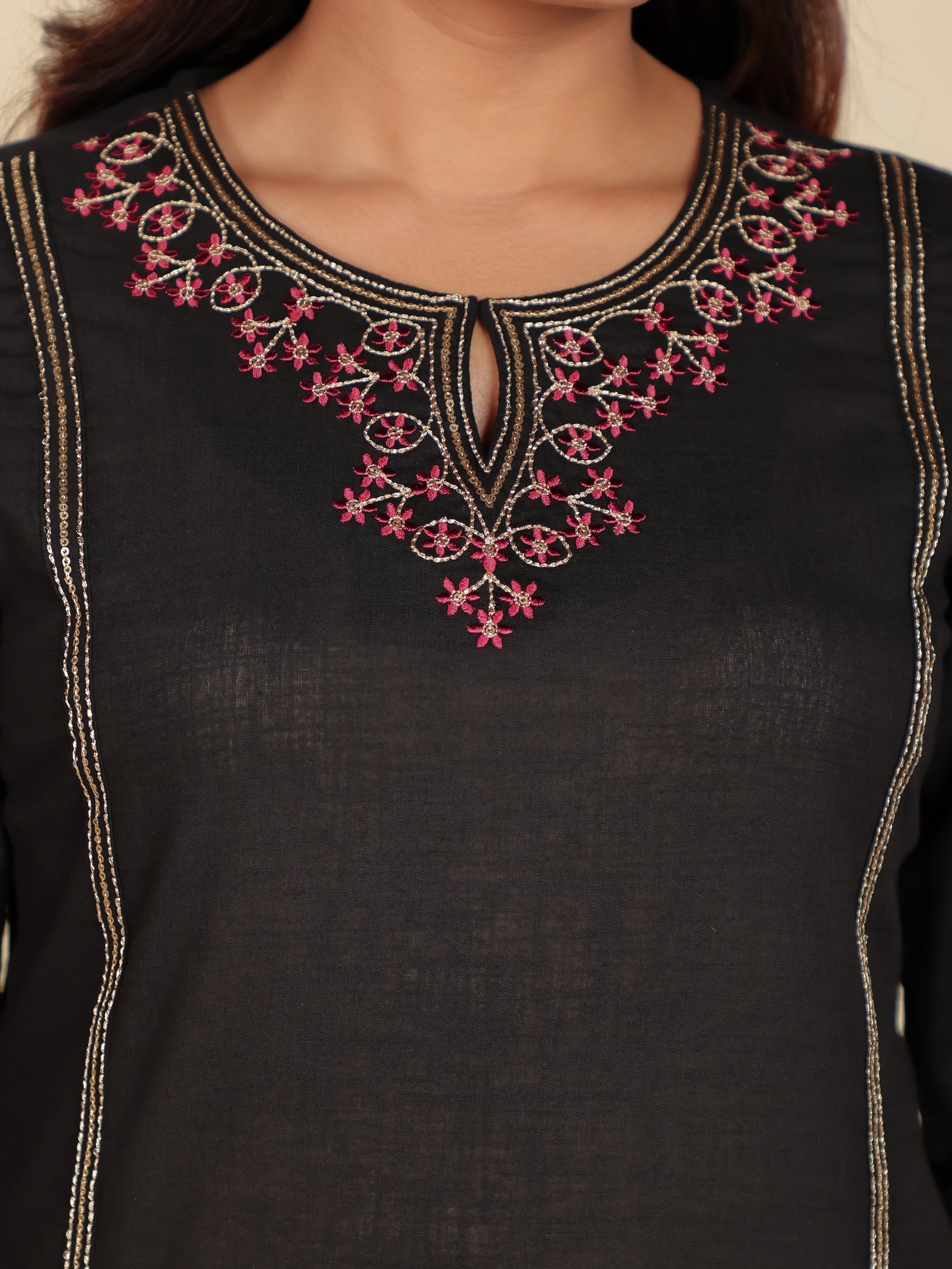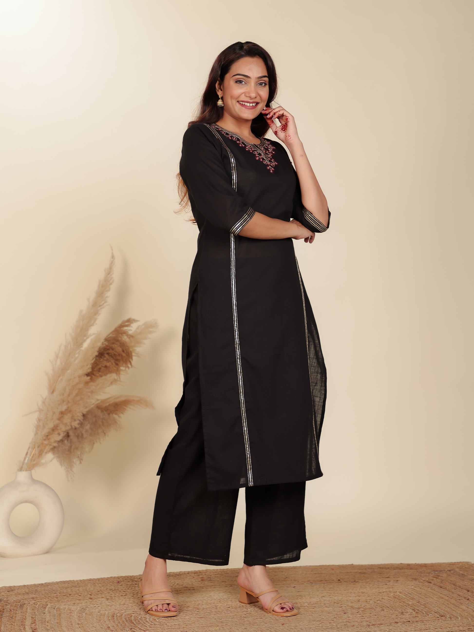 Crafted from breathable Linen Cotton, this Straight kurta in Black blends traditional design with everyday comfort. The Solid finish adds artisanal charm, while the Calf Length silhouette ensures effortless elegance. Style with palazzos or leggings for versatile looks, from workdays to weekend outings. Designed for easy care, this kurta stays beautiful with simple care instructions.