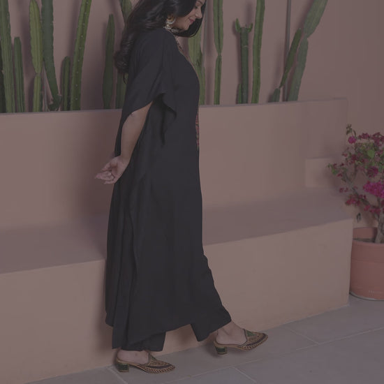 Embroidered Viscose Solid Kaftan Black Kurta
