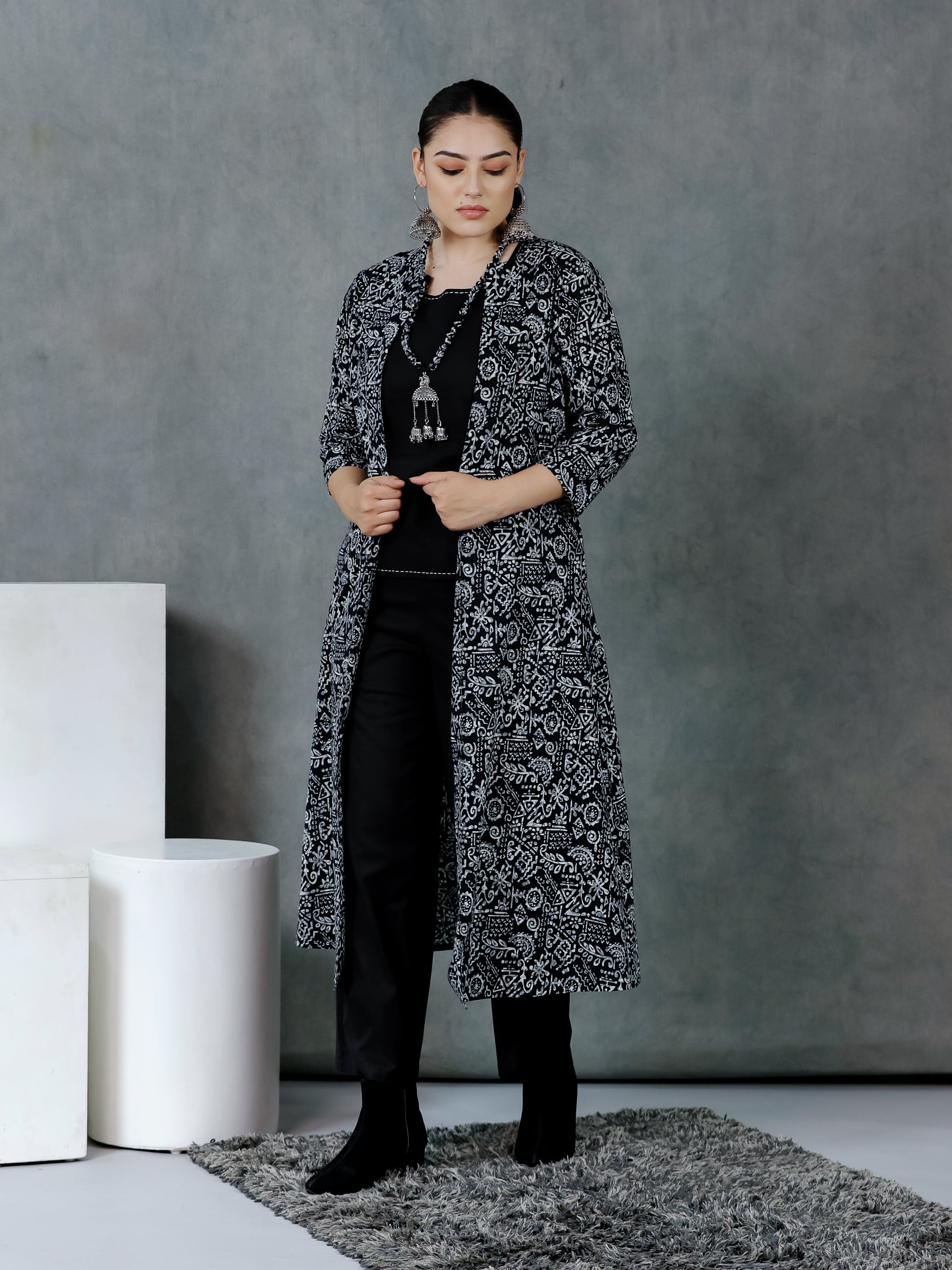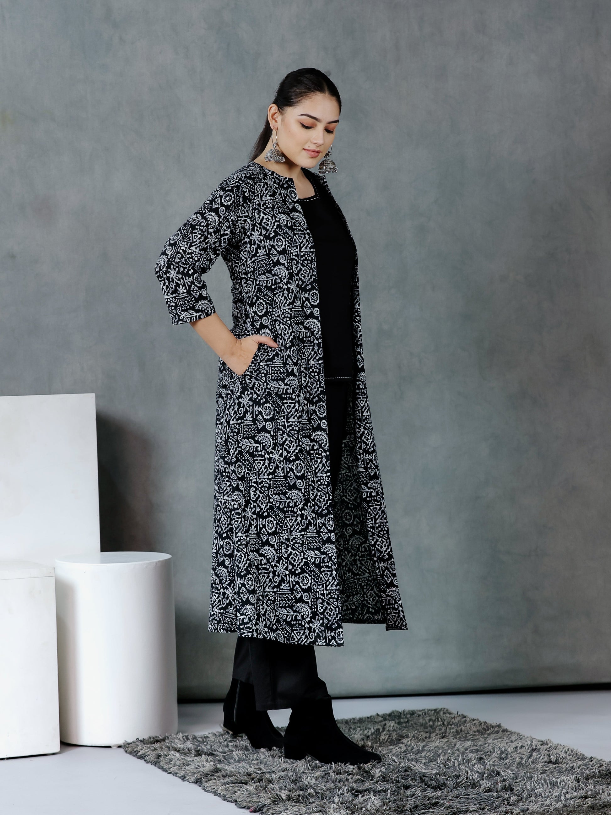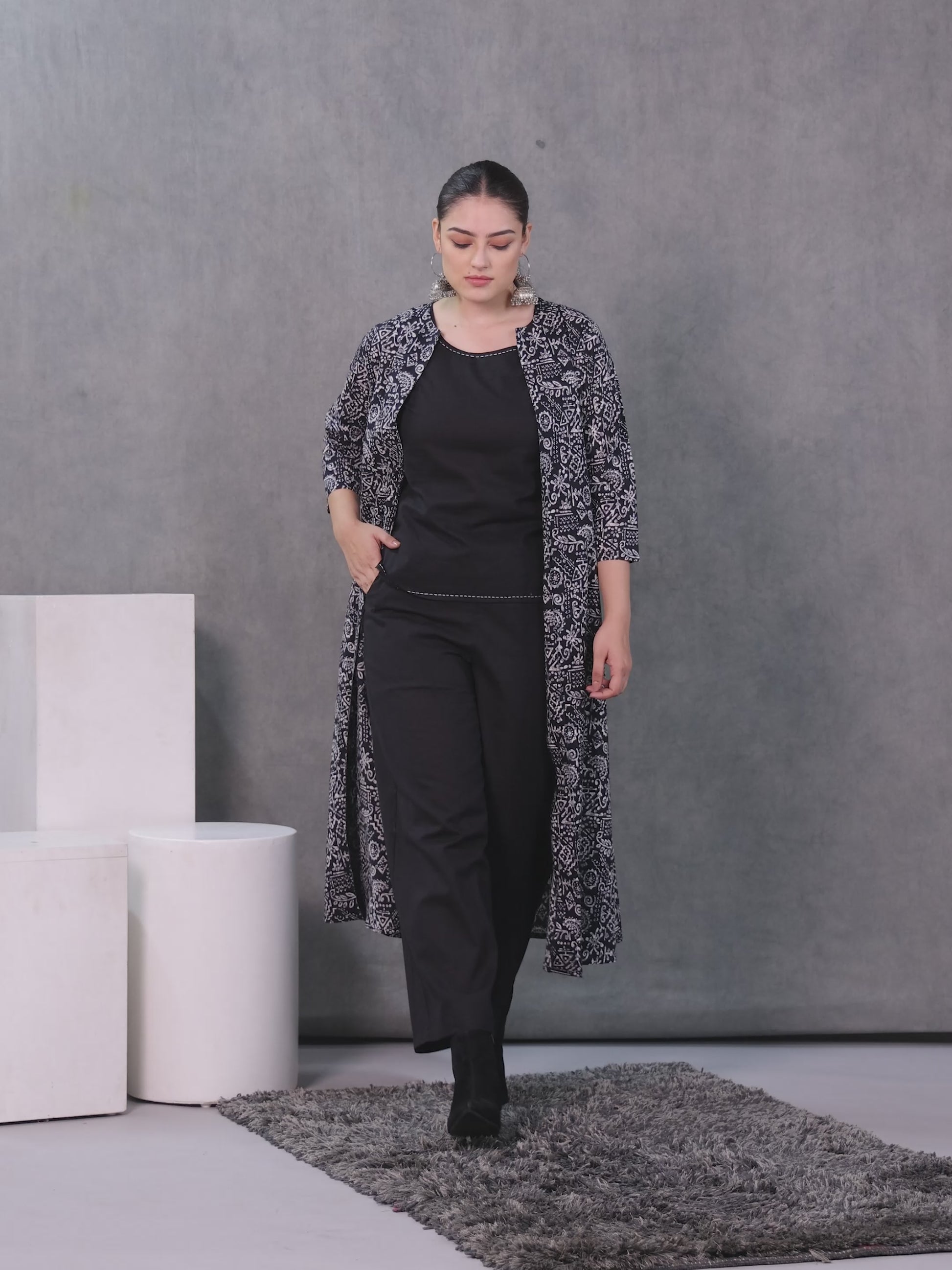 Step into effortless elegance with this soft cotton kurta in a graceful black tone, with hints of kaantha details. Meant for relaxed days and graceful moments, it pairs beautifully with your favorite everyday accessories. A soft yet stylish staple that moves with you throughout the day.