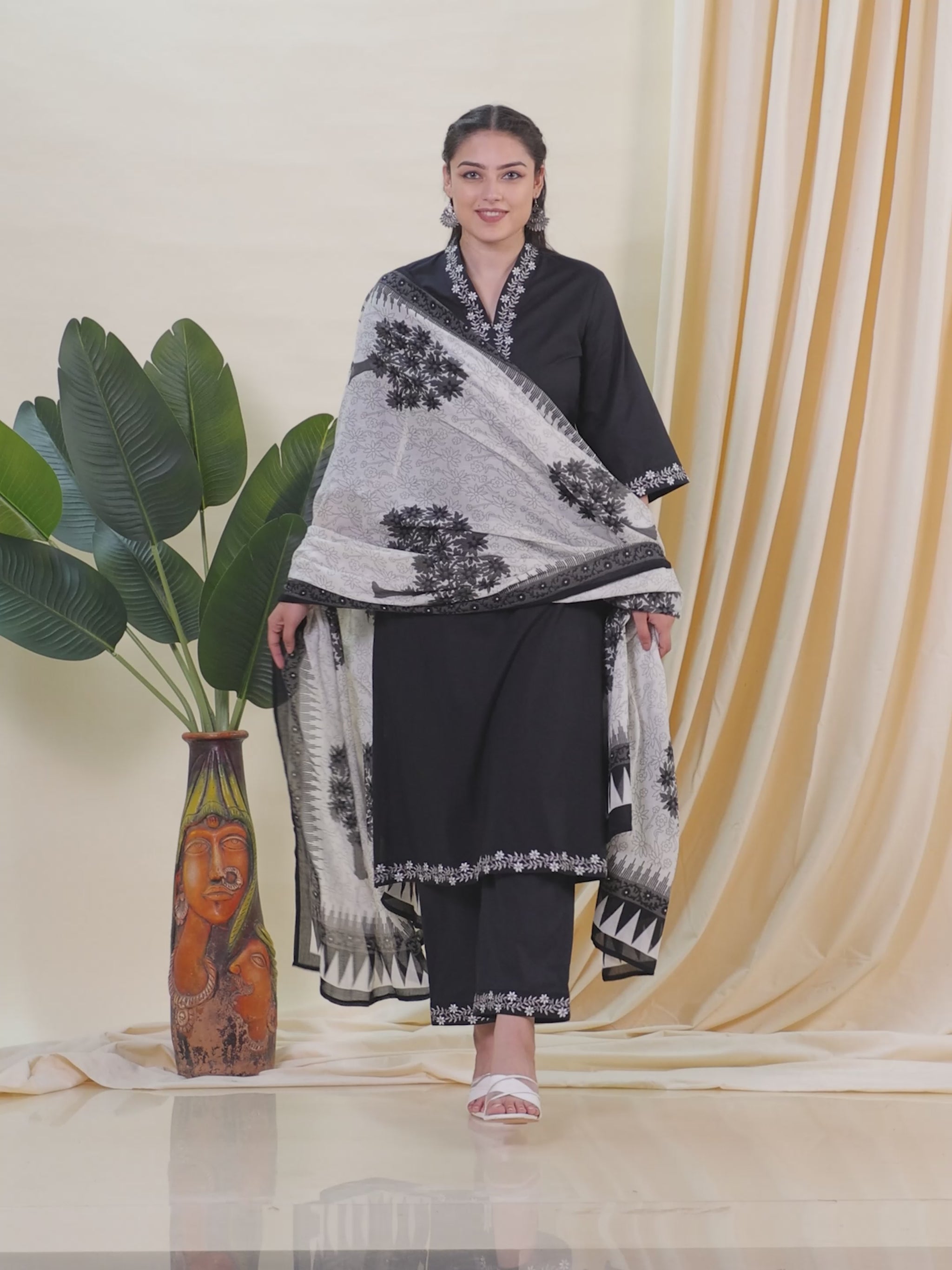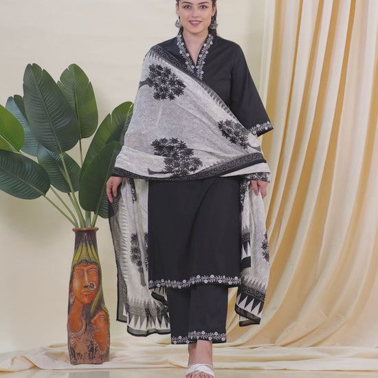 Embroidered Soft Cotton Solid Straight Black Kurta